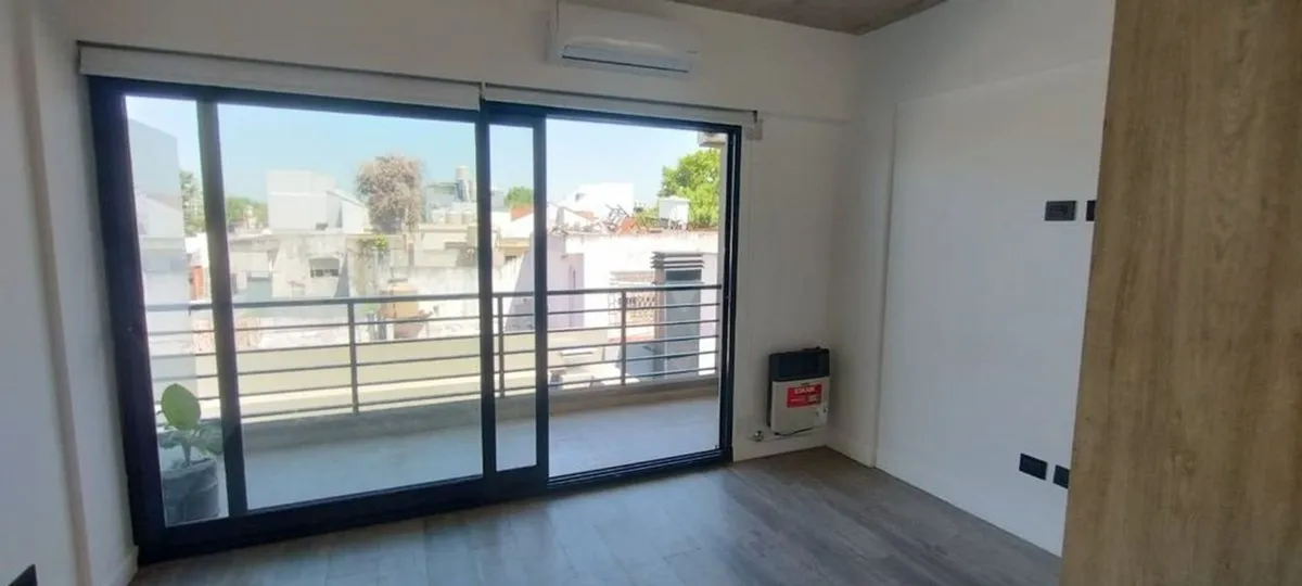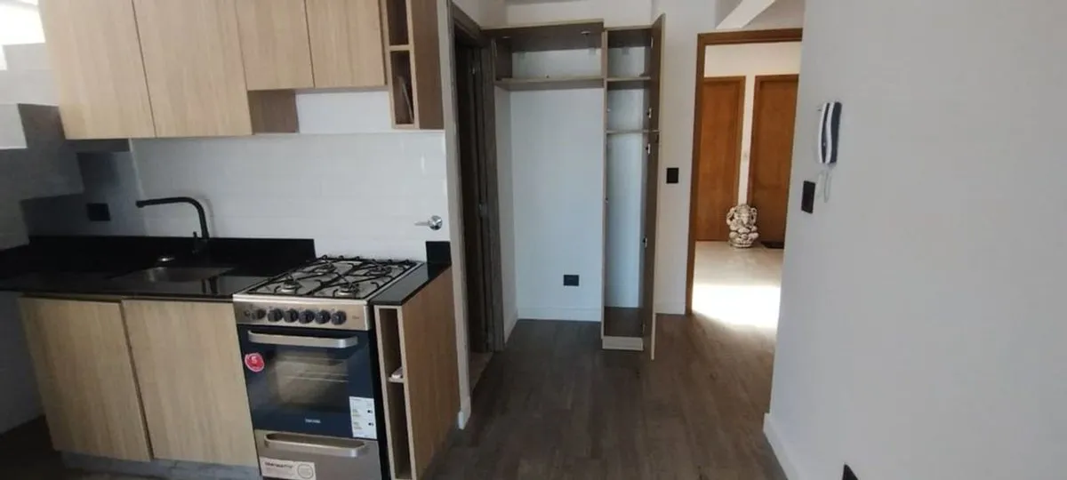 Kitnet de 39 m² em Villa Devoto, construída em 2024, no 2º andar, com orientação para os fundos (contrafrente). O ambiente conta com ar-condicionado e armário. A cozinha é integrada e vem com armários superiores e inferiores e forno a gás. Há varanda e terraço privativo de 36 m². A área total informada é de 78 m², incluindo espaços cobertos, semicobertos e descobertos.