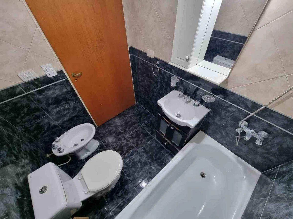 Apartamento de dois ambientes em Villa Devoto, no 1º andar, com elevador e escada, virado para a rua. Tem hall de entrada, banheiro principal, cozinha integrada com barra de café da manhã e sala de jantar conjugada com piso em porcelanato; ar-condicionado frio e quente e varanda de frente com orientação para o nordeste. O dormitório tem armário embutido e também dá para a frente; cozinha a gás natural.