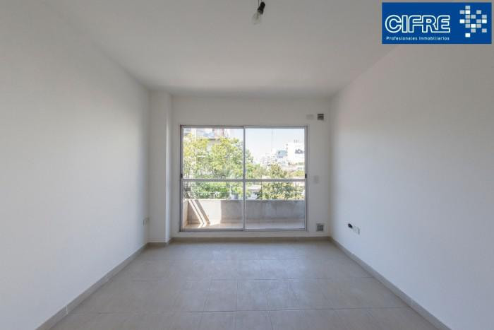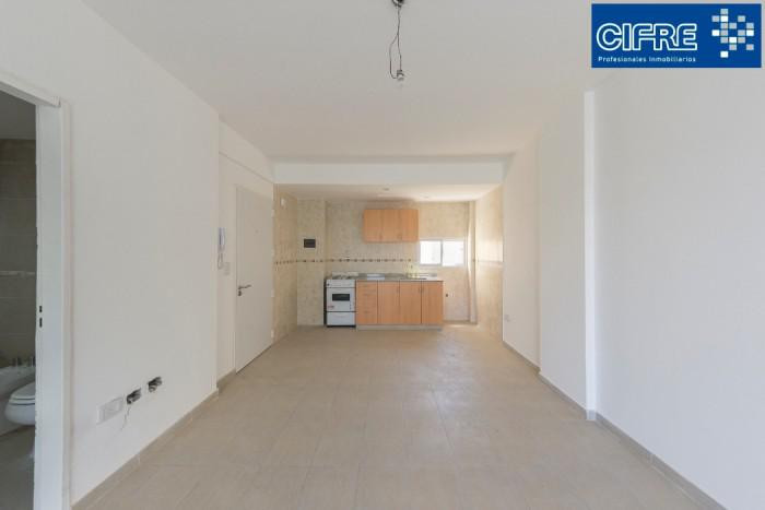 Apartamento tipo kitnet com 9 x 3 m, com saída para a varanda de frente para a rua. Cozinha integrada com móveis de alto e baixo. Há espaço para máquina de lavar (lavarropas). Contrato de 24 meses, com reajustes a cada 4 meses indexados ao IPC. Depósito de 1 mês em dólares, arredondado.