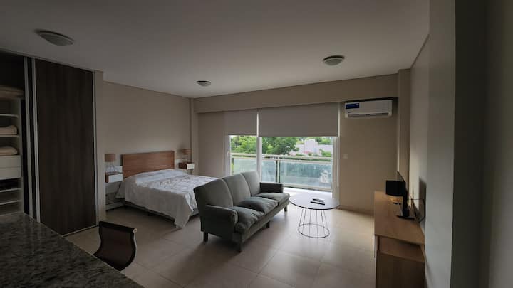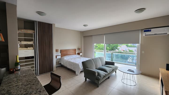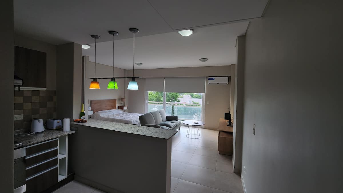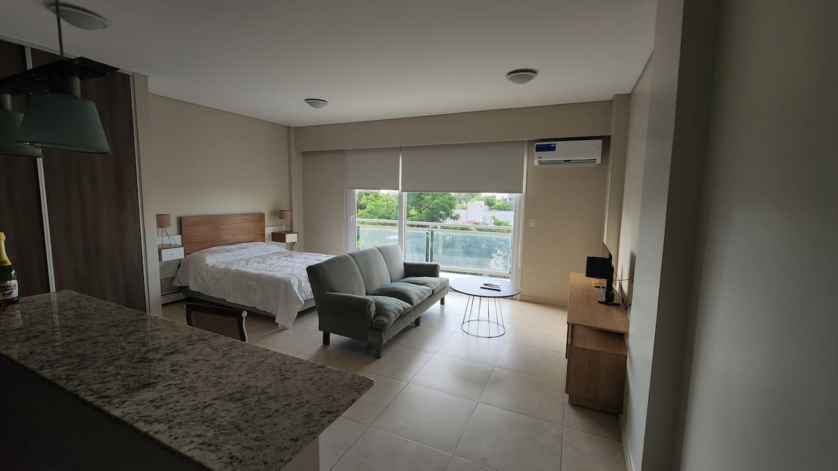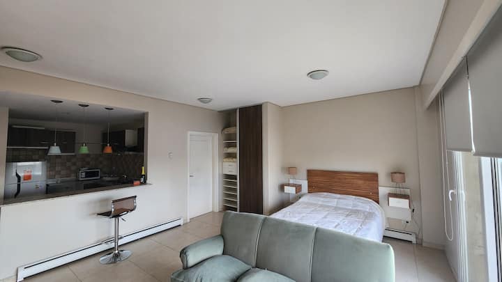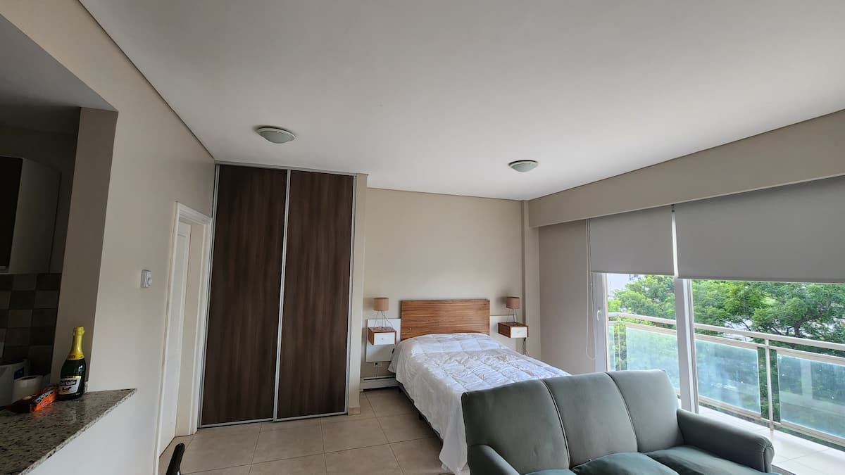Apartamento de 50 m² em Villa Devoto, com fechadura eletrônica. Inclui Wi-Fi, TV com Amazon Stick, ar-condicionado para frio e calor e aquecimento por aquecedores radiantes de rodapé. O condomínio oferece academia, lavanderia e salão comunitário (SUM). Está incluído enxoval de cama e itens de cozinha, incluindo jogos de pratos, cafeteira e roupa de cama.