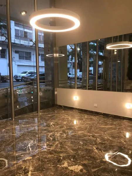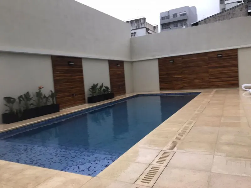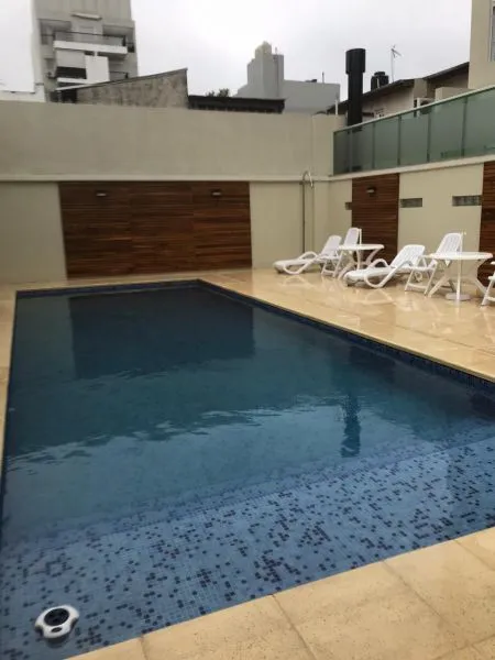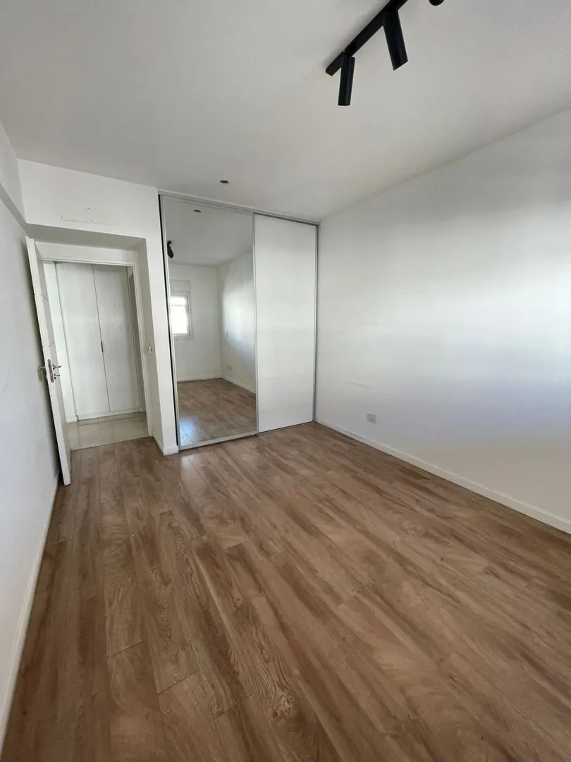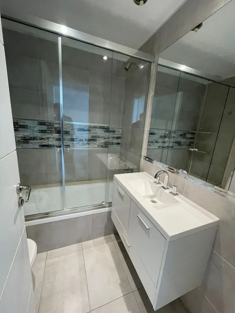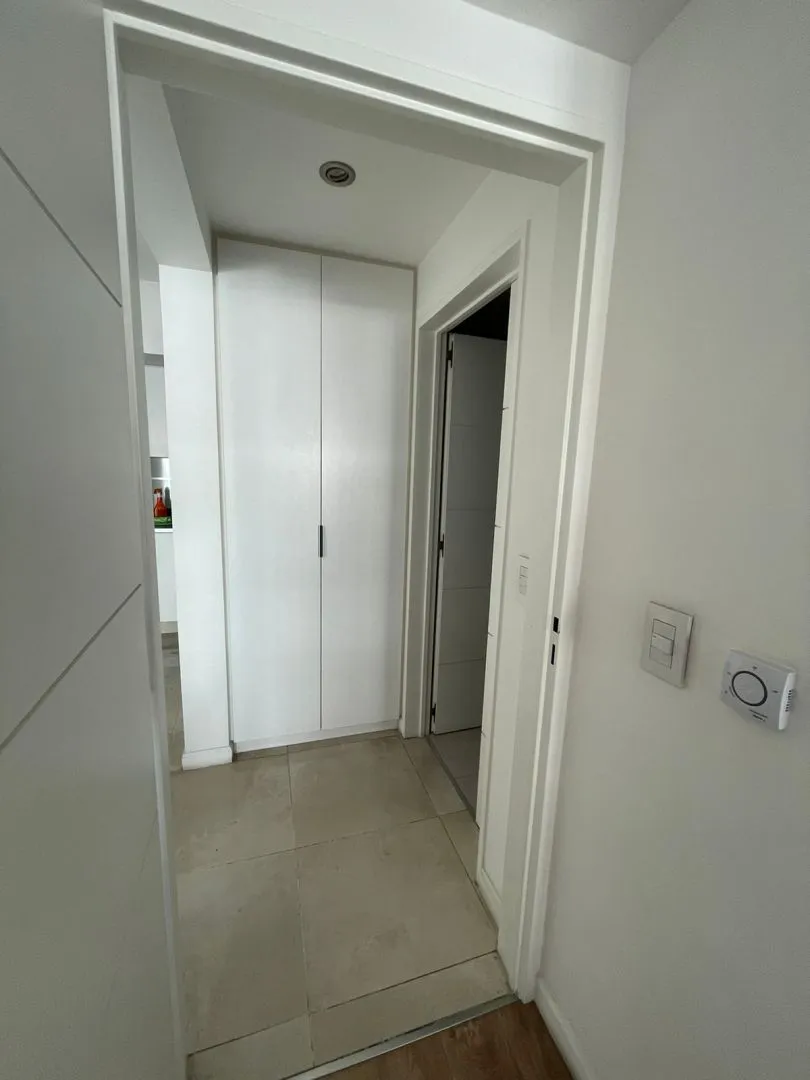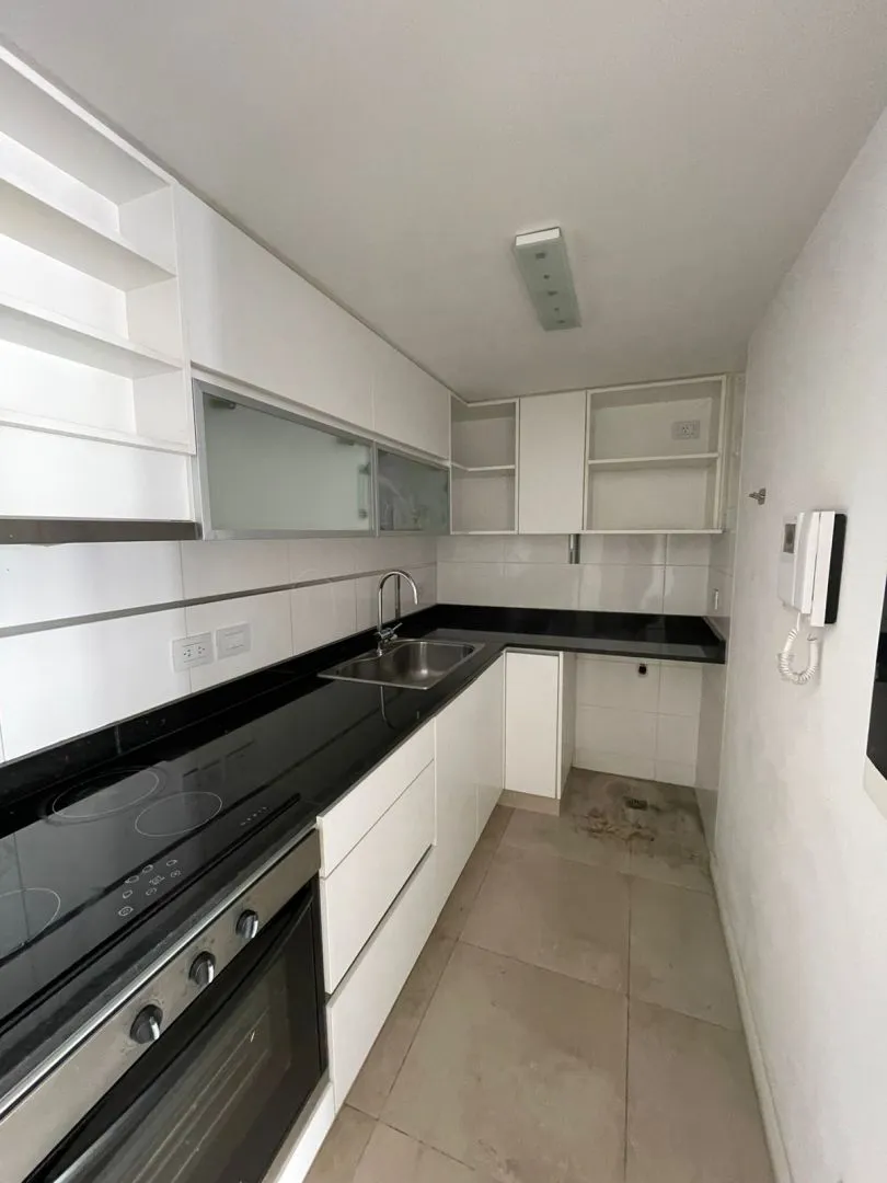 Apartamento de dois ambientes em Villa Devoto, com 1 quarto, de frente para a rua, com varanda-terraço corrido coberto. Cozinha totalmente equipada (elétrica), sala de estar e jantar, quarto com armário embutido com interiores, e banheiro completo. Inclui vaga de garagem coberta (fixa). O prédio tem SUM com área de churrasco, solarium e piscina.