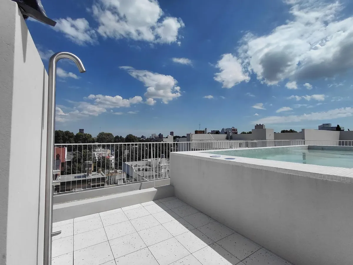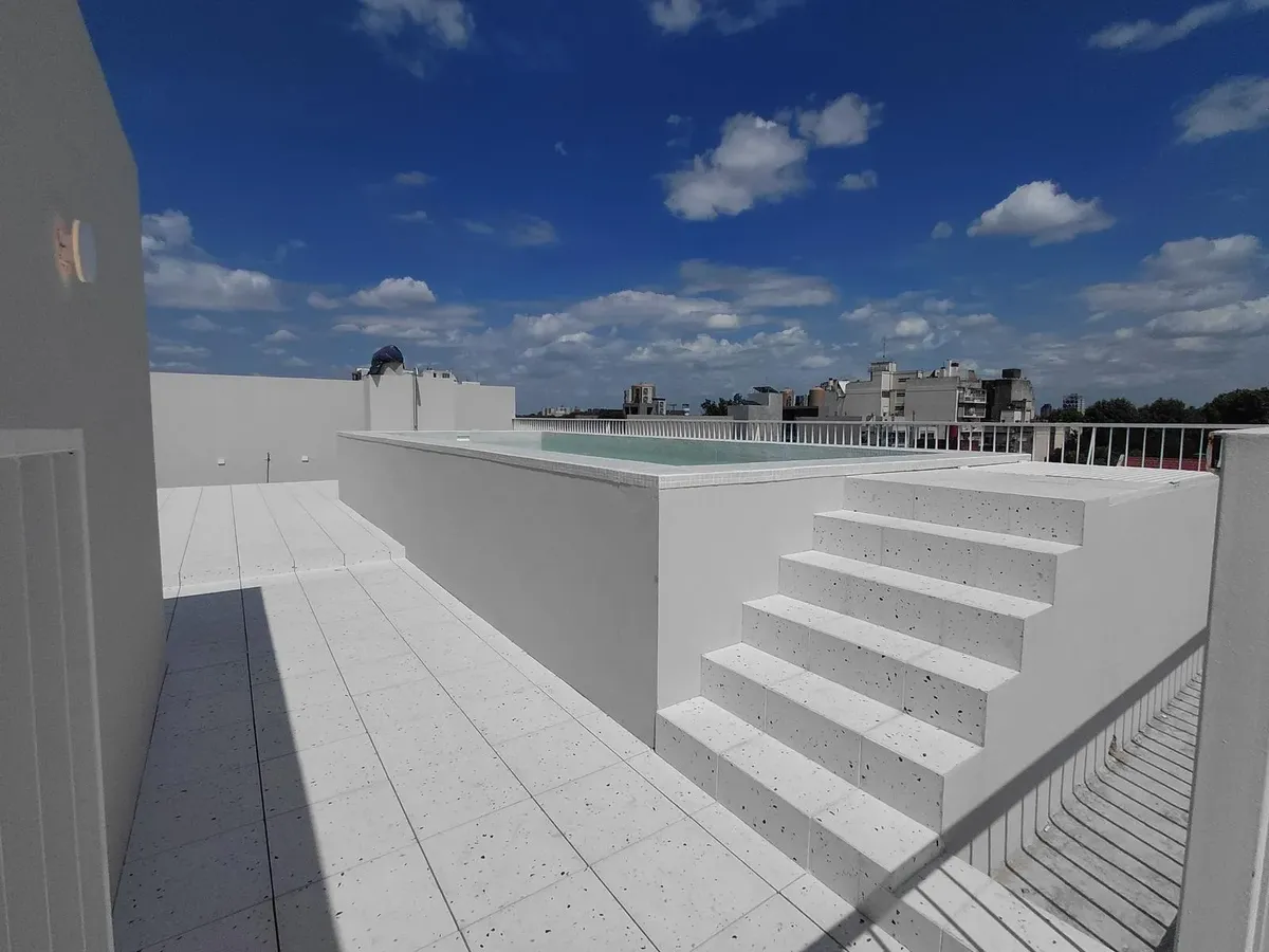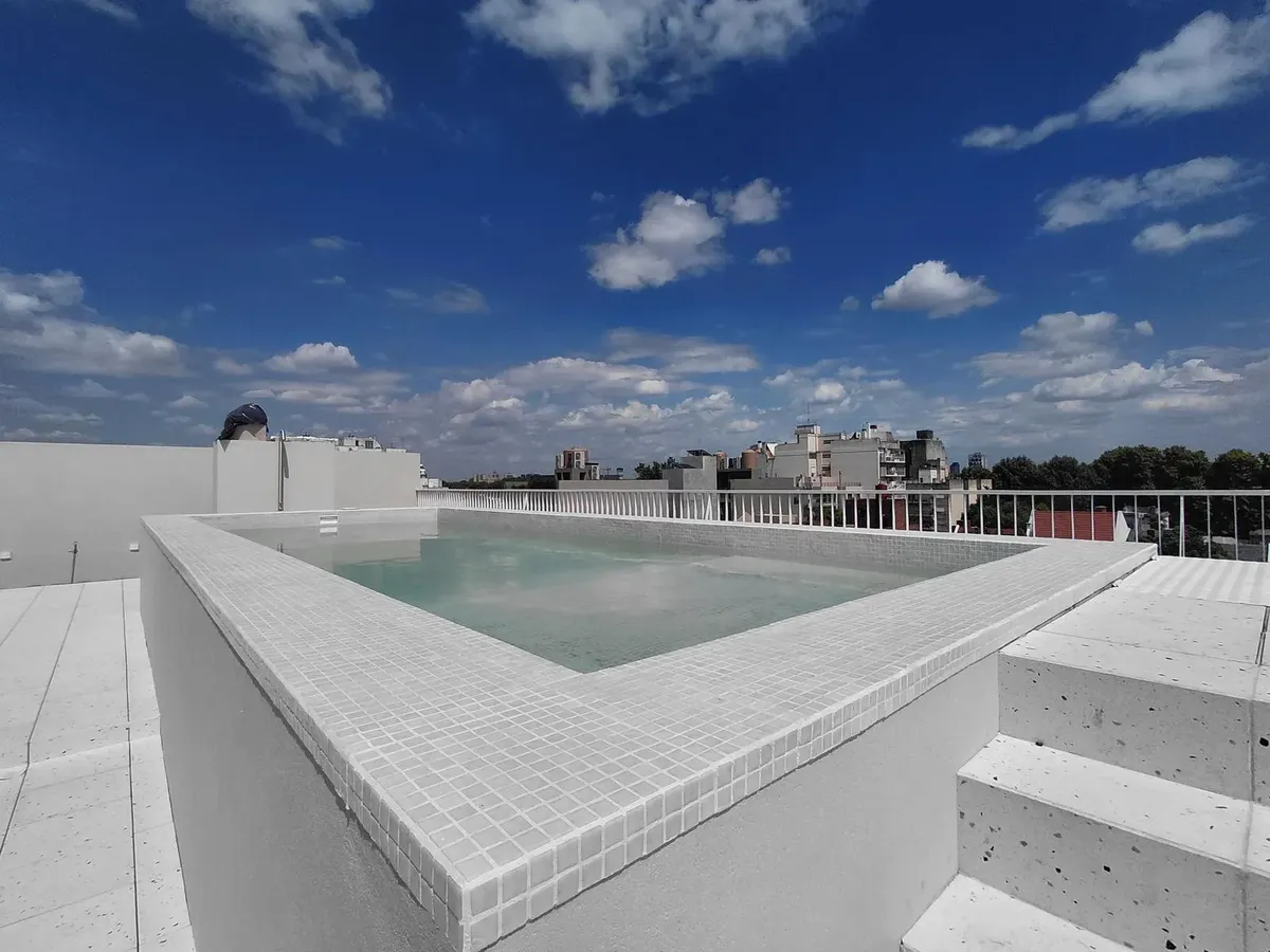 Apartamento de 2 ambientes com 45 m² cobertos, unidade no 1G, em Villa Devoto, novo (nunca habitado). O edifício oferece segurança 24 horas, terraço verde, piscina, solário, salão de festas (SUM) e área de churrasco (parrillas). Portaria com visor inteligente e possibilidade de visualização e controle pelo celular, além de grupo gerador. Há preparação para instalação de ar-condicionado split ou multisplit.