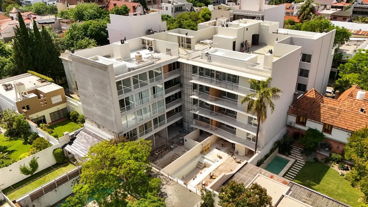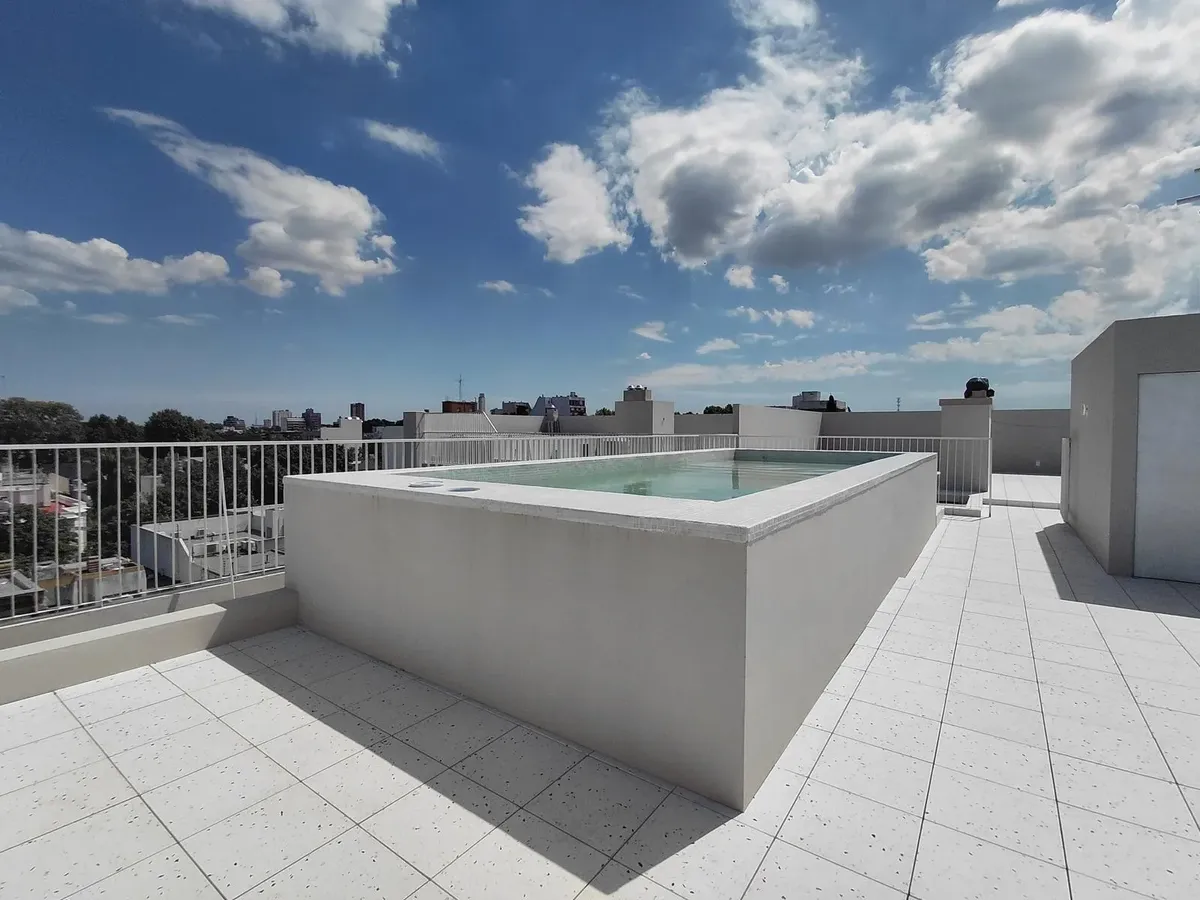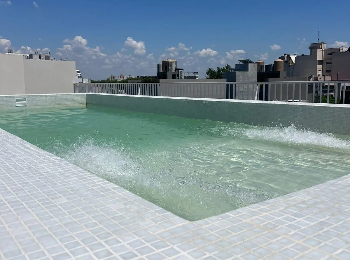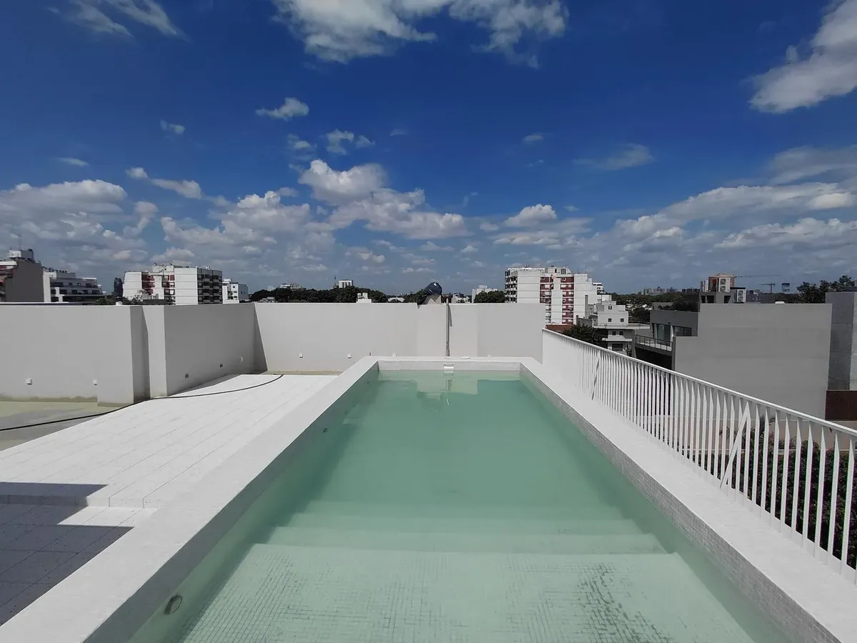 Apartamento de 2 ambientes com 45 m² cobertos, unidade no 1G, em Villa Devoto, novo (nunca habitado). O edifício oferece segurança 24 horas, terraço verde, piscina, solário, salão de festas (SUM) e área de churrasco (parrillas). Portaria com visor inteligente e possibilidade de visualização e controle pelo celular, além de grupo gerador. Há preparação para instalação de ar-condicionado split ou multisplit.
