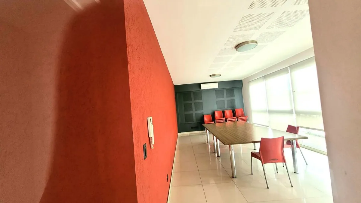 Apartamento de 2 ambientes com 52 m², 44 m² cobertos, no 7º andar, de frente para a rua e com varanda. Conta com sala e jantar integrados, 1 dormitório com armário, cozinha, banheiro completo e varanda com área de churrasco. Possui aquecimento por piso radiante com caldeira individual, janelas com vidro duplo e porteiro/visor. O edifício oferece sum equipado, piscina, solarium, estacionamento para visitas e dois elevadores. Não são permitidos animais. Locação com prazo de 2 anos, reajuste trimes