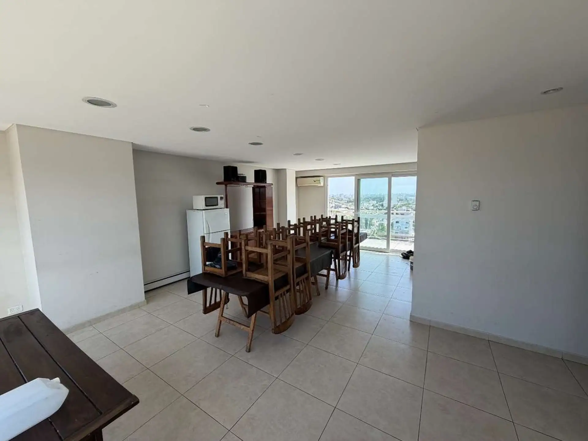 Apartamento de 2 ambientes com varanda ampla de frente para a rua, em Villa Devoto. Tem 1 dormitório com armário, cozinha integrada e sala de estar e jantar. Possui 1 banheiro completo em suíte e 1 lavabo, além de varanda corrida. O prédio inclui SUM, área de churrasco na cobertura, piscina com hidromassagem, academia, área de cinema, recepção, segurança e terraço. Aceita animais de estimação.