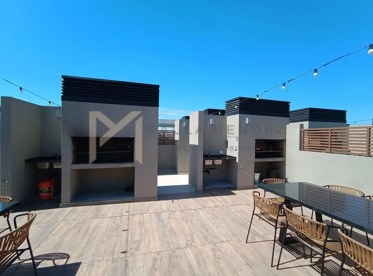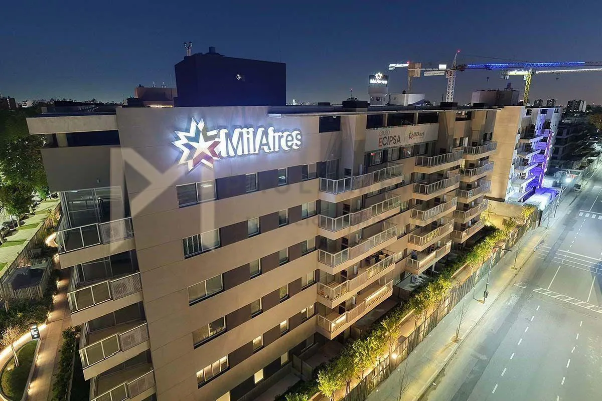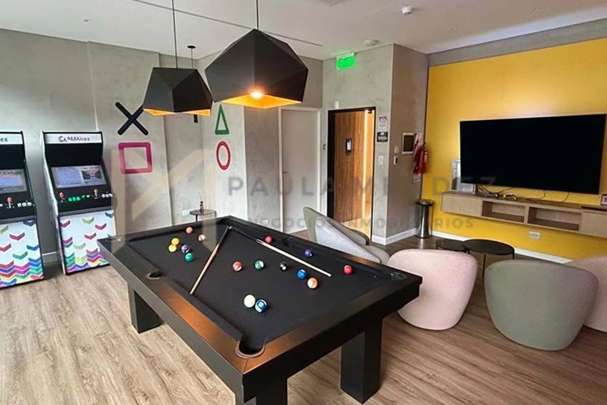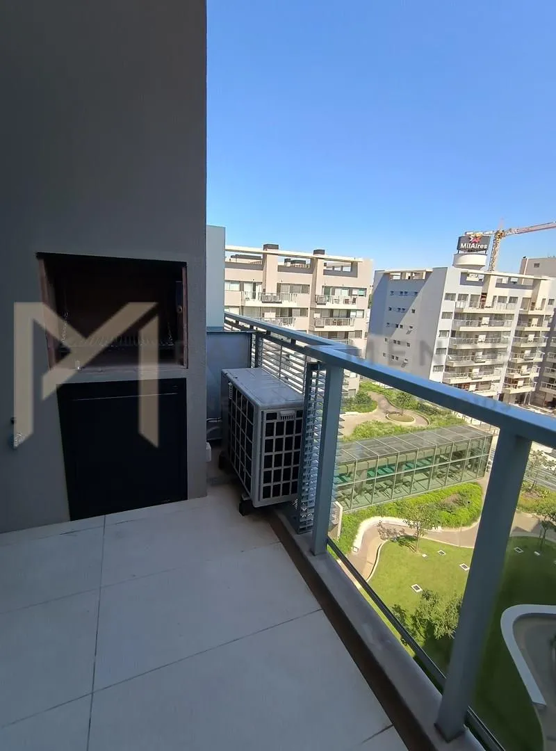 Apartamento de dois ambientes no MilAires, em Villa Devoto, com 1 dormitório, 1 banheiro e varanda privativa com área de churrasco individual. O imóvel fica em andar alto, com vista aberta, e tem sala de estar e jantar integradas à cozinha equipada. O condomínio oferece cochera dupla, além de piscina semiolímpica aquecida, jacuzzis e solarium, academia de 200 m² com sauna, coworking e salas gourmet, área de massagens e opções de lazer como kids club e playroom. Há ainda segurança 24 horas, grupo