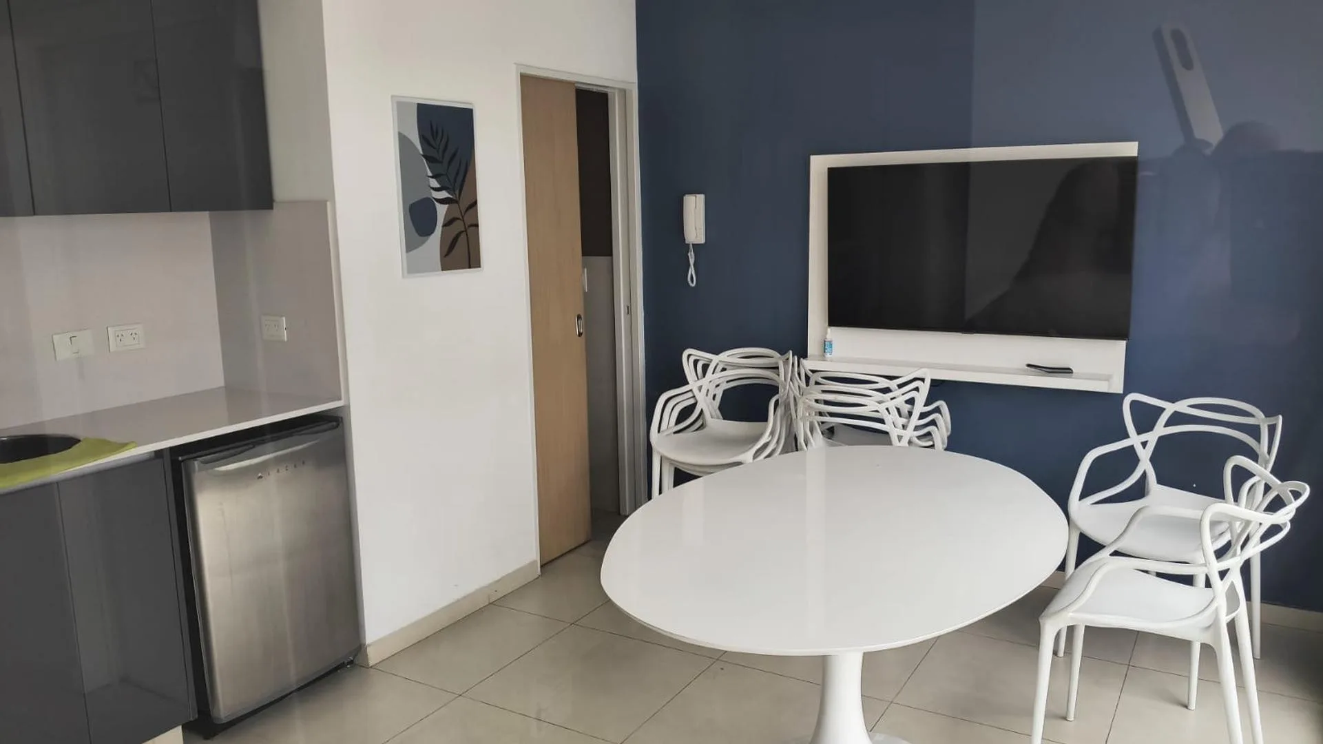 Kitnet com armário embutido em Villa Devoto. Tem ar-condicionado frio e quente, banheiro completo e cozinha bem equipada. Conta com varanda com proteção de rede e área de serviço. O prédio oferece salão para reuniões com área de churrasco e terraço, além de banheiro e cozinha.