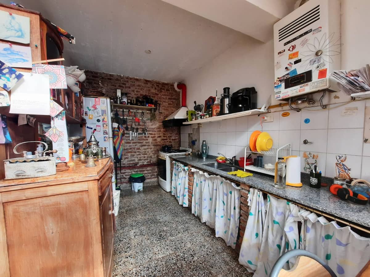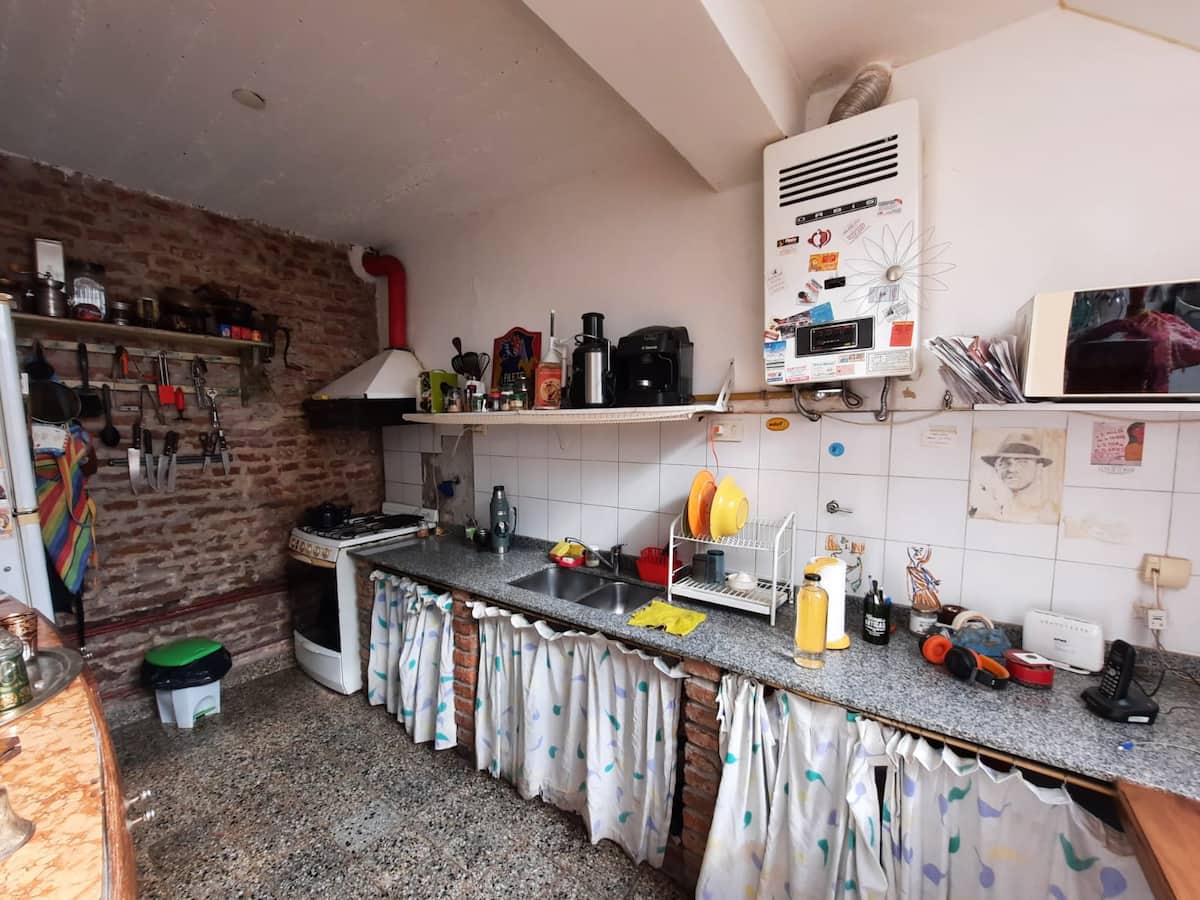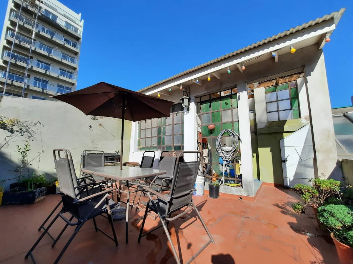 PH mobiliado e equipado em Villa Devoto, com 1 quarto e área de convivência com cozinha integrada. Há mezanino com cama de casal e área de trabalho para uso remoto, além de mesa e biblioteca para TV. A unidade compartilha 1 banheiro completo com banheira antiga, dispõe de área de lavanderia e de terraço com churrasqueira.