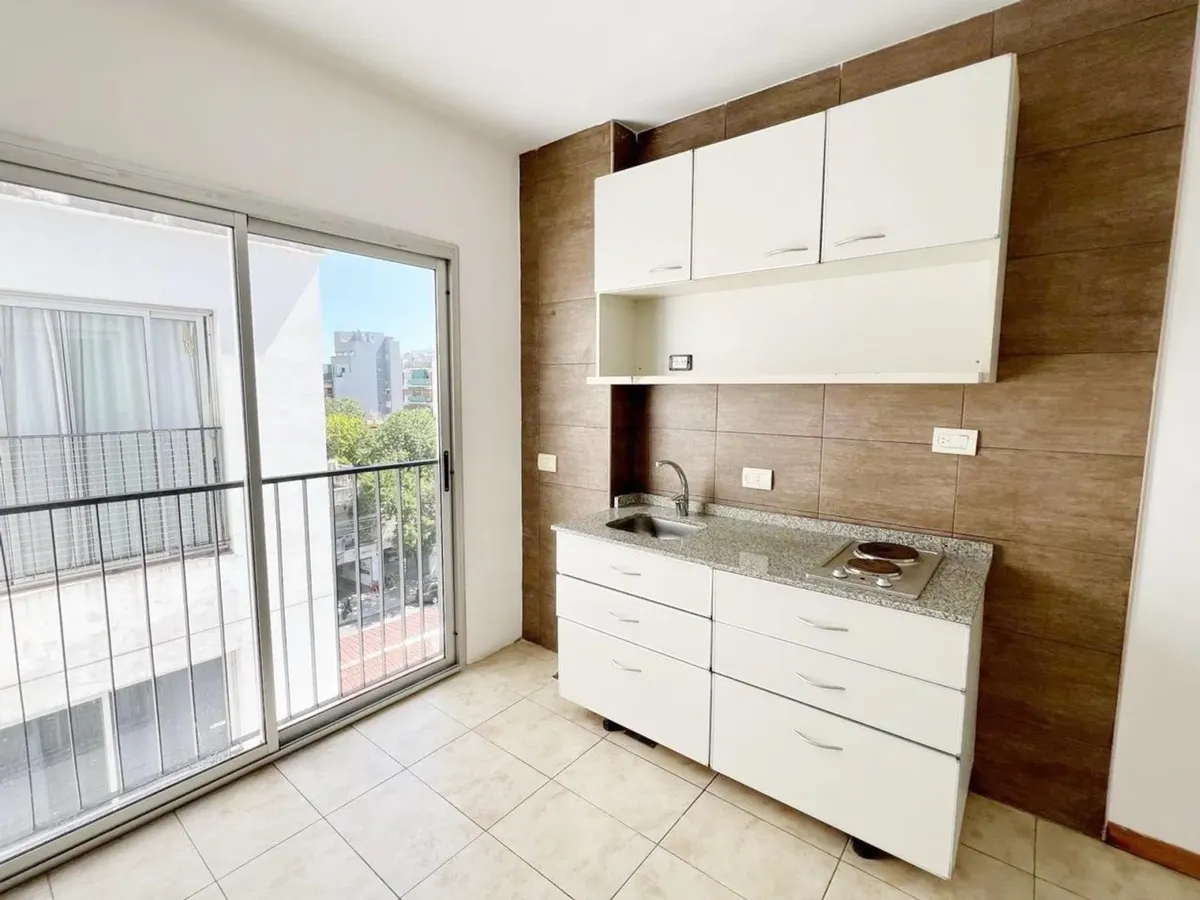 Kitnet com 37 m² totais no 5º andar, com frente para a Av. Mosconi e ventilação cruzada. Cozinha integrada com anafe elétrico e armários sob e sobre a bancada, janelão na frente e varanda nos fundos. Água quente central. O edifício tem encarregado sem moradia e terraço com área de churrasco de uso comum; fica a 1,5 quadra de Av. San Martín e Av. Mosconi, com Metrobus nas proximidades e várias linhas de ônibus. Exige 1 mês de depósito, 1 mês de adiantamento e seguro-fiança.