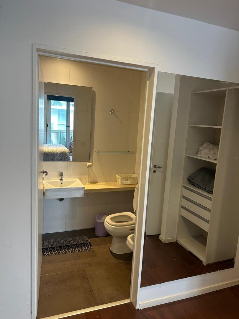 Apartamento de 2 ambientes, 1 quarto e 1 banheiro, mobiliado e equipado, com sala de estar e jantar, sofá-cama e varanda. Cozinha integrada com geladeira com freezer e micro-ondas, além de cama de casal, armários e banheiro completo em suíte com banheira e lavabo. Possui 2 ar-condicionados (frio/calor), aquecimento, TV e Wi-Fi. O condomínio oferece piscina, solário, terraço, salão comunitário (SUM), lavanderia, área de churrasco e circuito de segurança. O aluguel é pacote com Wi-Fi incluso, com