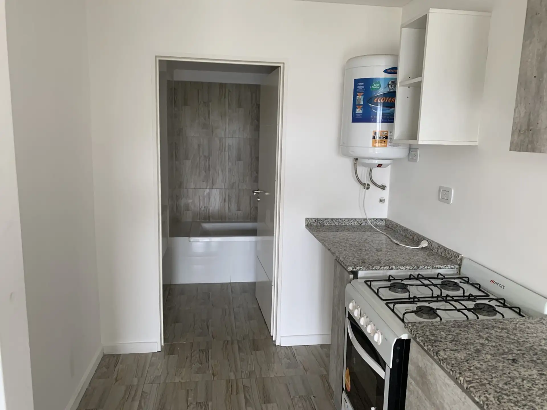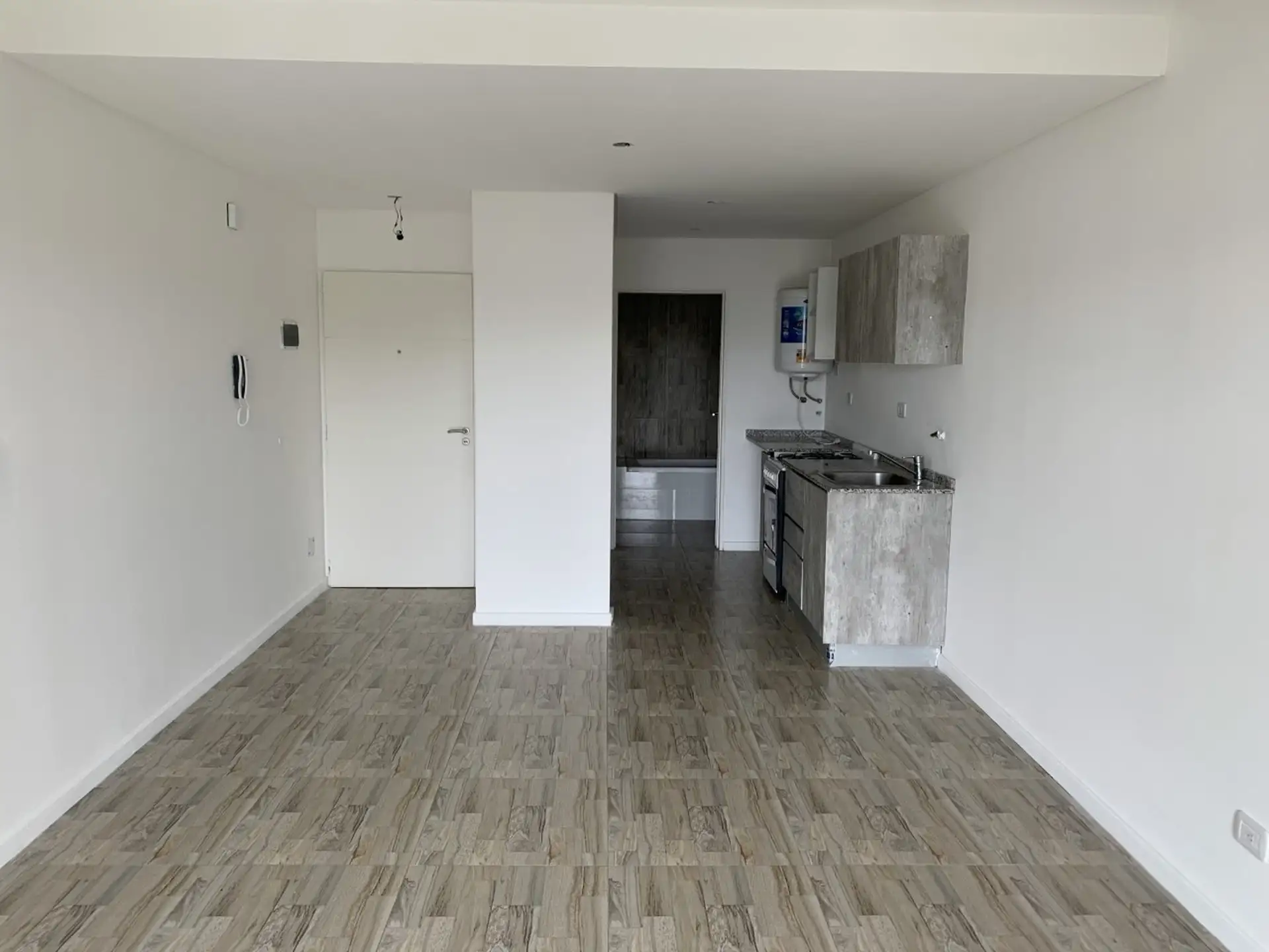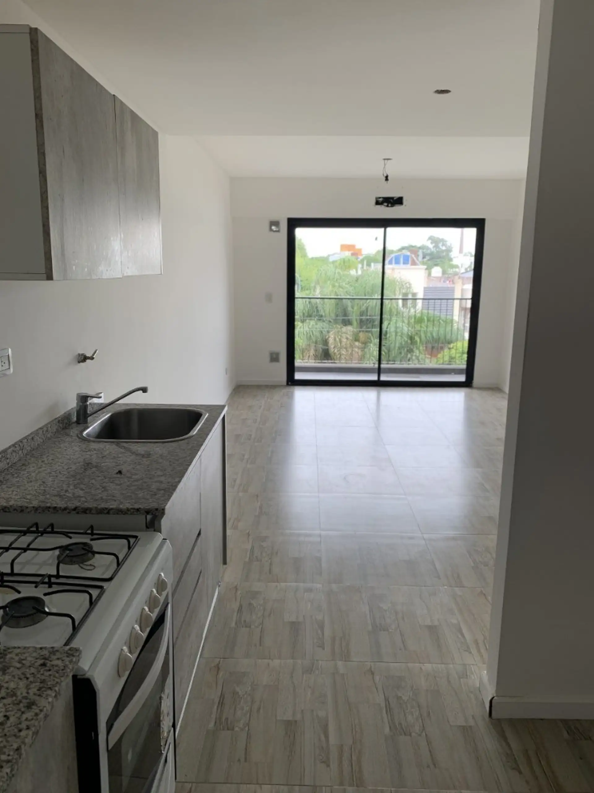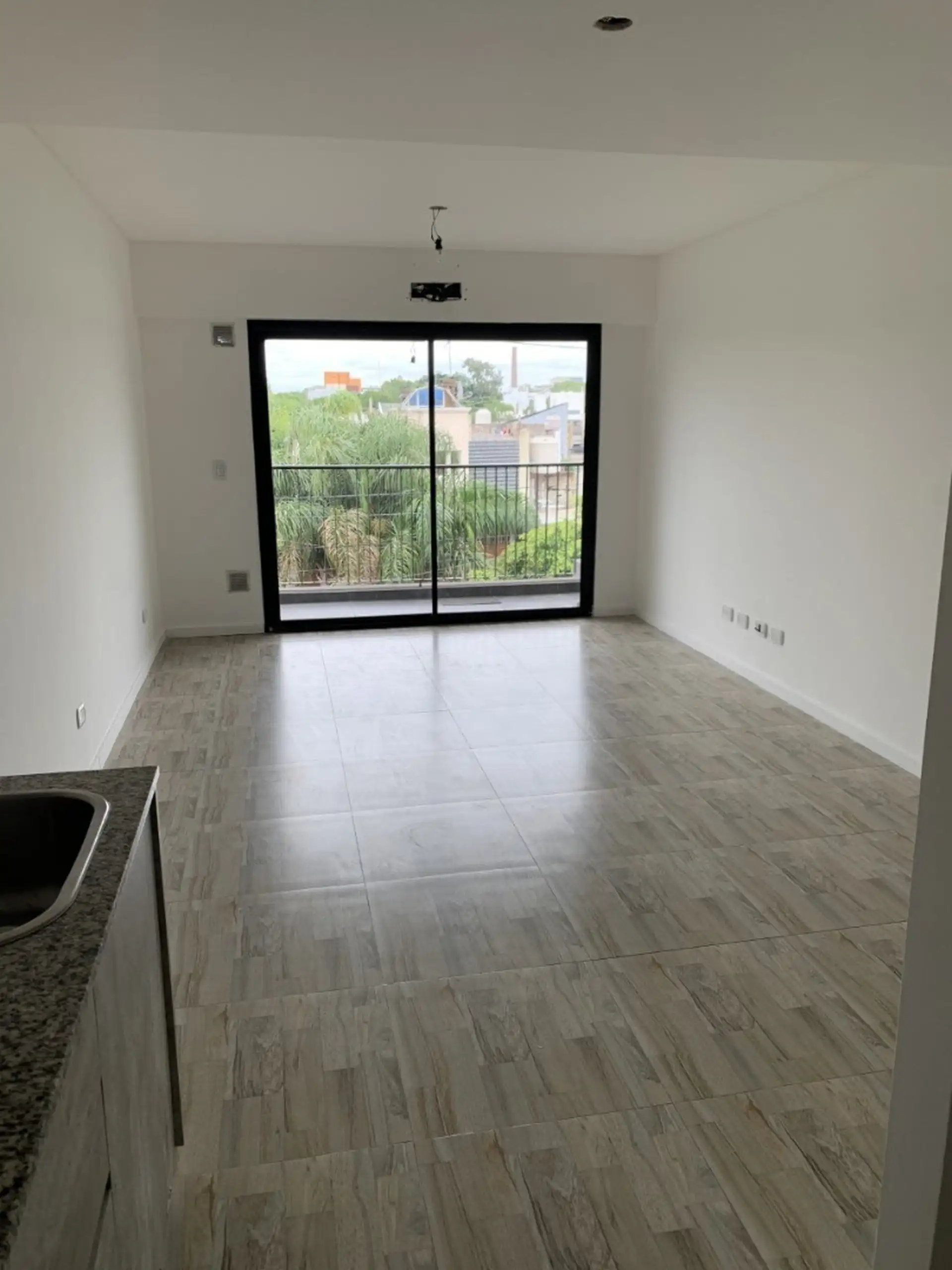 Kitnet de um ambiente com varanda em Villa Luro
