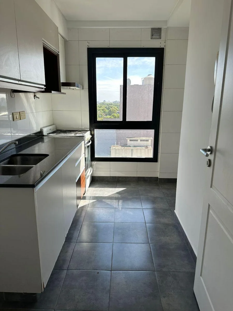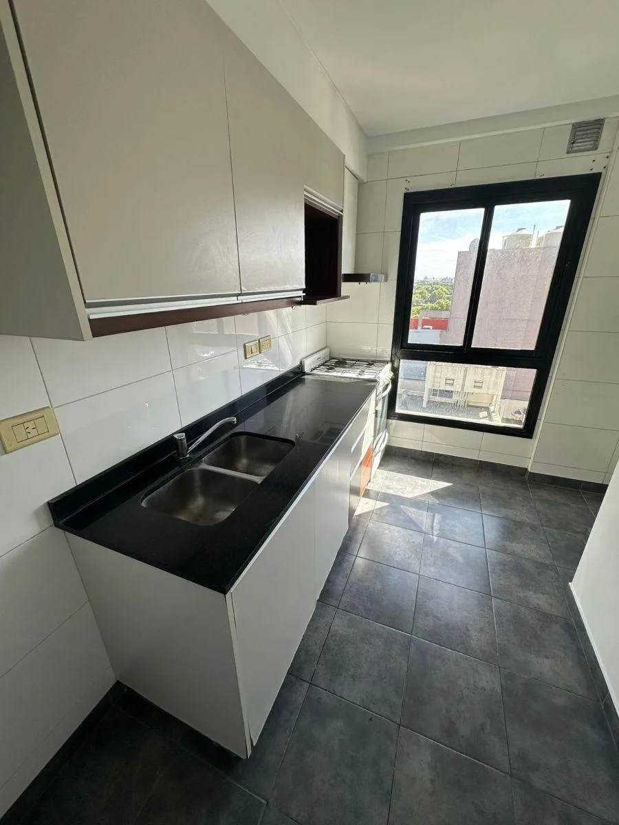 Apartamento de 2 ambientes em Villa Luro, no 9º andar com elevador. Ao entrar há sala de estar e jantar (6x3) com saída para uma varanda-terraço, cozinha separada com armários inferiores e aéreos, e área de lavanderia. Possui 1 banheiro completo e 1 dormitório (3x3) com armário. Inclui vaga de garagem independente com portão automático.