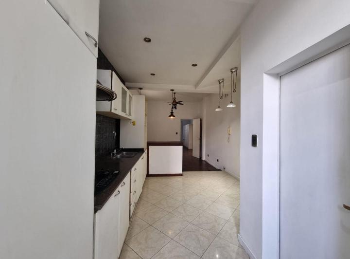 Apartamento de 2 ambientes em planta baixa, de frente para a rua. Ao entrar, hall de recepção que dá acesso a sala de estar e jantar, cozinha integrada com móveis sob a bancada e armário superior, balcão para café da manhã, e banheiro com duas pias, bancada em mármore sob medida e chuveiro. Há pátio com área de lavanderia semi coberta, aquecedor de água (termo tanque), dormitório com ventilador de teto, piso de parquet, armário embutido e depósito (baulera), além de iluminação dicroica. O condom