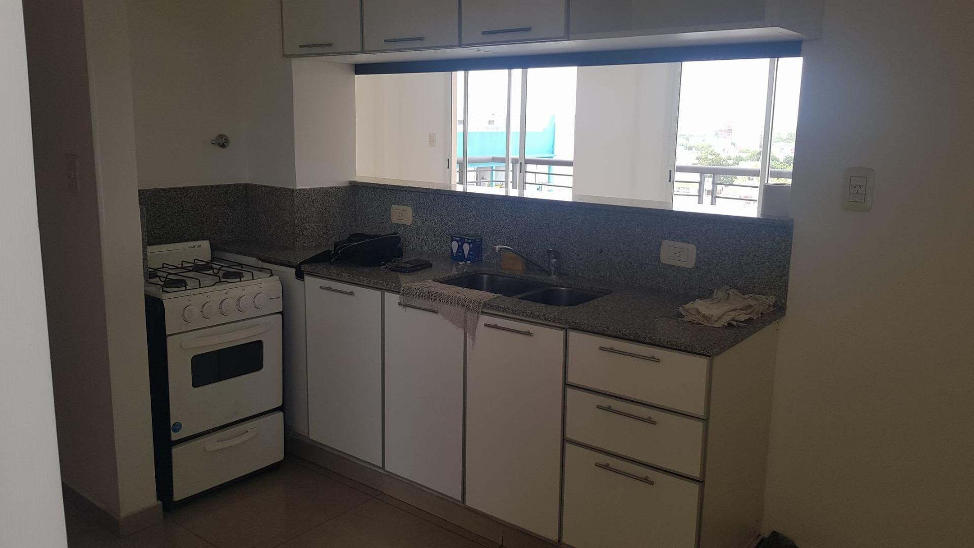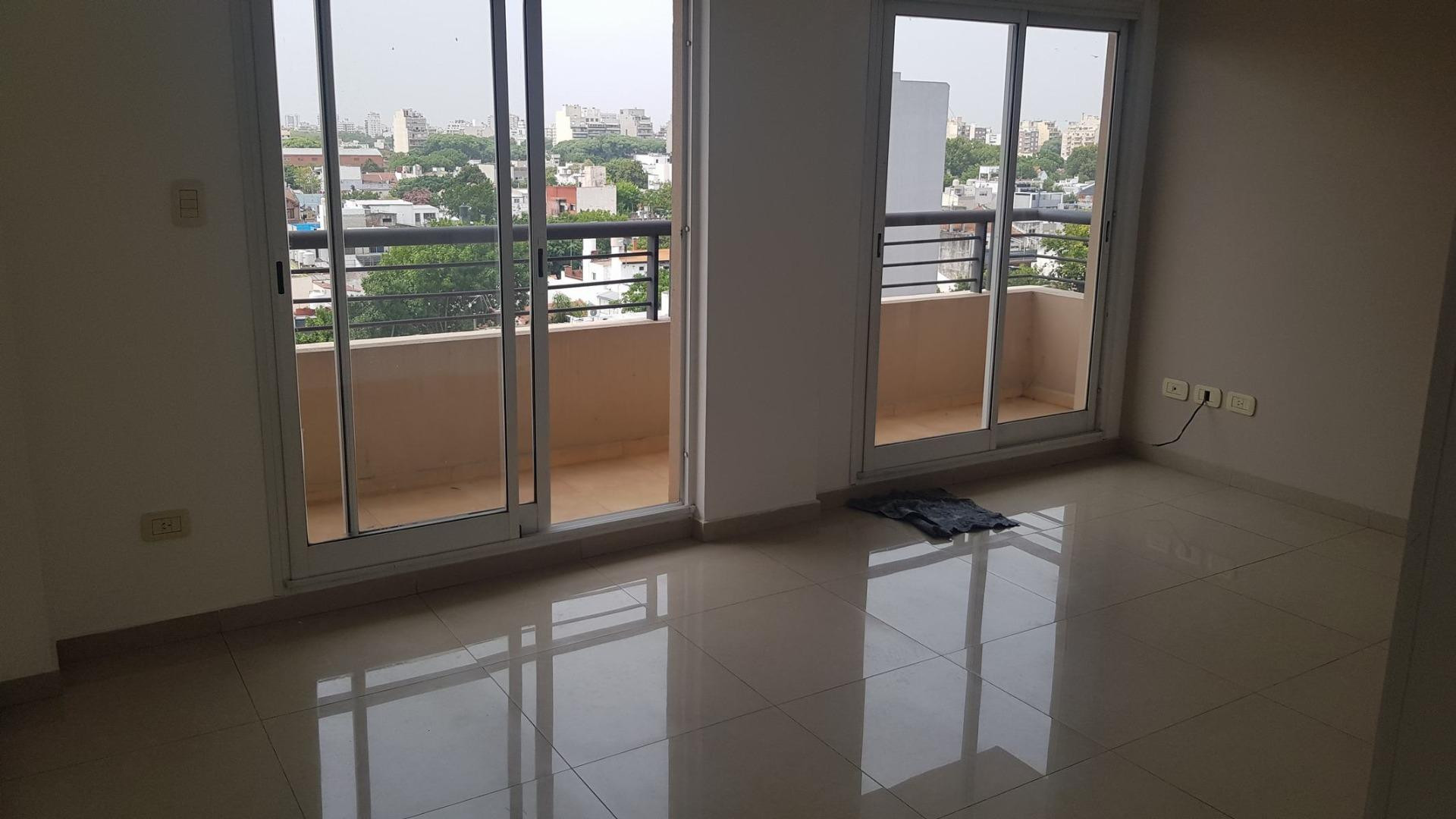Apartamento de 2 ambientes de fundos, quase novo, no 7º andar, com 2 banheiros, na rua Gabriela Mistral entre Av. Nazca e Terrada, em Villa Pueyrredón. Hall de entrada com 2,00 x 1,00 m, piso de porcelanato, sala de jantar integrada ao living de frente para os fundos com acesso a varanda contínua, cozinha independente com armários superiores e inferiores e passador, e área de lavanderia independente. Quarto de 3,00 x 3,00 m com armário e banheiro privativo completo, com aquecimento central indiv