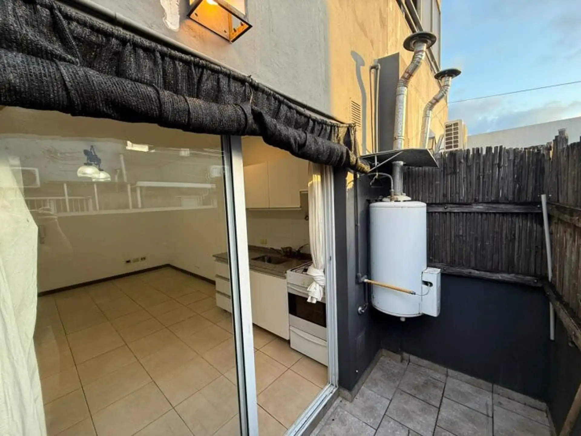 Unidade em PH tipo dúplex para aluguel, com living-comedor e cozinha integrada no piso principal, além de dormitório e banheiro completo. A cozinha tem saída para pátio/lavanderia. No piso superior, há terraço privativo. O contrato é de 2 anos, com reajuste trimestral pelo IPC, 1 mês de aluguel adiantado e exigência de comprovação de renda. É mencionada fiança de aluguel por garantia (Garantía Ya, Premium, entre outras), e consta que não são aceitas garantias proprietárias.