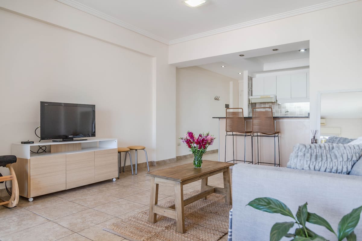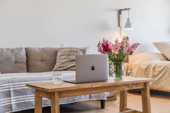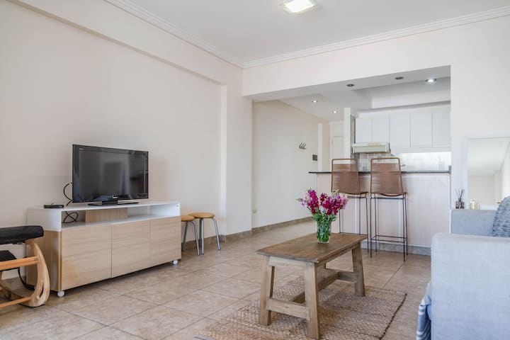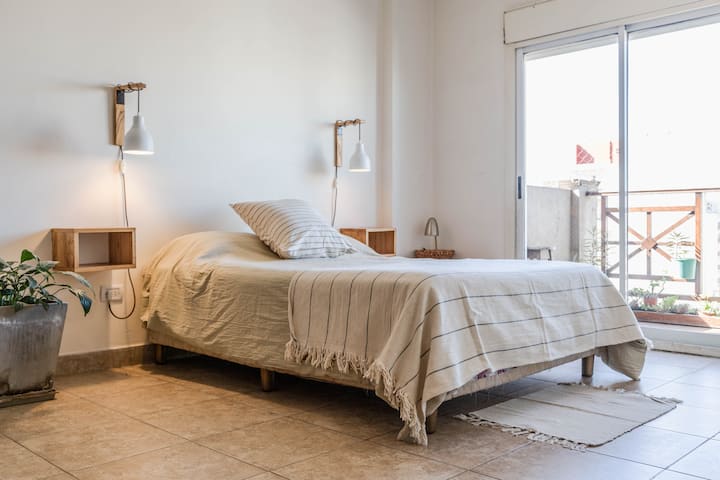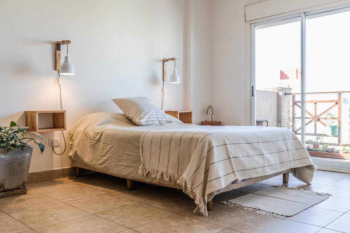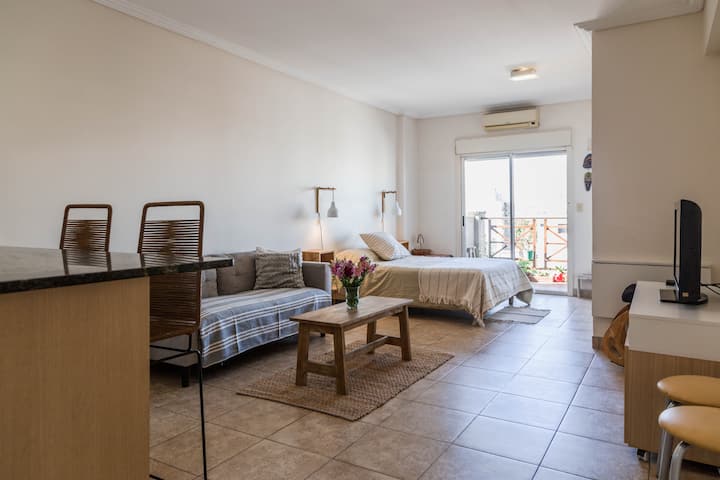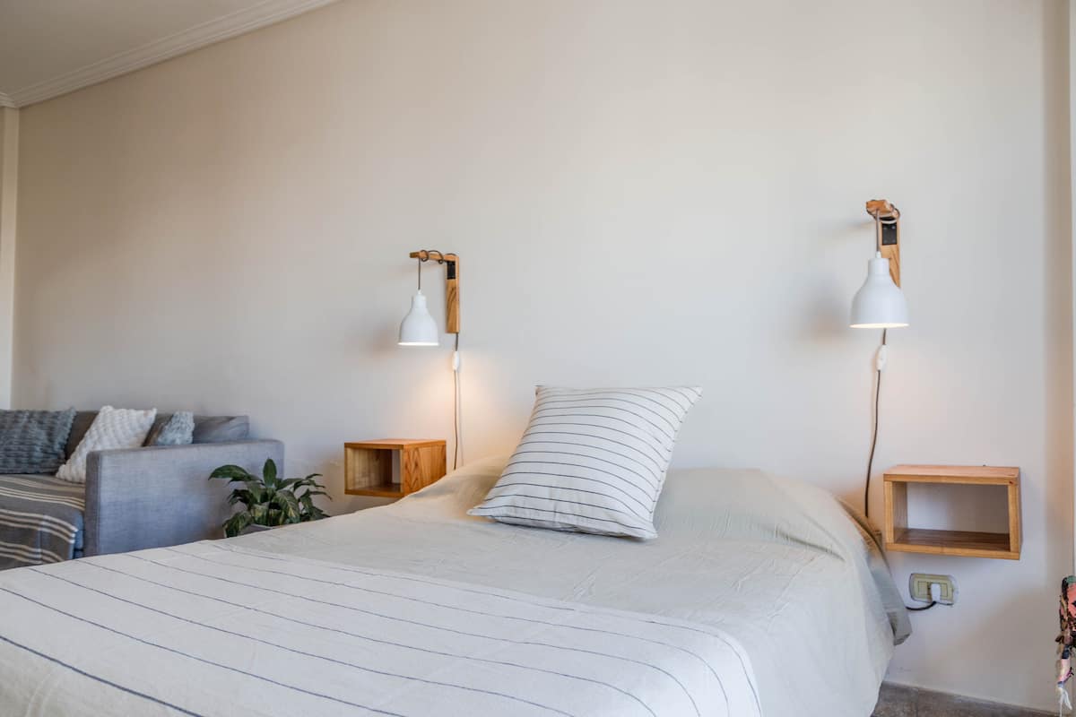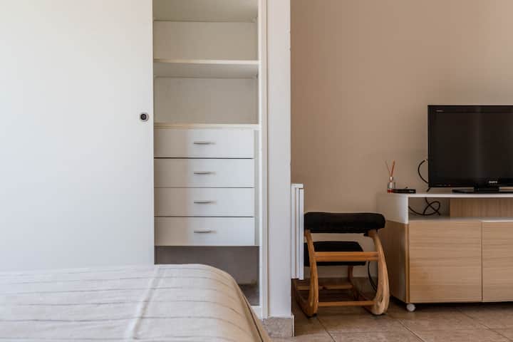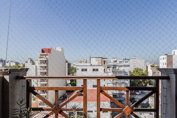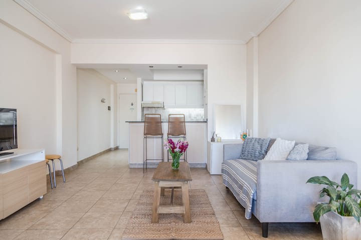 Kitnet mobiliada em Villa Santa Rita, com 1 cama de casal fixa, sala integrada com área de jantar, cozinha e dormitório no mesmo ambiente. Possui ar-condicionado (frio e quente), aquecimento eficiente e Wi‑Fi de alta velocidade. A cozinha tem geladeira, forno e fogão, além de micro-ondas, chaleira elétrica, cafeteira e torradeira; banheiro moderno com chuveiro e banheira e secador de cabelo. Há terraço com churrasqueira privativa e varanda com churrasqueira, além de vaga de garagem sem cobertura