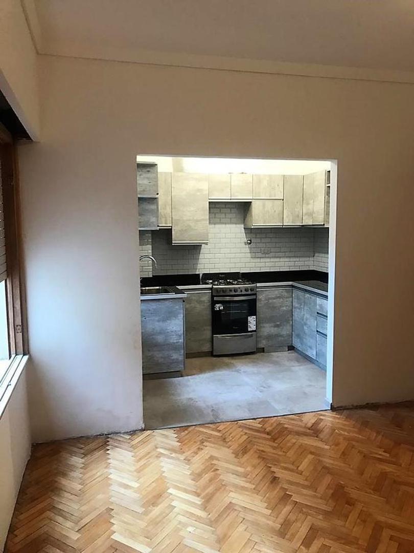 Apartamento de 2 ambientes no primeiro andar por escada, reformado. Com sala de estar e jantar, cozinha integrada e área de lavanderia integrada, corredor com armário e banheiro completo. O dormitório tem aquecimento a gás (calefón e calefator a gás na sala); pisos de porcelanato na cozinha e no banheiro. Não aceita animais. O aluguel é por 1 ano, com 1 mês de adiantamento, 1 mês de depósito e seguro-fiança, mediante comprovação de renda. Condomínio baixo e terraço no prédio.