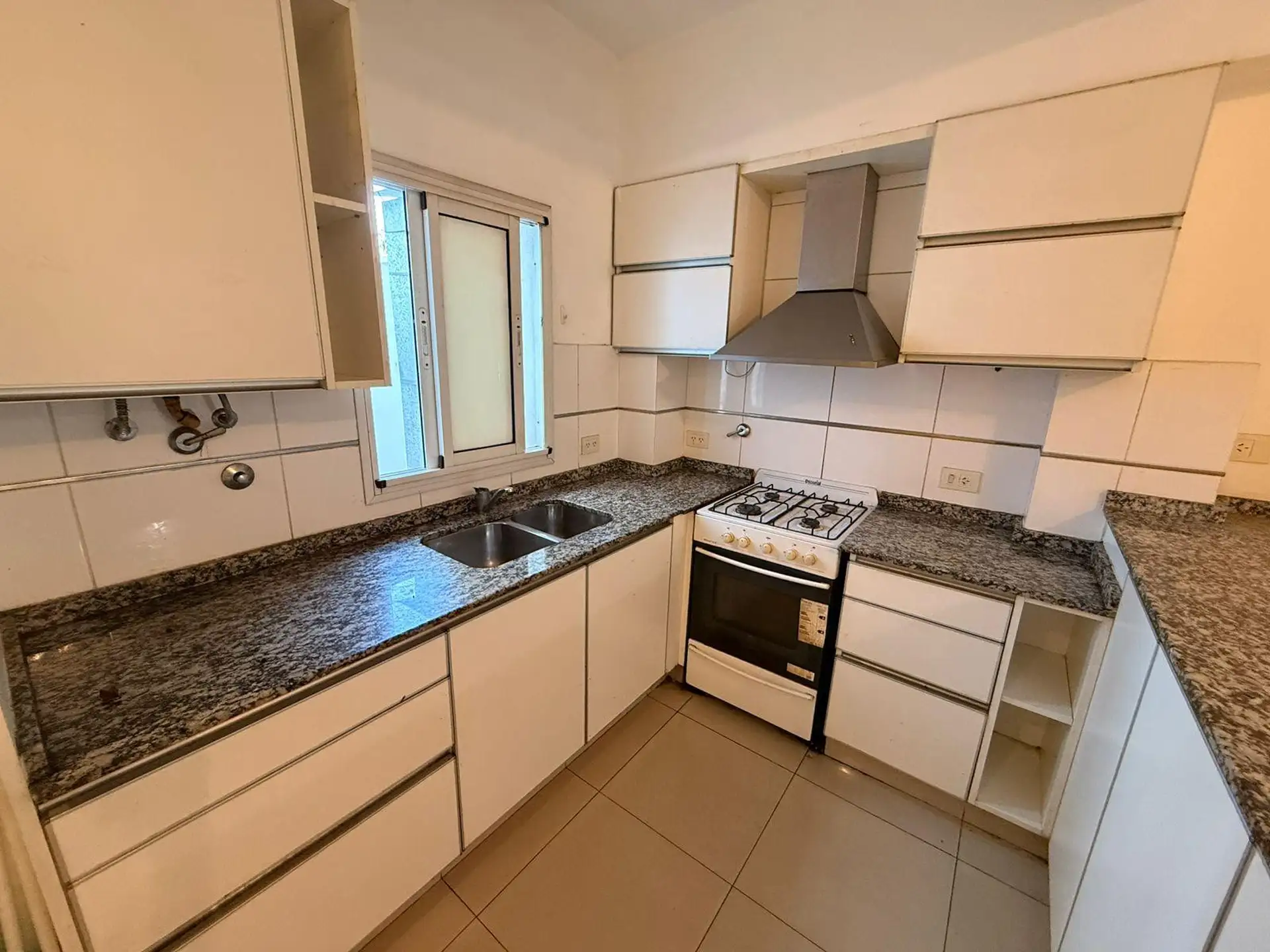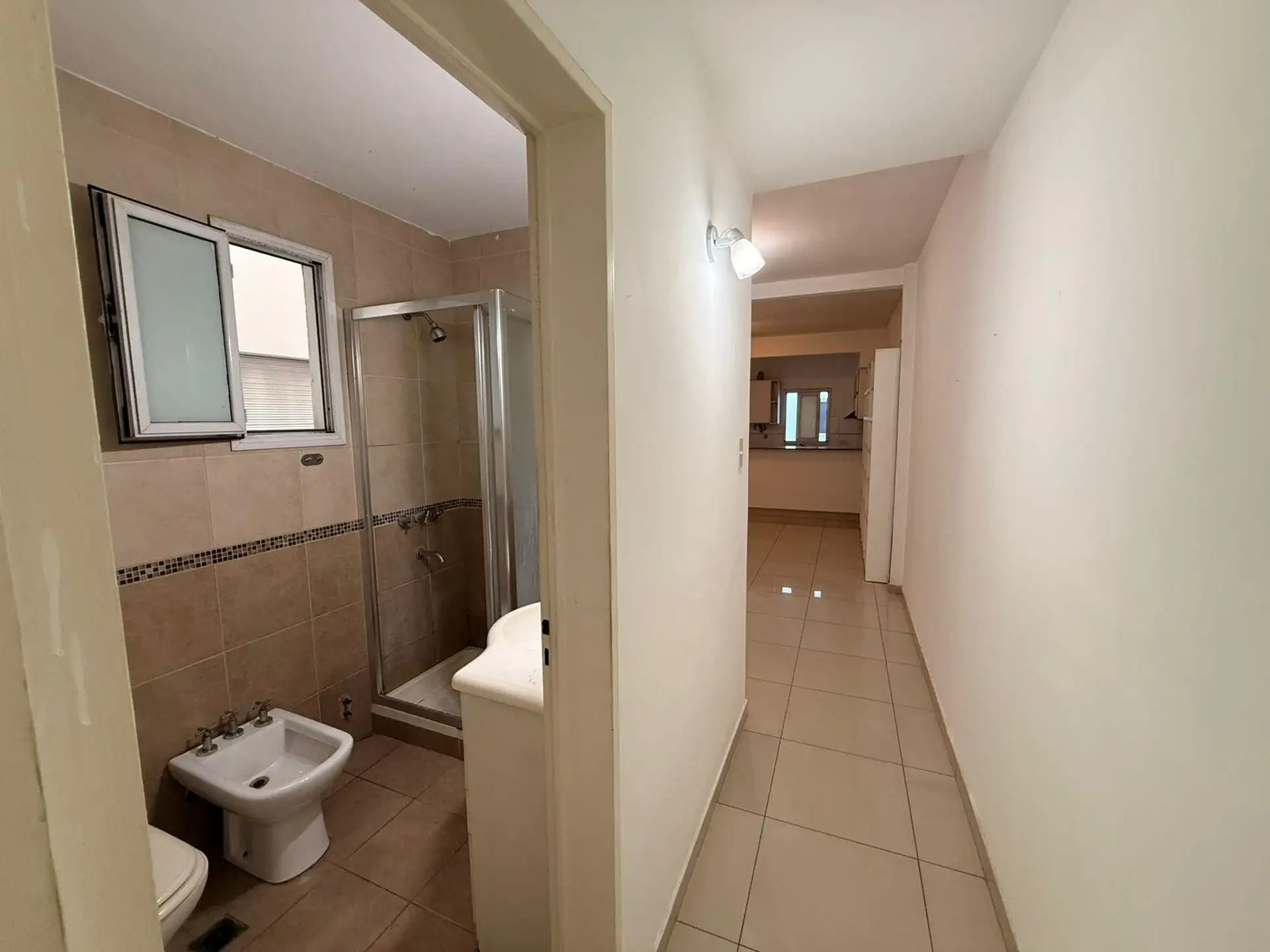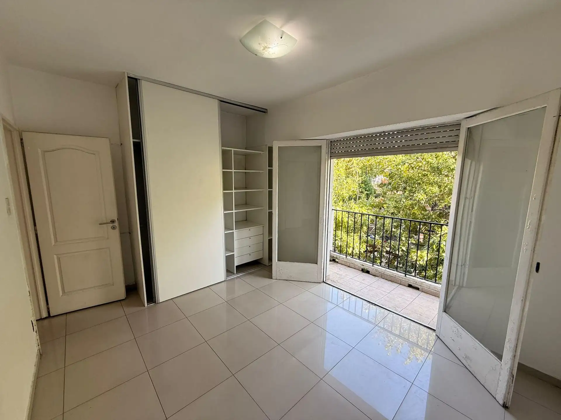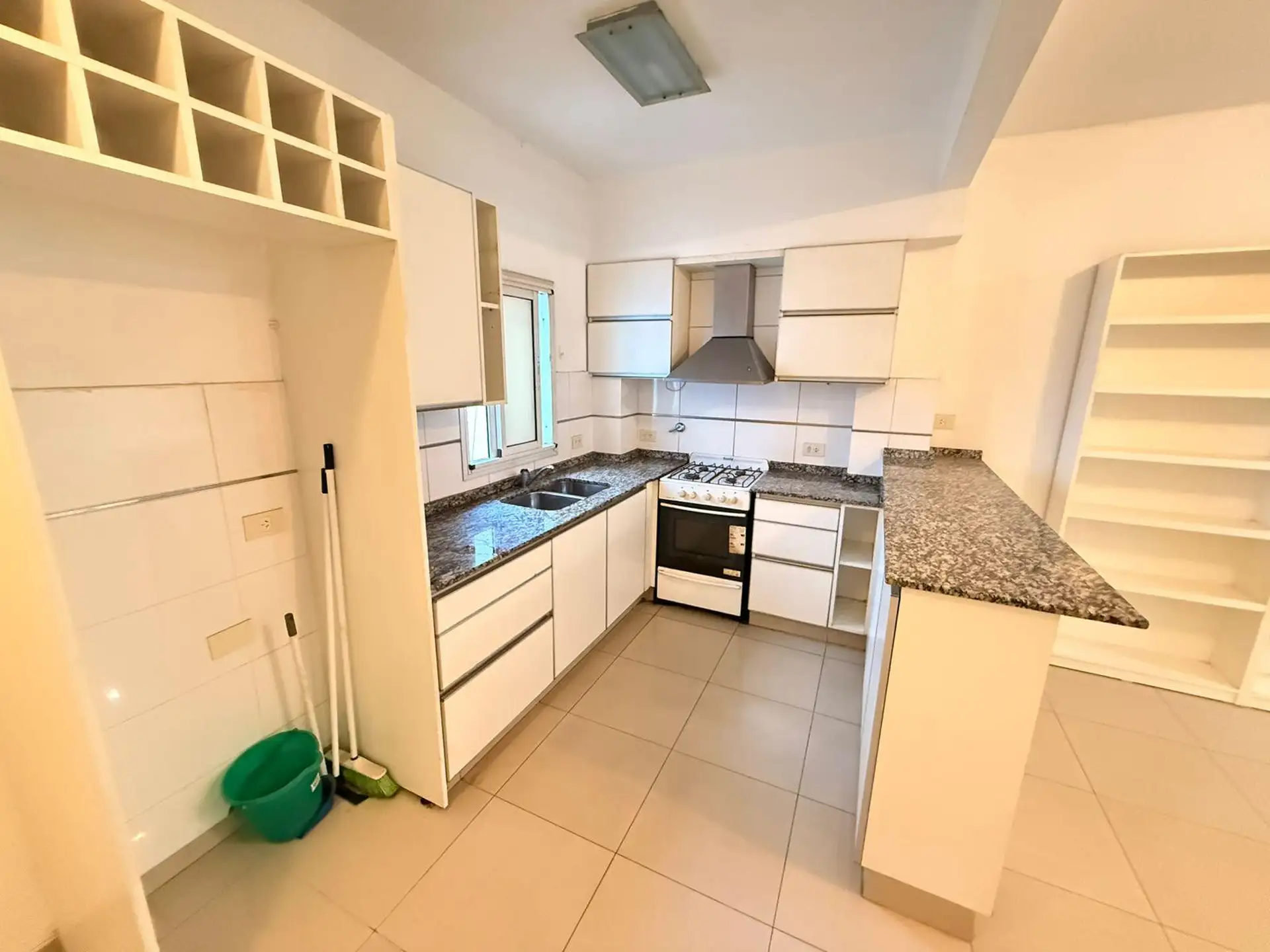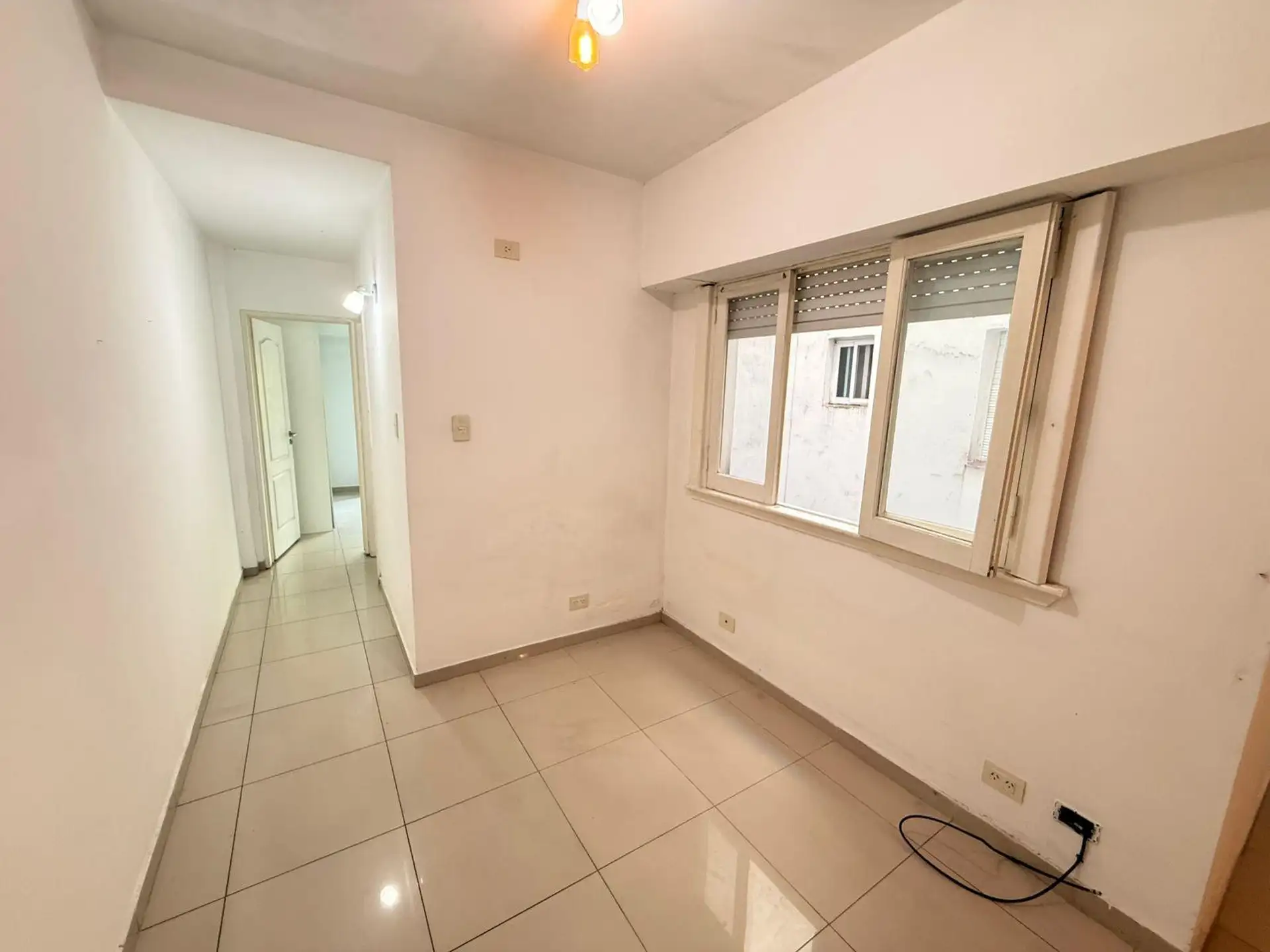 Apartamento de 2 ambientes de frente para a rua, com varanda e 1 quarto. Imóvel reformado, com living e cozinha integrada equipada com móveis, bancada de granito, fogão a gás e aquecedor a gás (calefón). O dormitório tem armários duplos com divisórias, e o banheiro tem ducha e ventilação natural. Condomínio baixo.