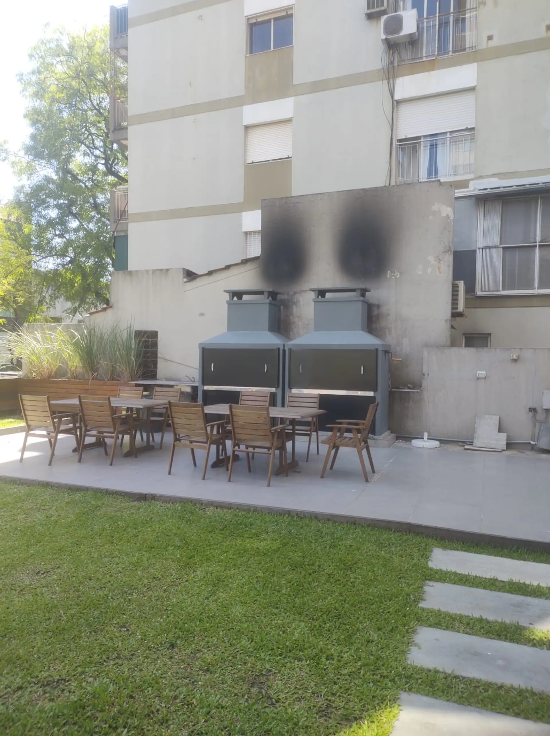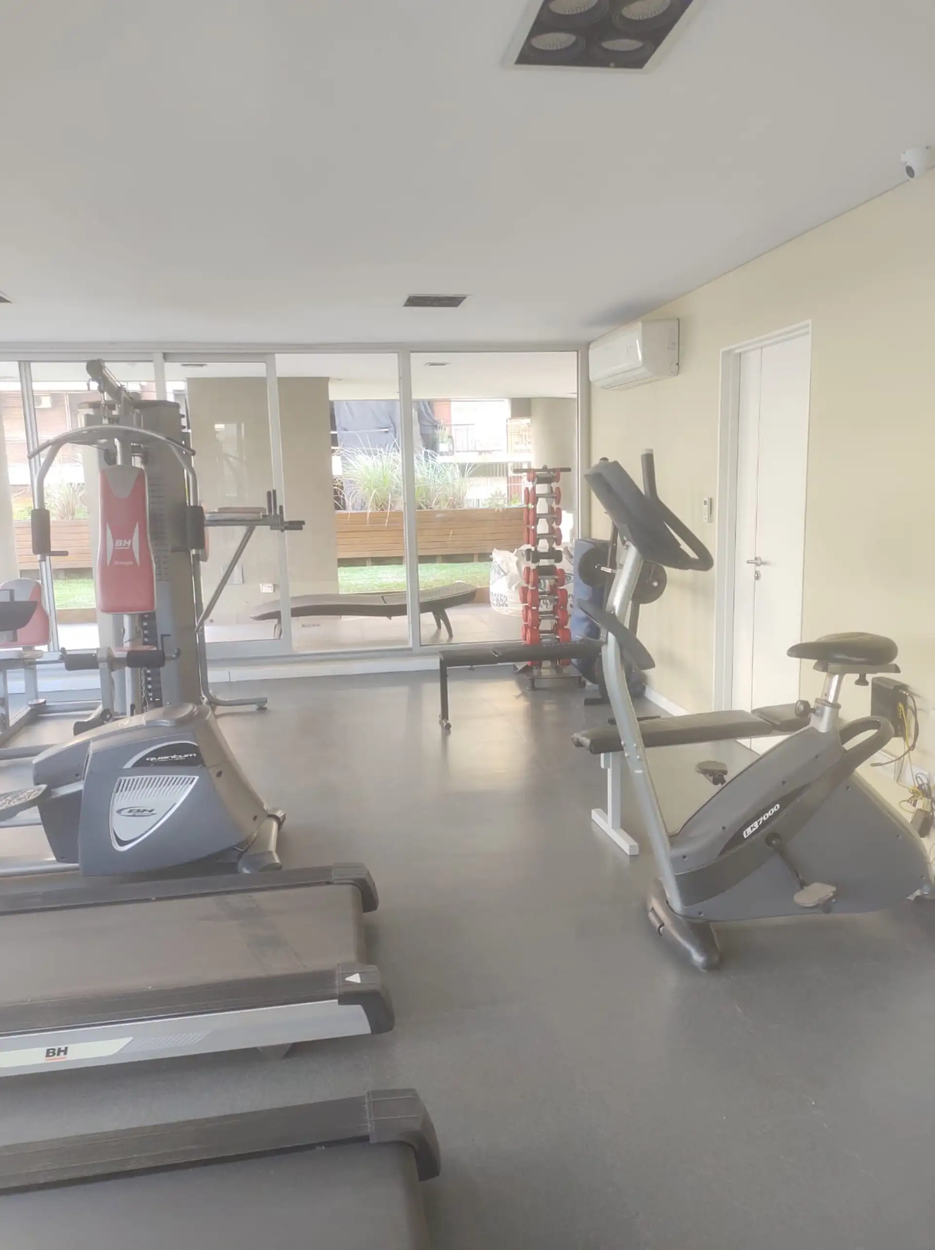 Apartamento de 2 ambientes em andar alto, em Villa Urquiza, com alta luminosidade. Possui 2 ar-condicionados, um no living e outro no dormitório, além de armário completo no quarto e estantes no hall. Inclui banheiro completo, forno e 4 fogões elétricos, com espaço para lavadora de carga frontal. O prédio oferece sauna, vigilância 24 horas, encarregado, piscina, academia, área verde com churrasqueiras e salão de festas a uma curta distância da Av. Triunvirato.