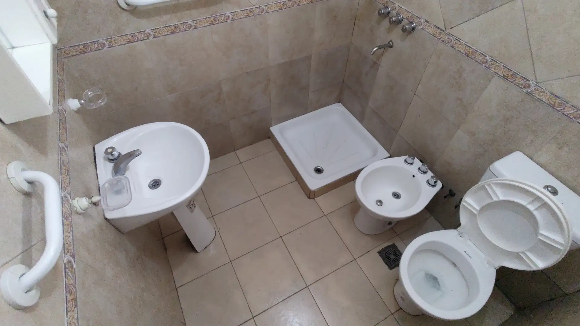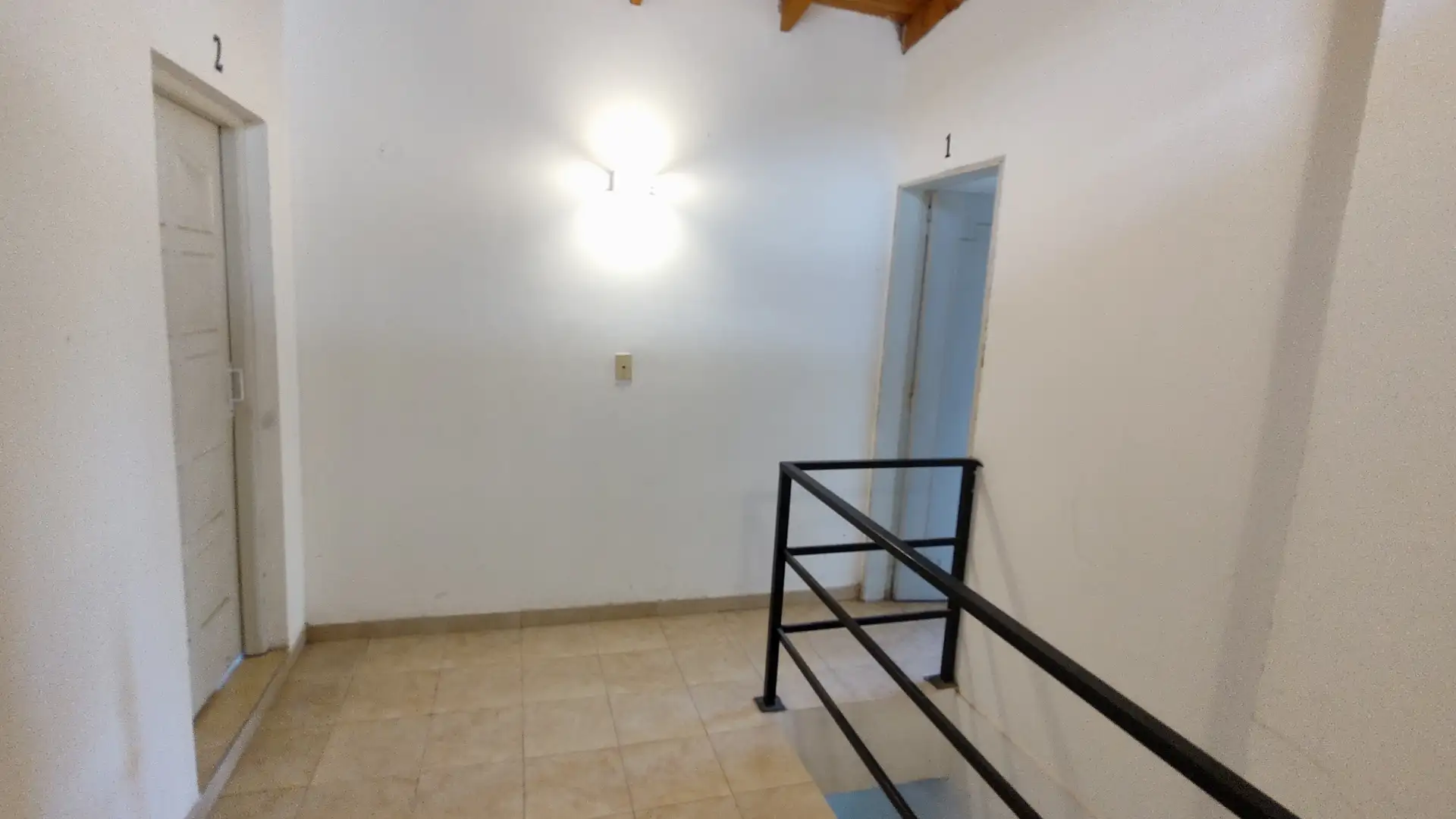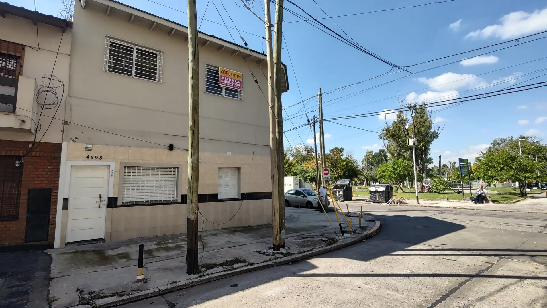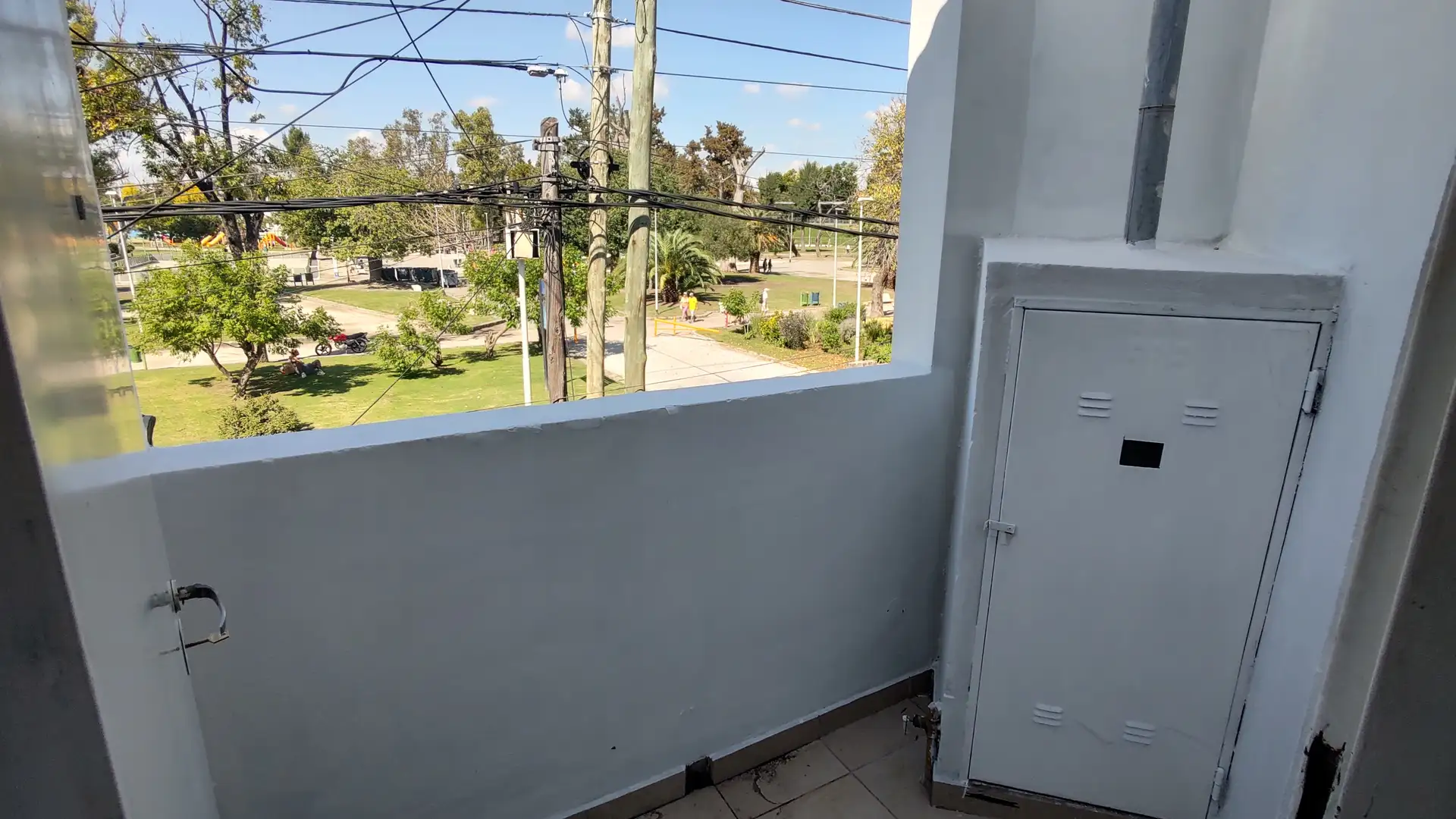 Unidade PH de 2/3 ambientes em esquina, na rua Darwin 202 com Zeballos, de frente para o Parque Domínico. Aproximadamente 42 m² cobertos e 3 m² descobertos. A planta inclui living-cozinha-refeitório integrados (cerca de 5,20 x 4,00 m), dormitório principal (3,20 x 2,85 m), segundo dormitório/escritório (3,20 x 2,50 m), banheiro completo (1,90 x 1,65 m) e hall/distribuidor (1,90 x 1,65 m). Varanda com área de lavanderia (1,20 x 2,35 m).