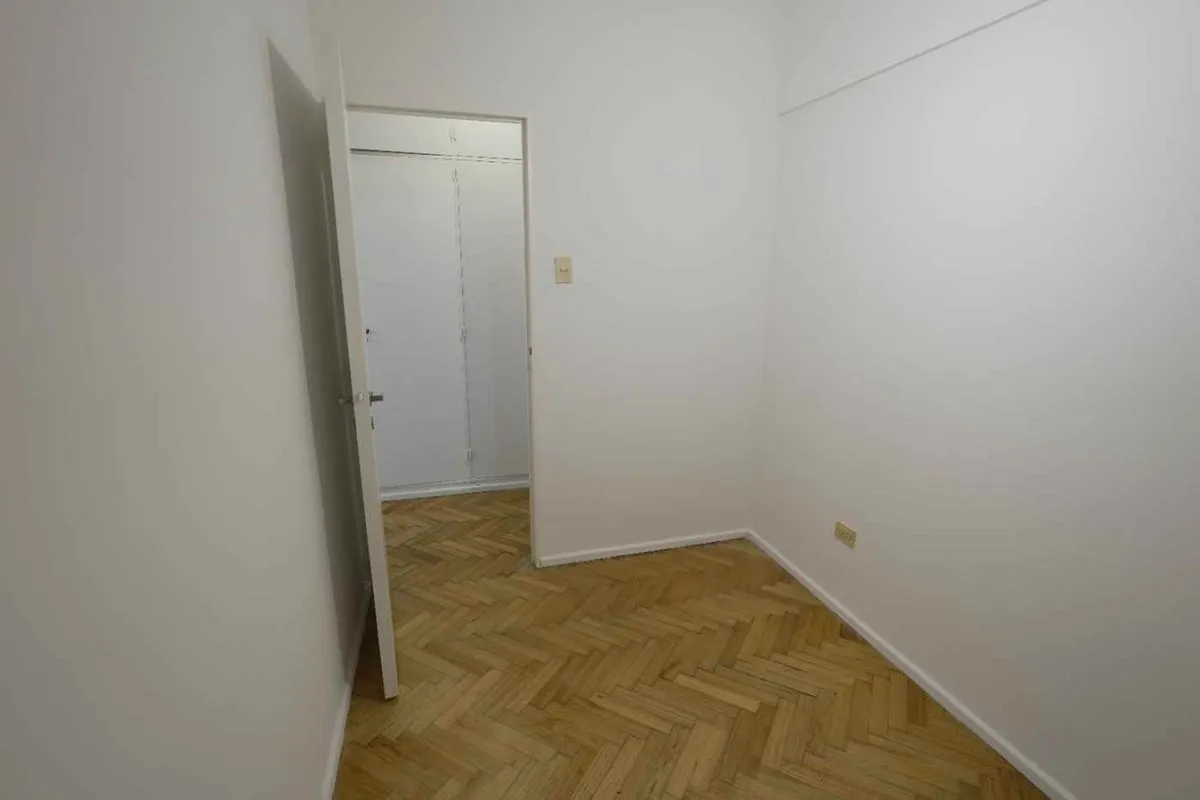 Apartamento de 3 ambientes com 47 m² no 4º andar, voltado para fundos (contrafrente interno) na rua Sarmiento, em Avellaneda Centro. Possui 2 quartos, sala de estar e jantar, cozinha com armários inferiores e superiores, banheiro completo com banheira e área de serviço com conexão para máquina de lavar e aquecimento por calefón. Inclui varanda do tipo balcão francês com vista para o miolo de quadra, roupeiro embutido no corredor e prédio com elevador; edifício construído em 1970. O aluguel mensa