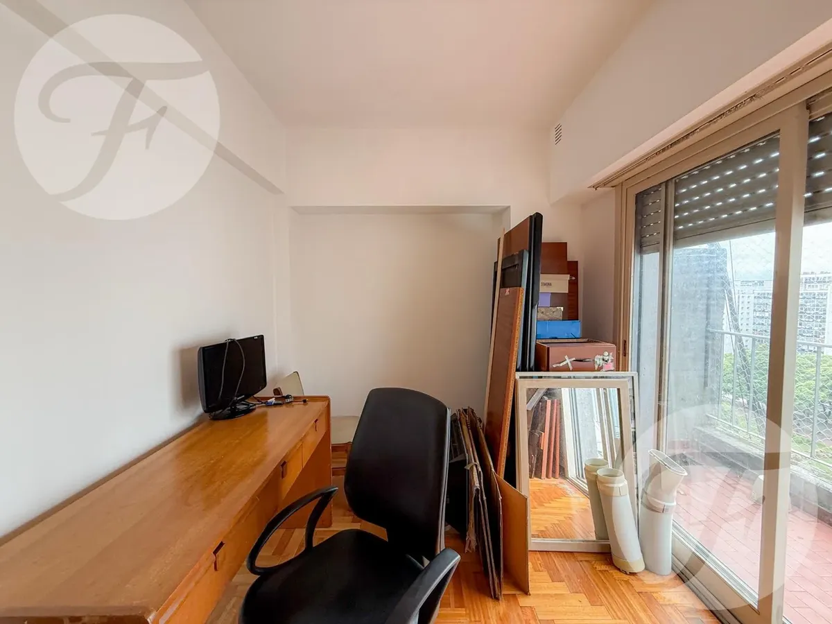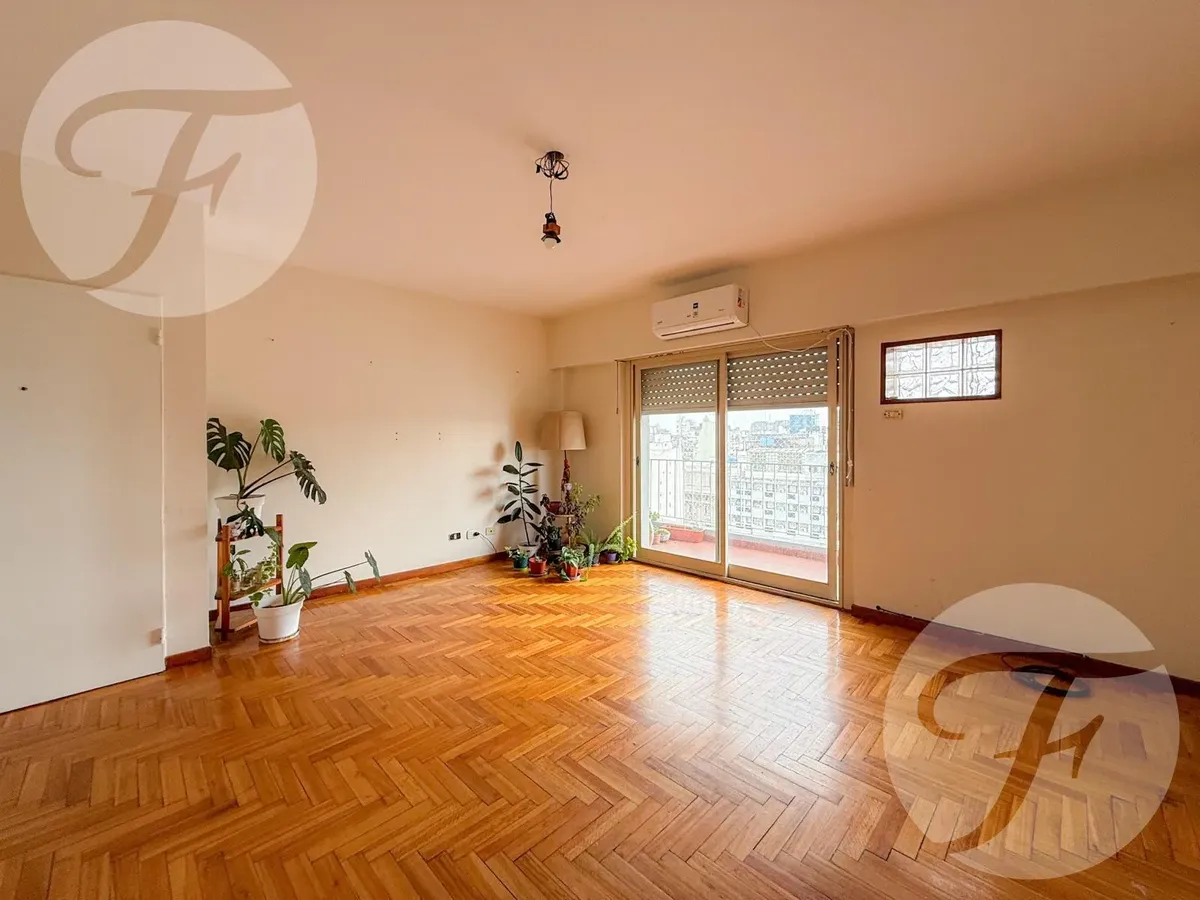 Apartamento de três ambientes com 2 dormitórios, no 13º andar, de frente para a Plaza Congreso, em Balvanera. Living e sala de jantar, cozinha independente com espaço para refeições diárias e área de lavandeira. Conta com 1 banheiro completo e 2 varandas, uma voltada aos fundos e outra com vista para a Plaza Congreso.