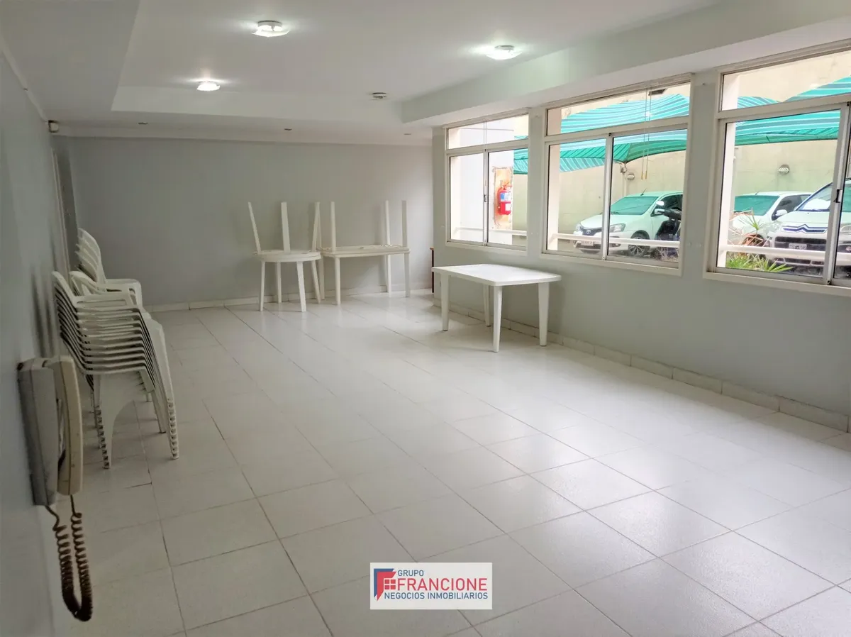 Apartamento de três ambientes com 65 m² totais no bairro de Balvanera, no 3º andar, com varanda de frente para a rua. Possui 1 banheiro completo e 1 lavabo, ar-condicionado nos ambientes e aquecedores, além de conexão para máquina de lavar roupa. O edifício conta com piscina externa e SUM, a poucos metros da Av. Rivadavia e da Plaza Miserere.