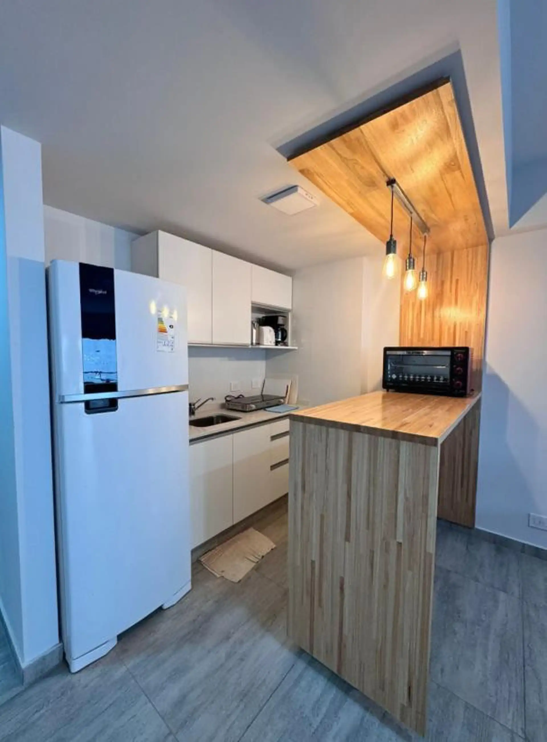Kitnet de 1 ambiente (novo, nunca habitado) com varanda voltada para os fundos, em prédio com segurança e fechadura eletrônica. Fica na Av. Corrientes, a 100 metros da Av. Callao, a poucos metros das estações de metrô das linhas B, D e A, em área com comércio, restaurantes e instituições de ensino. A unidade tem ar-condicionado frio/quente, cozinha totalmente equipada e divisão de ambiente; inclui setor de laundry, academia, área de churrasco com solarium e espaço de coworking. O valor inclui co