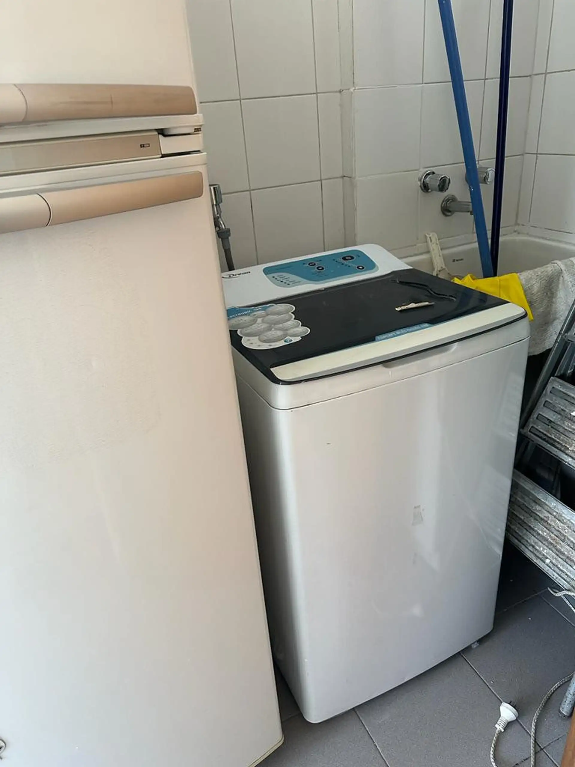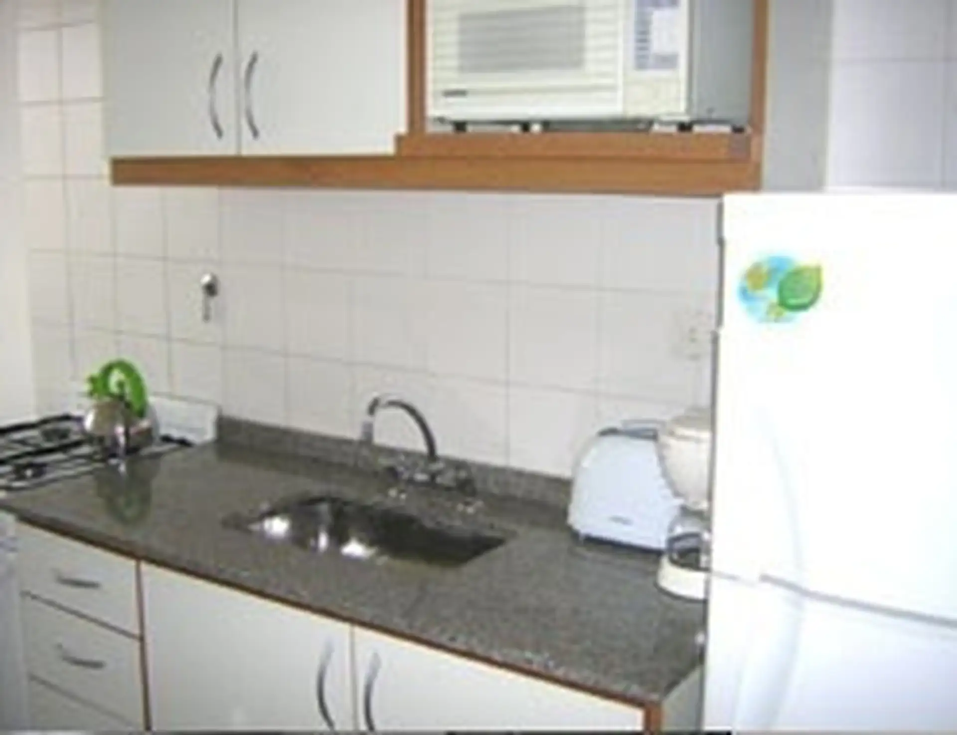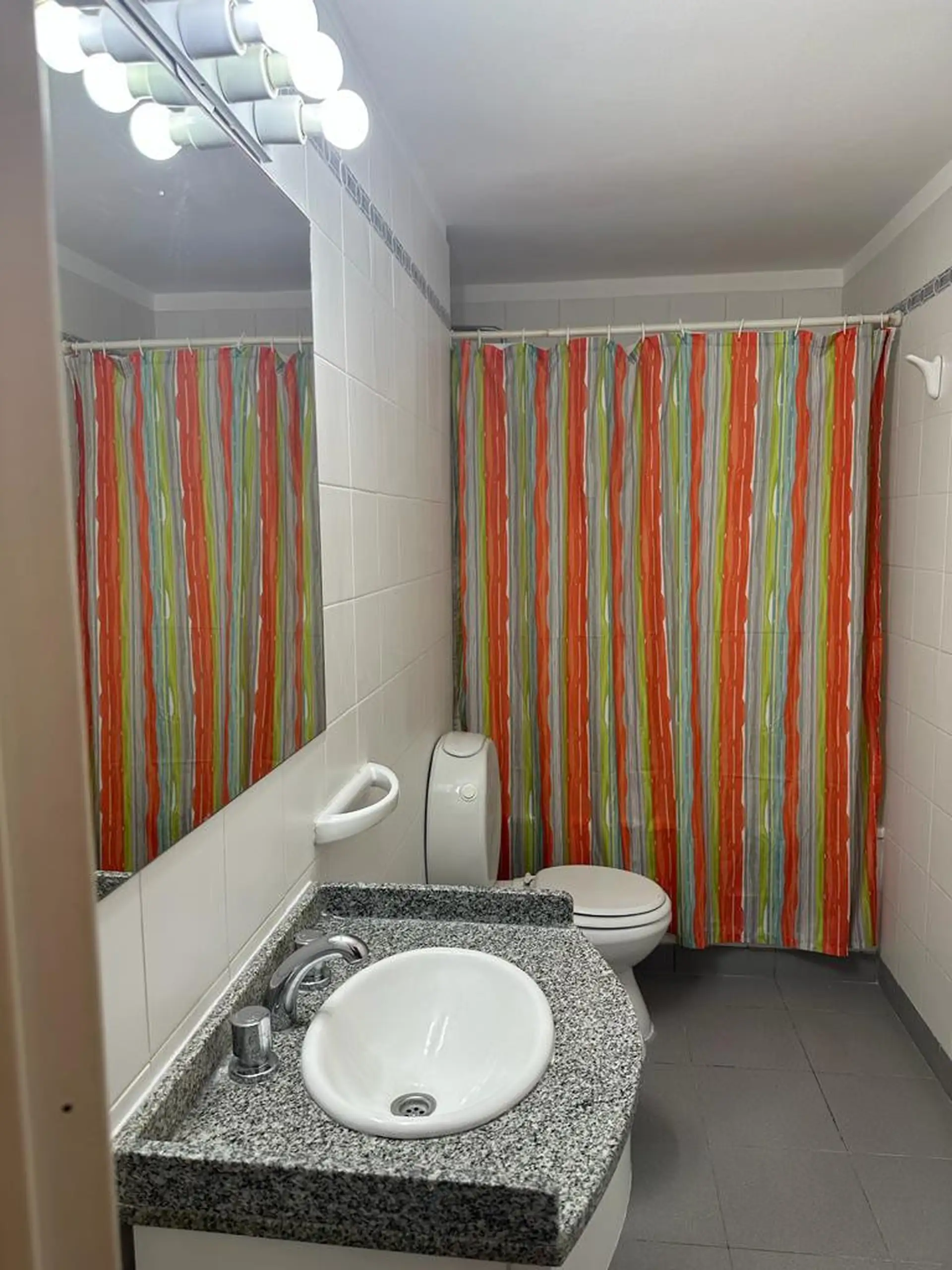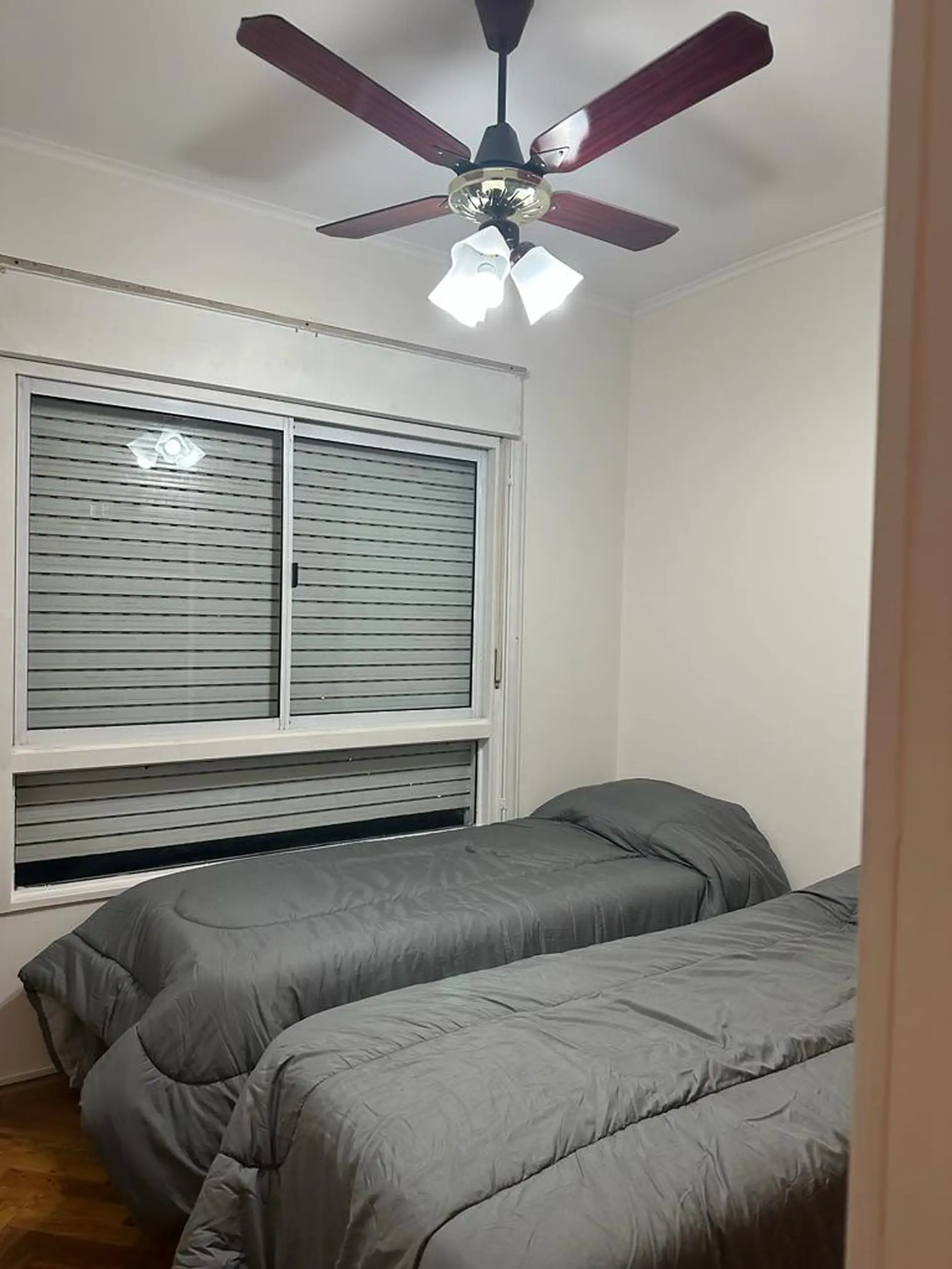 Apartamento de 3 ambientes com 65 m², andar alto, com varanda de frente para a rua. Mobiliado, com 2 quartos e capacidade para 4 passageiros; 1 cama de casal e 2 camas individuais. Tem cozinha equipada com lavadora, forno e fogão a gás, sala, 1 banheiro completo com banheira e 1 lavabo, além de ar-condicionado não informado no anúncio. O prédio oferece piscina, solário, jardim, área de recreação infantil e segurança 24 horas. Disponível a partir de 21/abril/2026.
