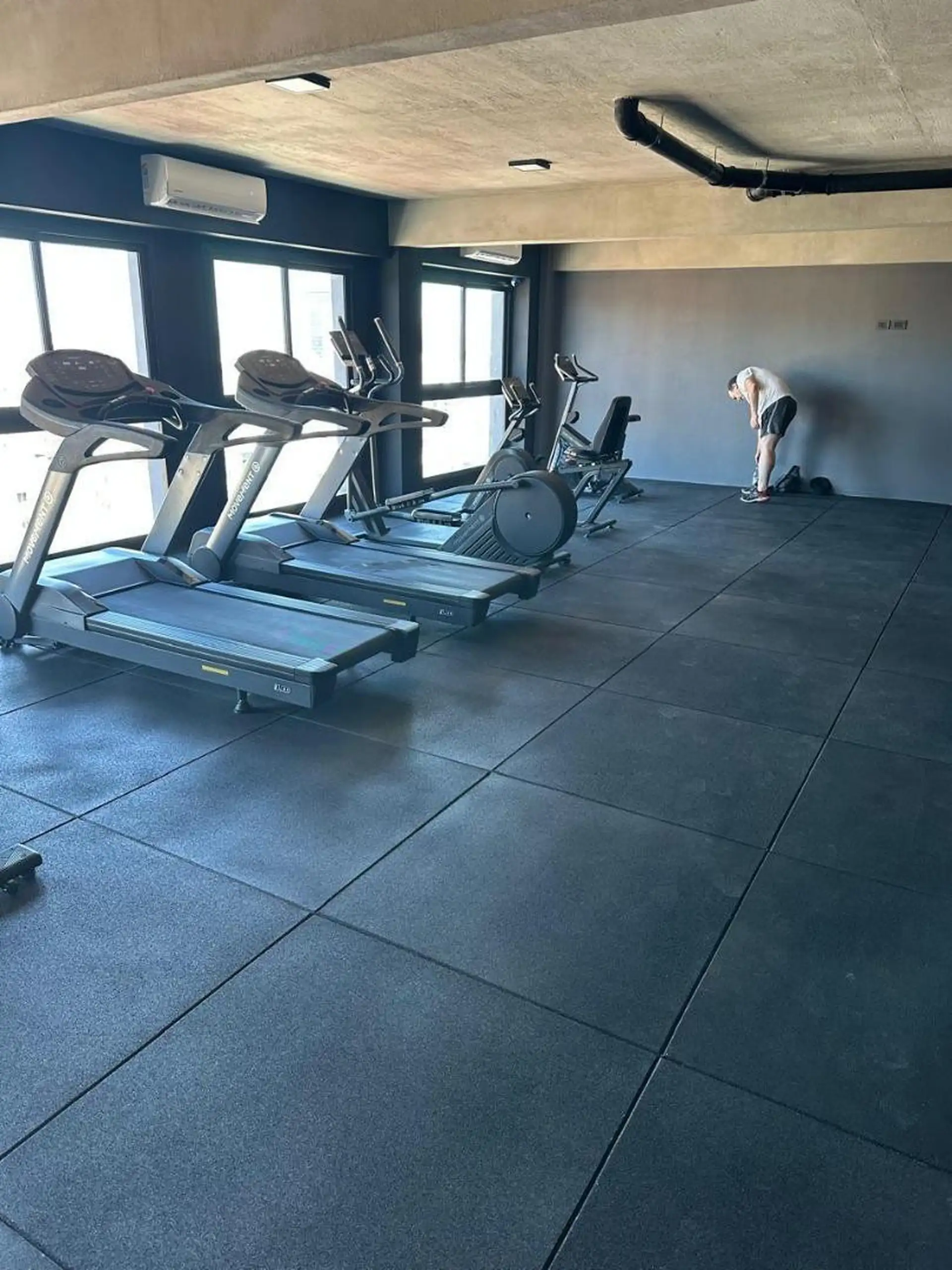 Apartamento mobiliado tipo estúdio para aluguel temporário em Balvanera, com fechadura eletrônica na entrada. Conta com sala de estar e jantar, 2 camas de solteiro, armários com espelhos, cozinha integrada com geladeira com freezer e micro-ondas, banheiro completo com banheira, ar-condicionado, aquecimento e TV. O valor do aluguel é pacote com Wi-Fi, exceto a conta de luz, paga pelo inquilino. O prédio tem terraço, piscina, solário, área de churrasco, GYM, espaço para coworking, salão de festas,