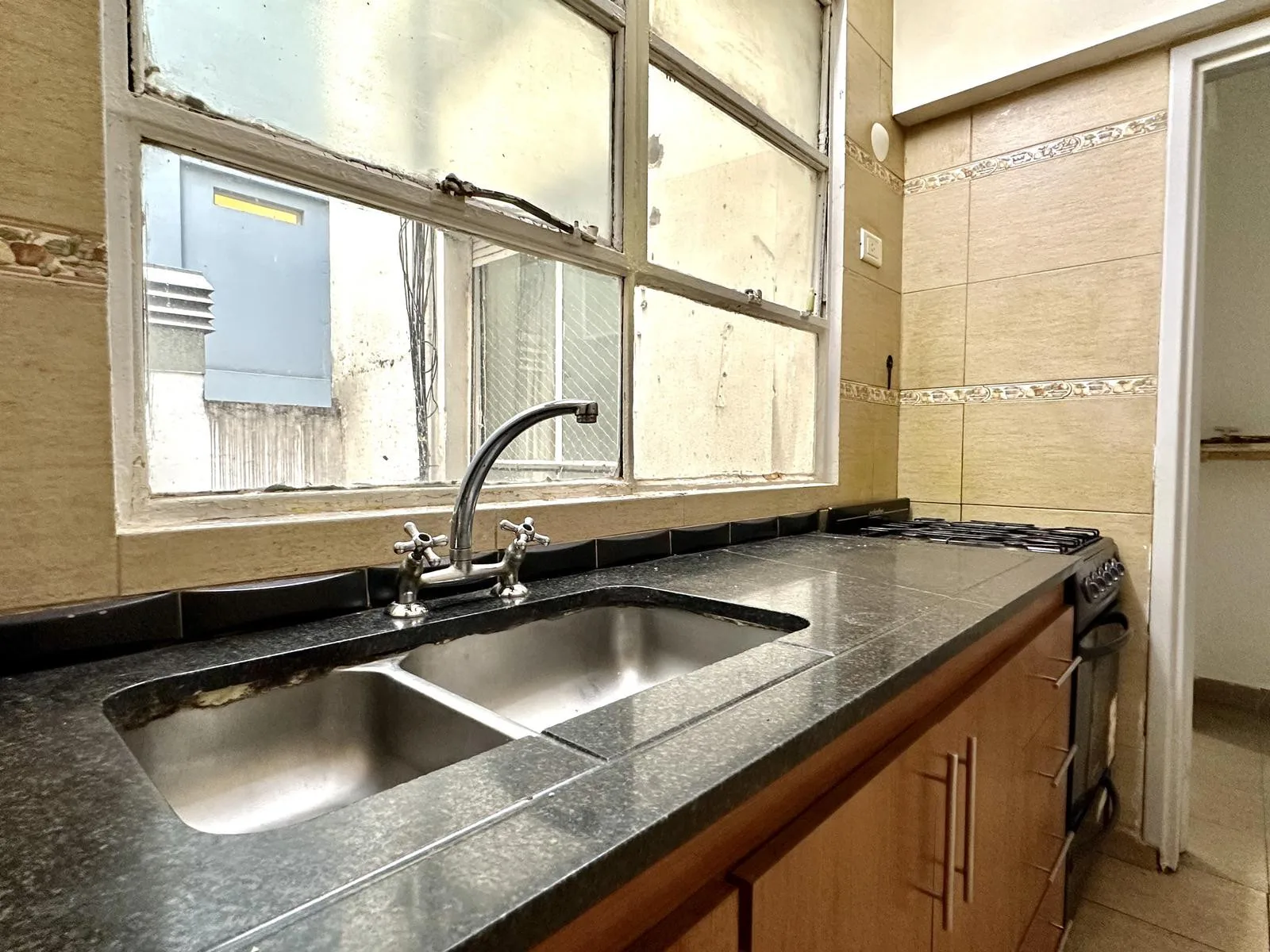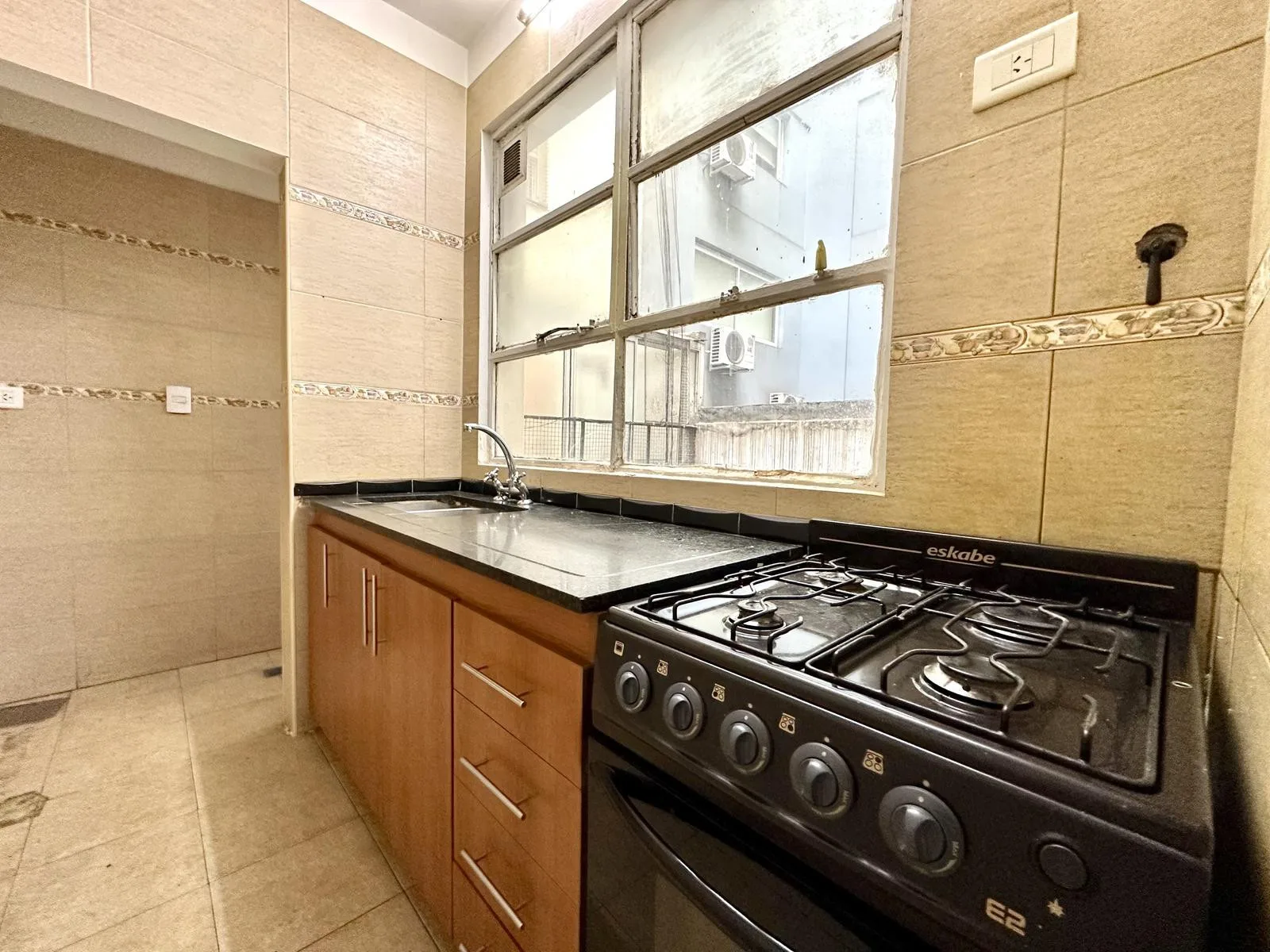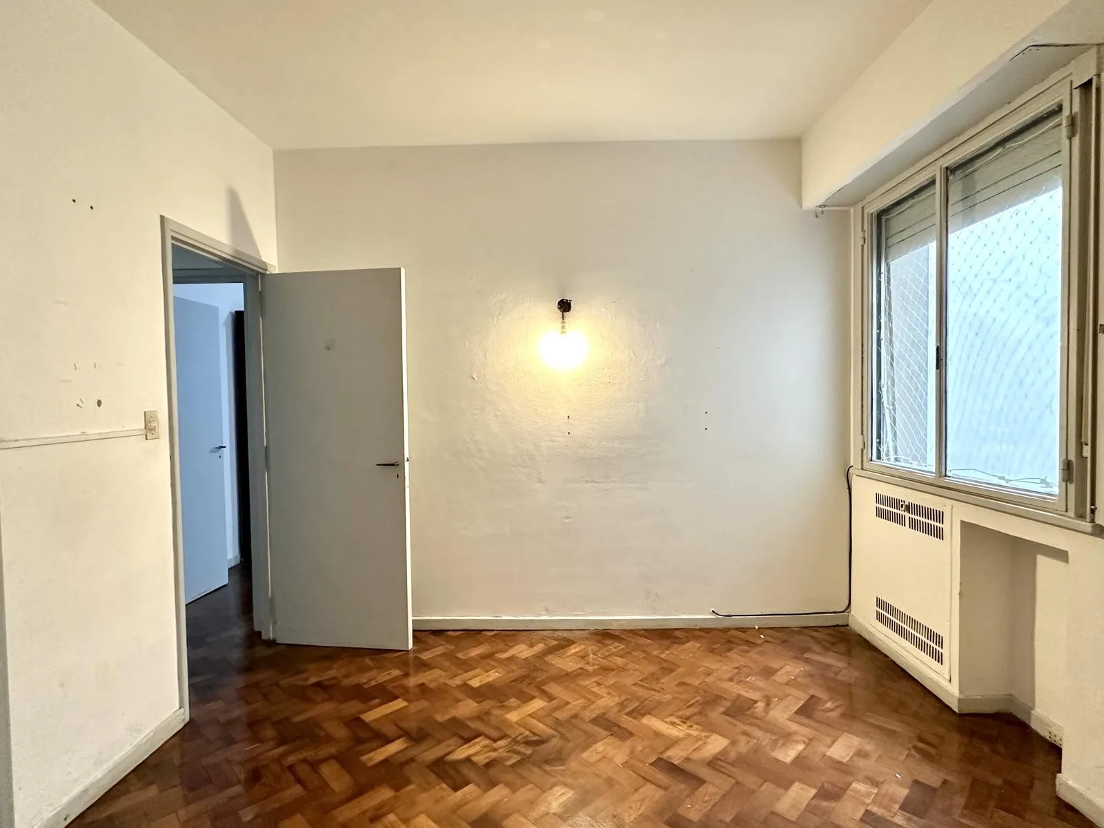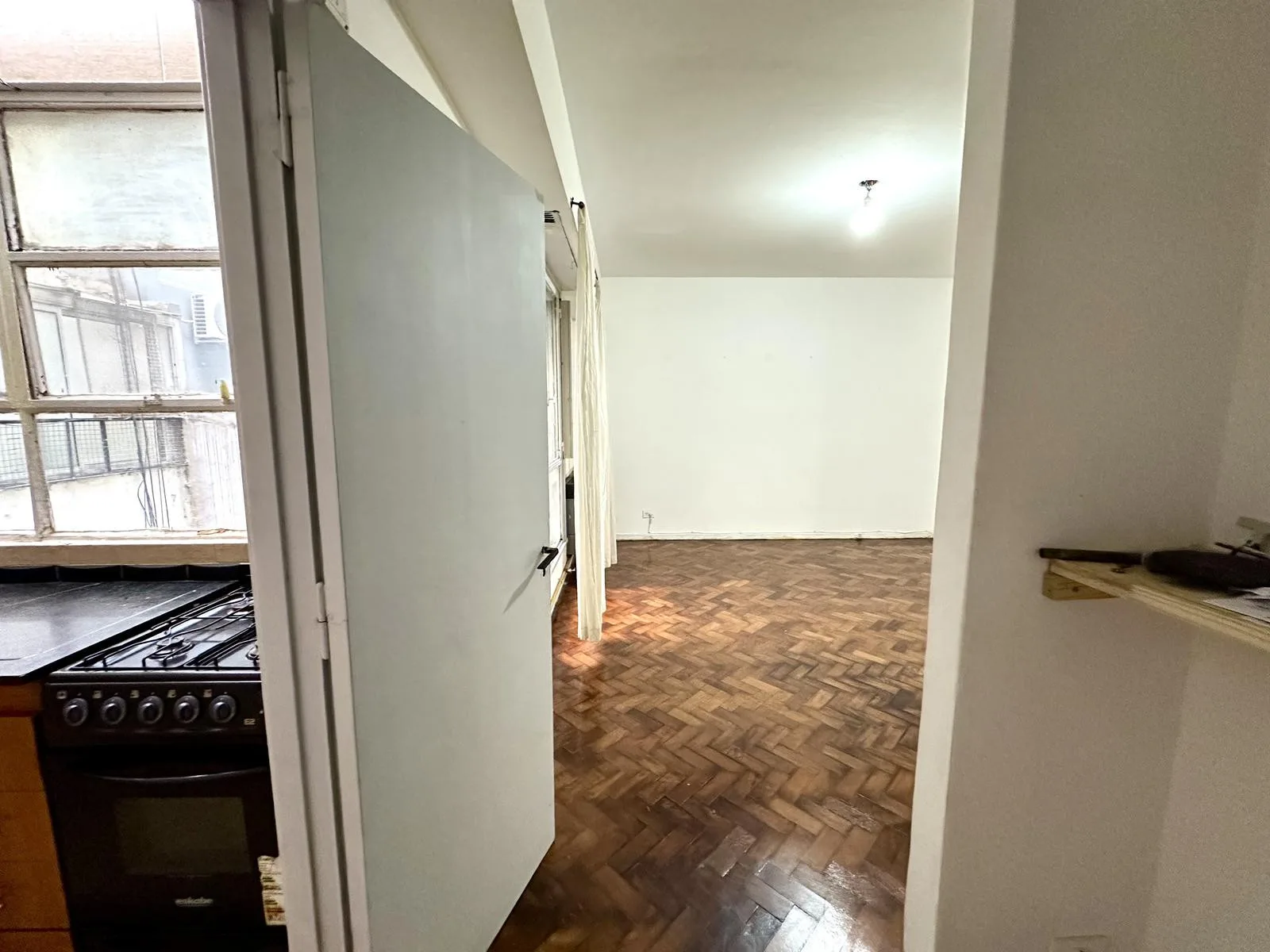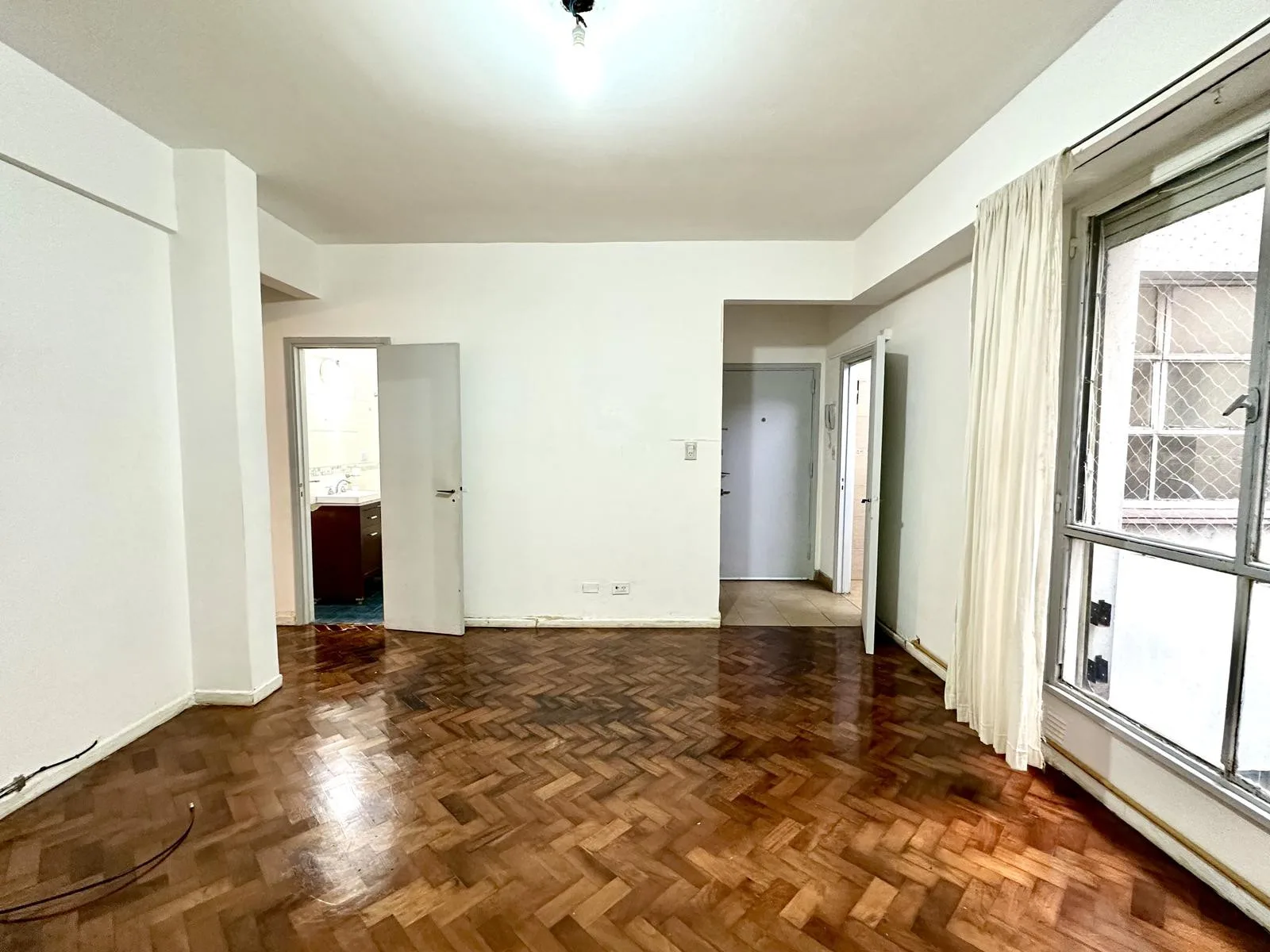 Apartamento de 3 ambientes em Barracas, com hall de entrada, sala de jantar e estar e cozinha independente com área de lavanderia. Possui 1 banheiro completo e 2 dormitórios com armários. Contrato de 2 anos, com reajuste a cada 4 meses pelo IPC. Disponível para locação imediata. Exige comprovação de renda e garantia por propriedade ou seguro-fiança (caución).