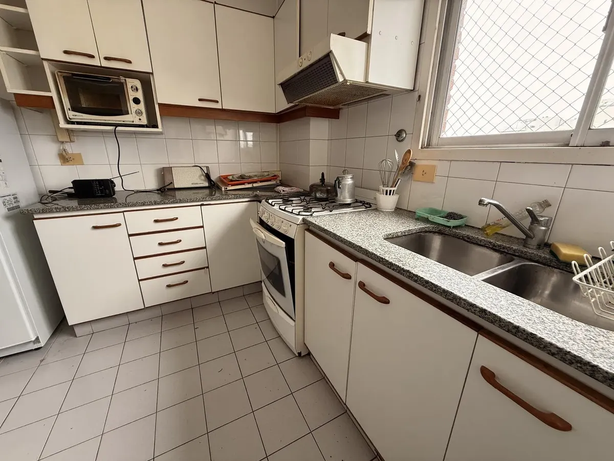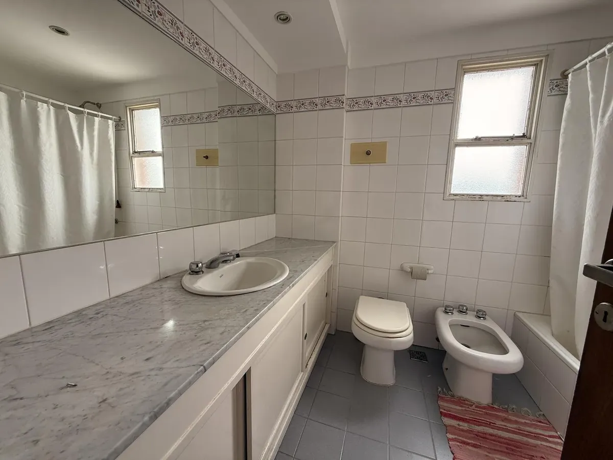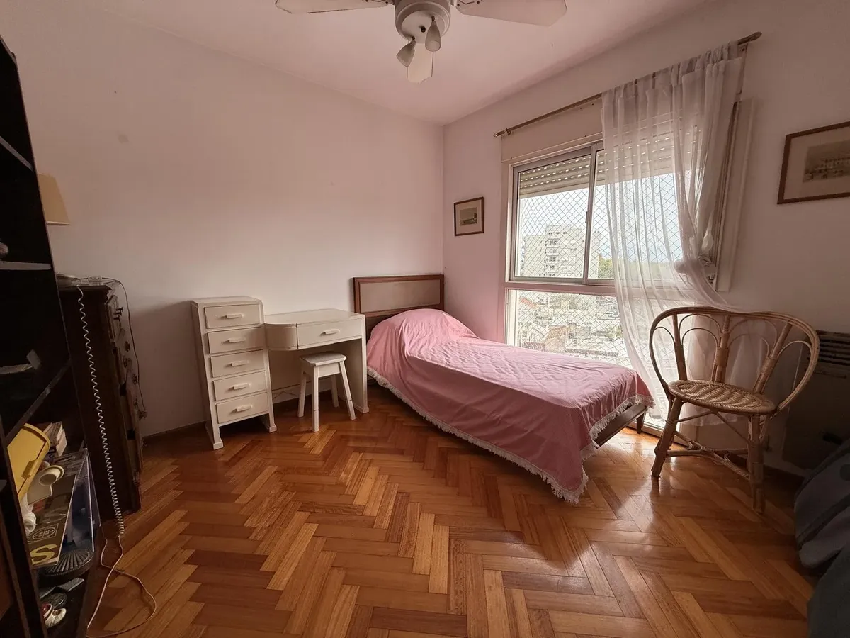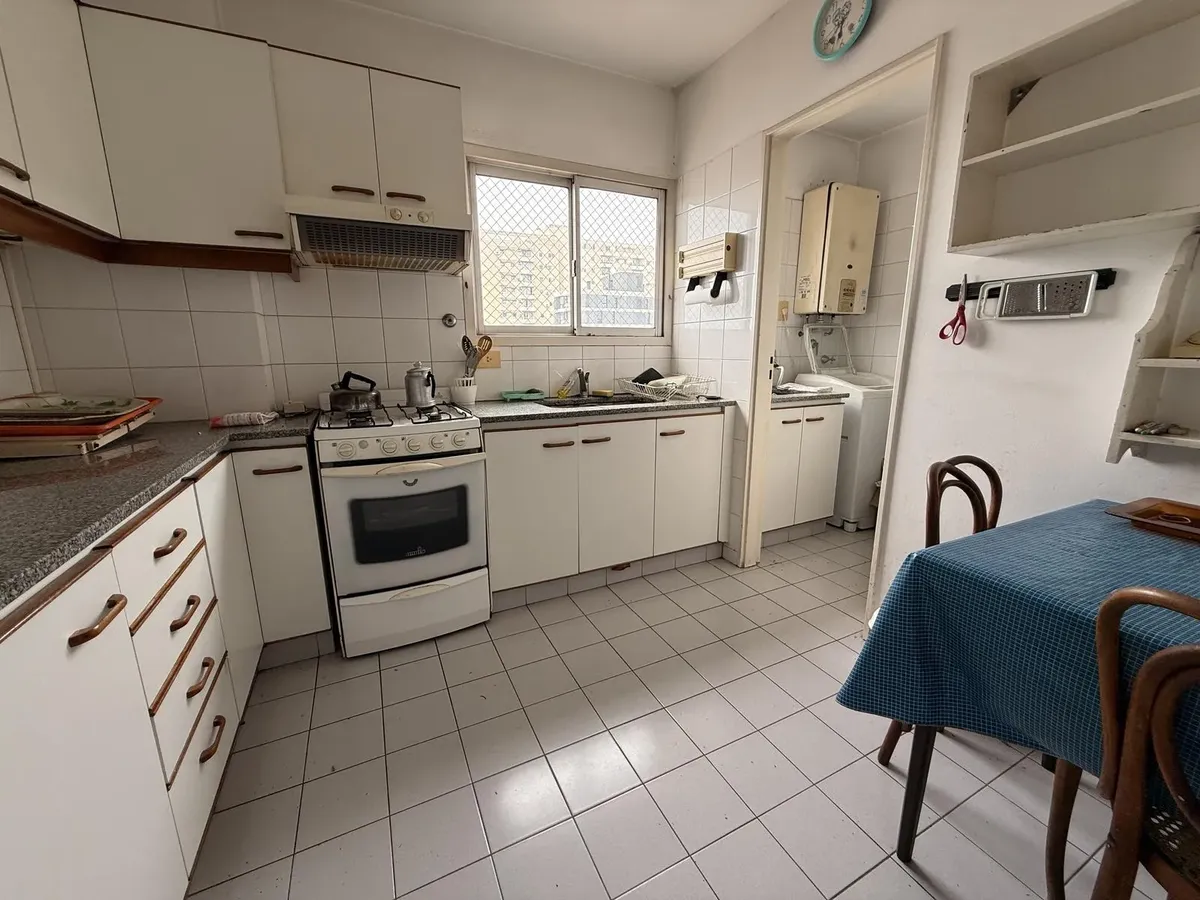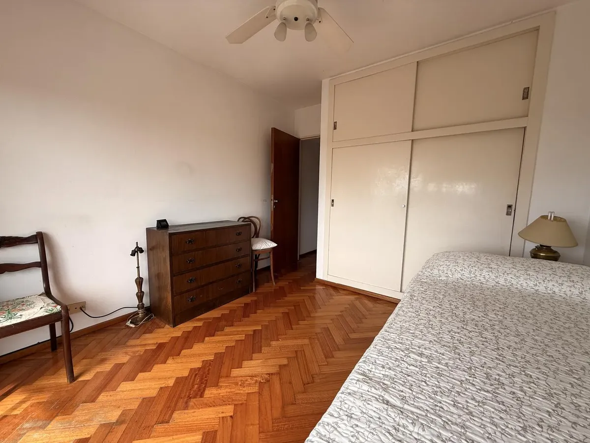 Apartamento com 2 dormitórios em Beccar, sobre Av. Centenario. Possui amplo living com sala de jantar, pisos de parquet e saída para varanda corrida voltada para o leste, com vista para área arborizada. Cozinha ampla com armários superiores e inferiores, além de sala de jantar diária e lavadero incorporado. Há 2 dormitórios com bons armários e ventiladores de teto; ambos compartilham 1 banheiro completo com ventilação natural e existe um toilette de visitas. Inclui vaga de garagem coberta no 1º