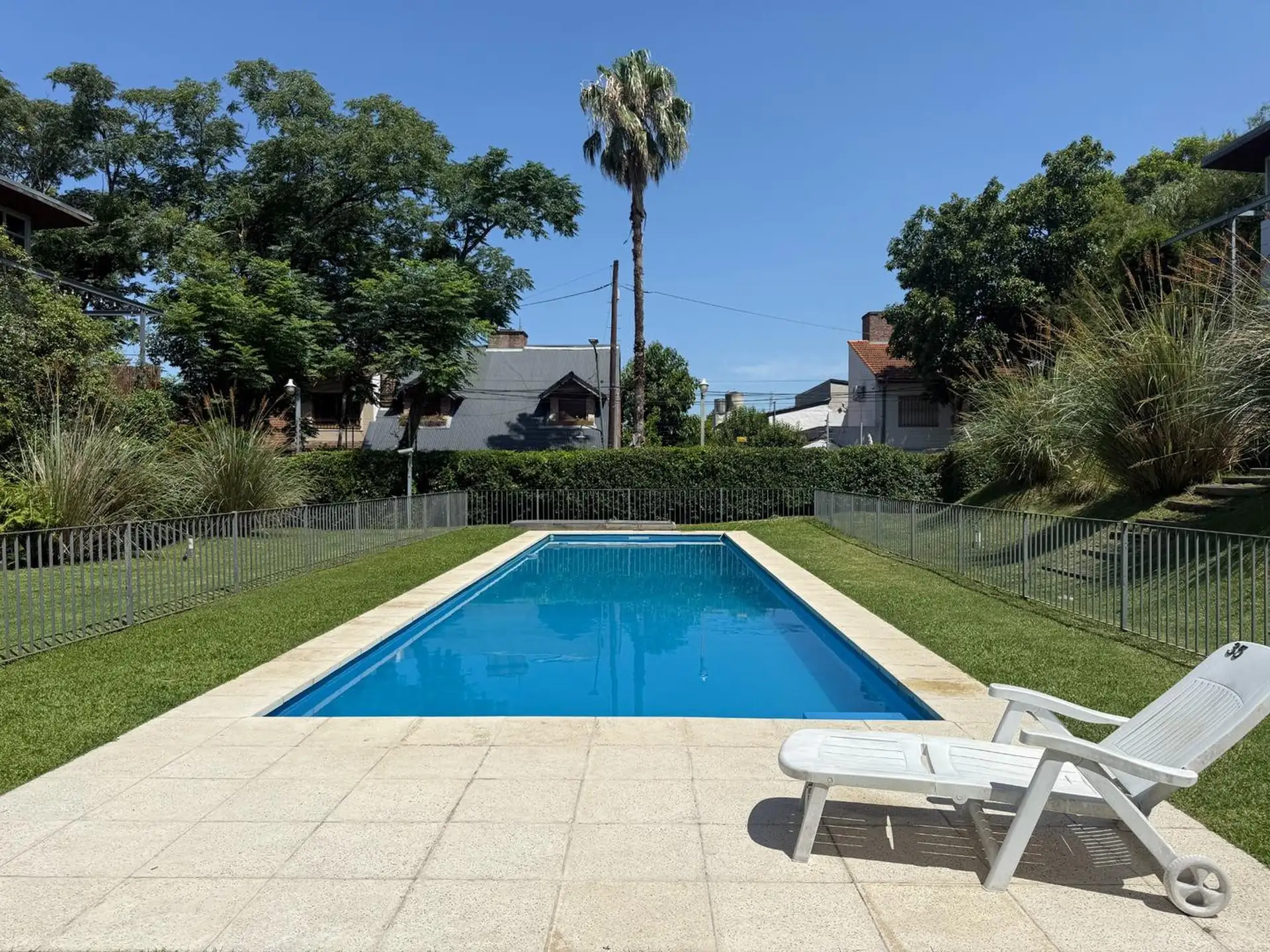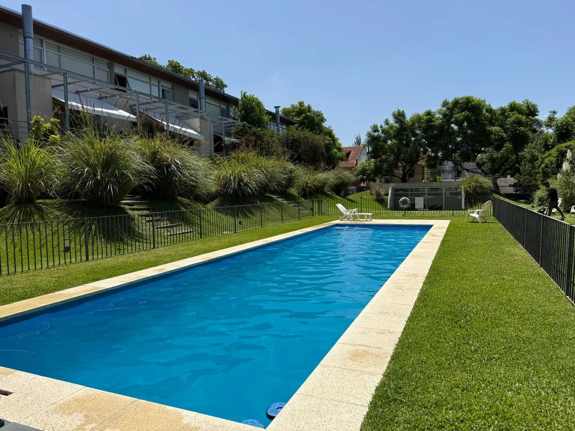 Apartamento para aluguel em Altos de la Merced, Beccar (San Isidro), sem mobília. São 3 ambientes com 120 m² e 2 dormitórios, além de vaga de garagem. O prédio tem piscina, jardim, salão de festas e segurança. Aluguel de US$ 1.600, com condomínio de $ 550.000.