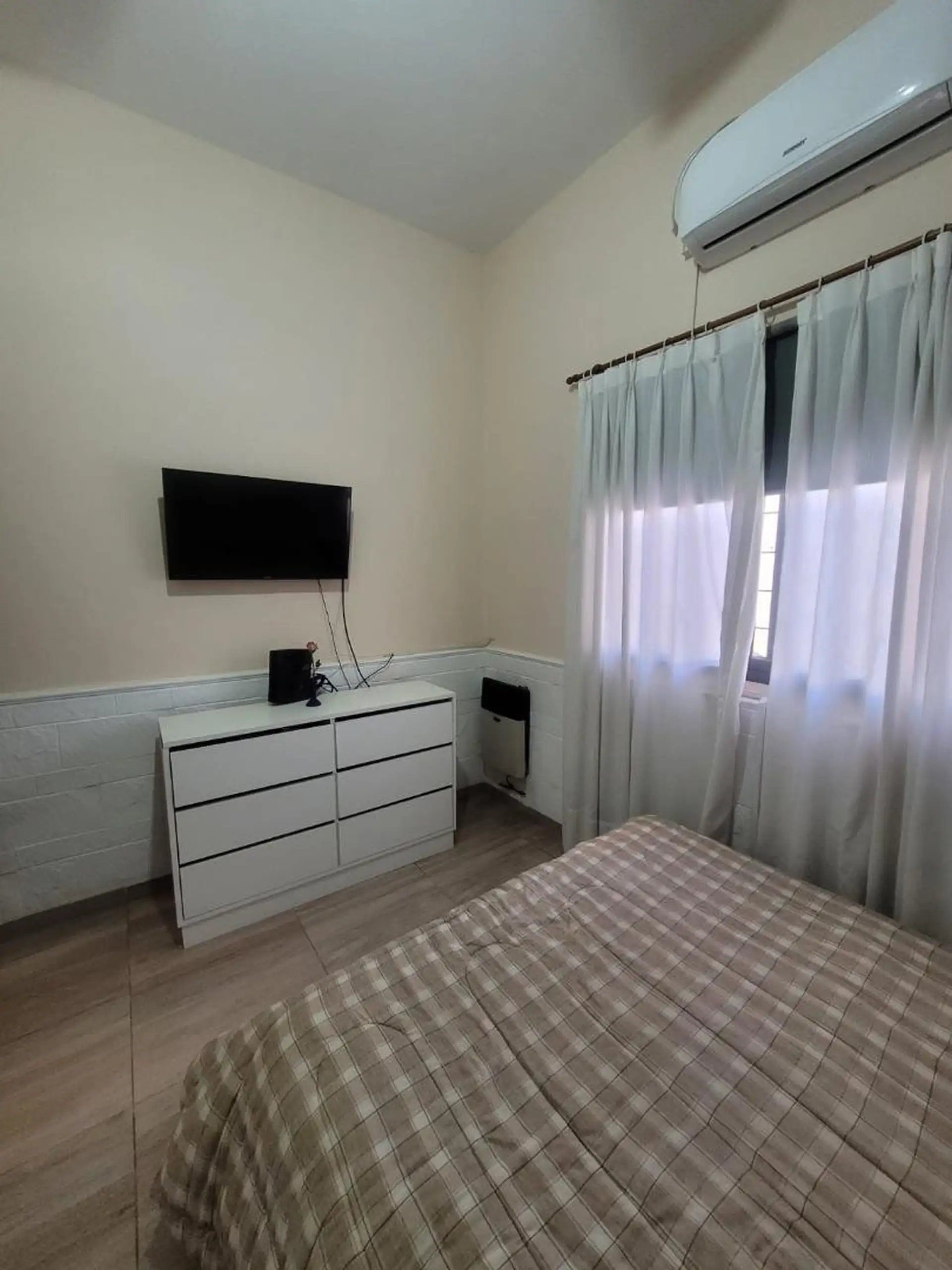PH de 3 ambientes em Beccar, com 2 dormitórios com armários (3,5x3,5 e 3x3) e cozinha (3,5x3,5). Possui living-comedor (7x4,5), banheiro completo, pátio (3,5x6) e ar-condicionado na cozinha, além de 2 ventiladores. Unidade reformada há 10 anos; ABL: ARS 40.000, AYSA incluído no aluguel; depósito de 1 mês e meio; aceita apenas seguro de caução.