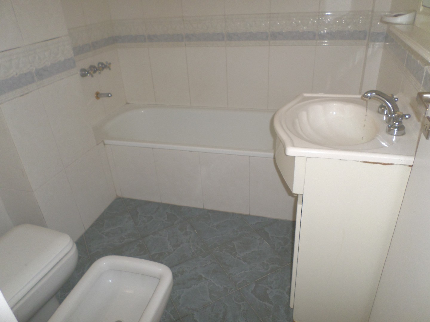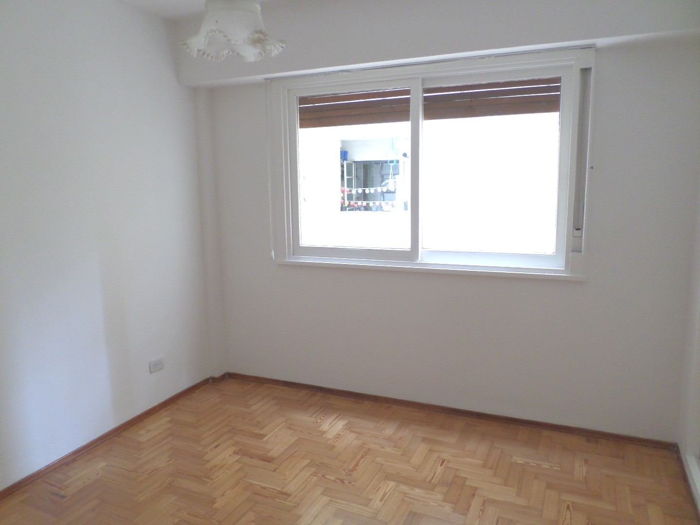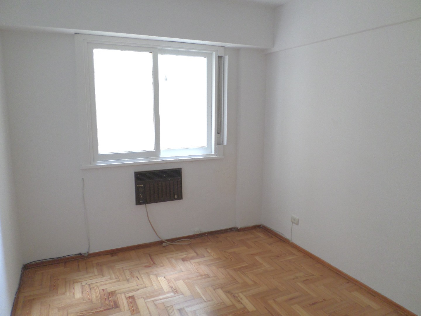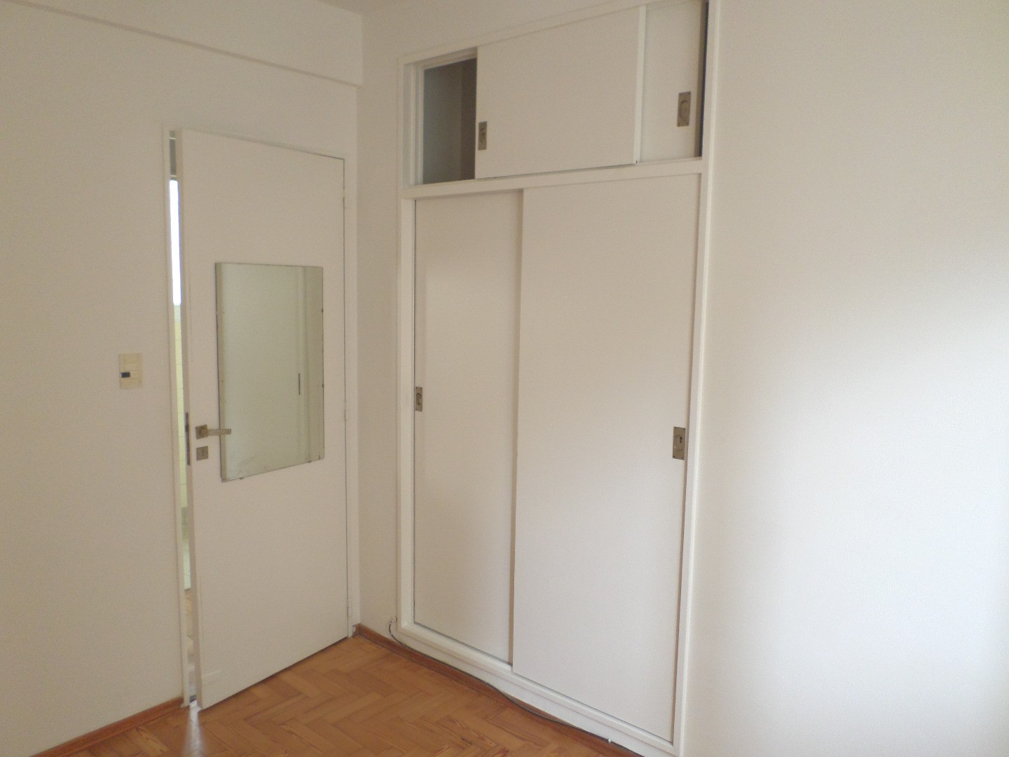 Apartamento de 3 ambientes de fundos, com cozinha completa com móveis sob e sobre a bancada e área de serviço. Há calefón e serviços individuais. O condomínio é de $177229, com AYSA incluído, e a taxa AGIP é de $21028. Contrato de 2 anos, com reajuste trimestral pelo IPC; não são aceitos animais de estimação.