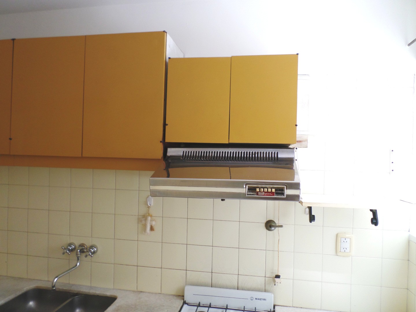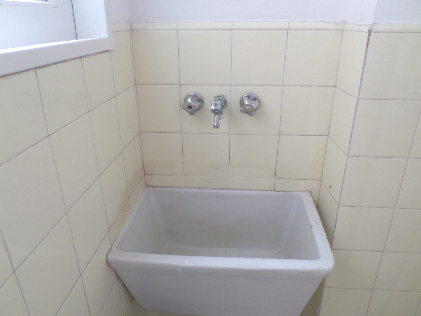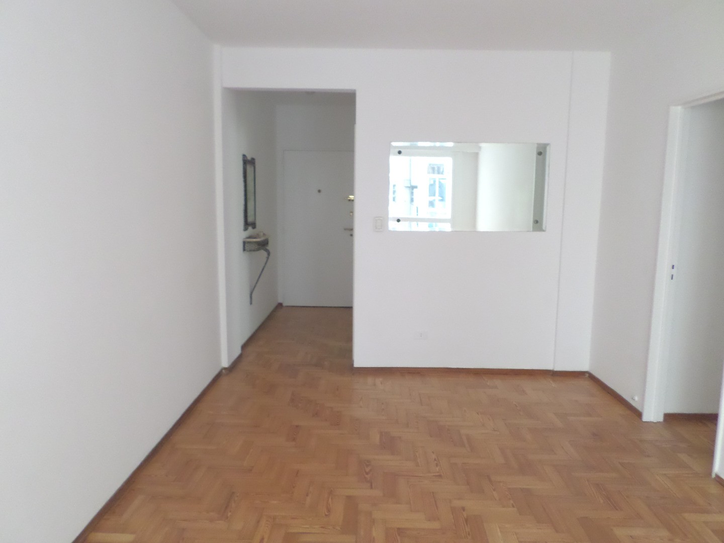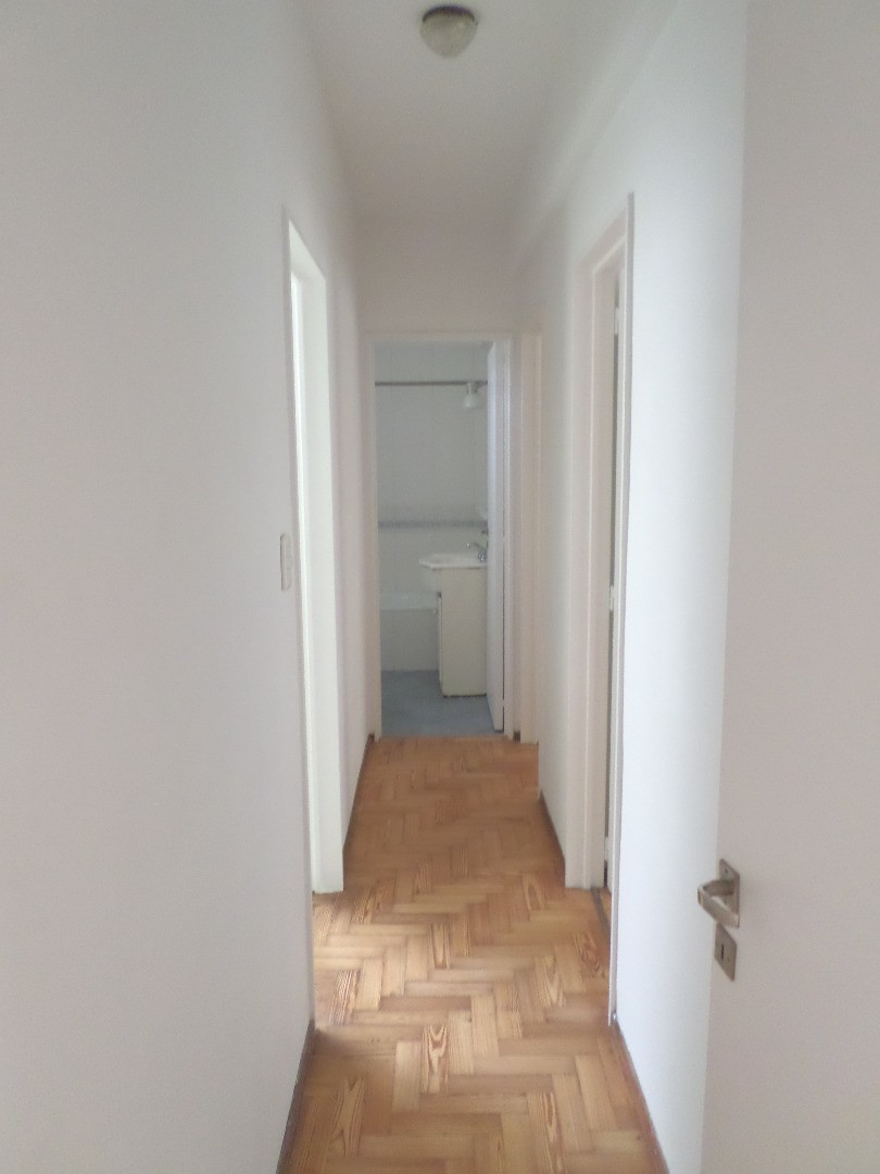 Apartamento de 3 ambientes de fundos, com cozinha completa com móveis sob e sobre a bancada e área de serviço. Há calefón e serviços individuais. O condomínio é de $177229, com AYSA incluído, e a taxa AGIP é de $21028. Contrato de 2 anos, com reajuste trimestral pelo IPC; não são aceitos animais de estimação.