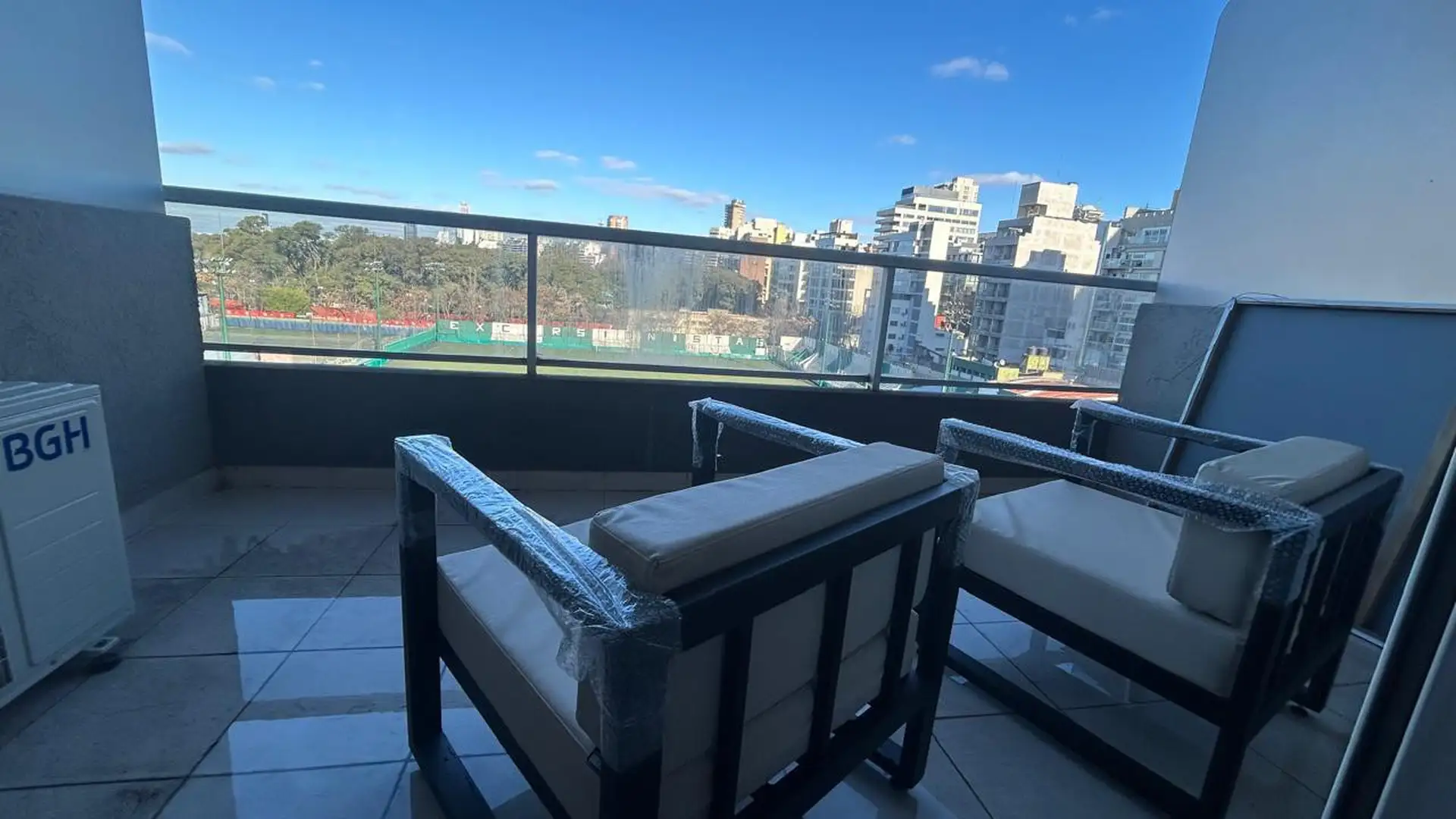 Apartamento para aluguel temporário em Belgrano, Buenos Aires, com 2 quartos. O imóvel fica a 3 km do Aeroporto Jorge Newbery e a 1,8 km do Estádio River Plate. Inclui varanda e conta com ar-condicionado e Wi-Fi gratuito, além de piscina ao ar livre e recepção disponível 24 horas. Locação com depósito de 1 mês, mínimo de 3 meses e disponibilidade a partir de março.