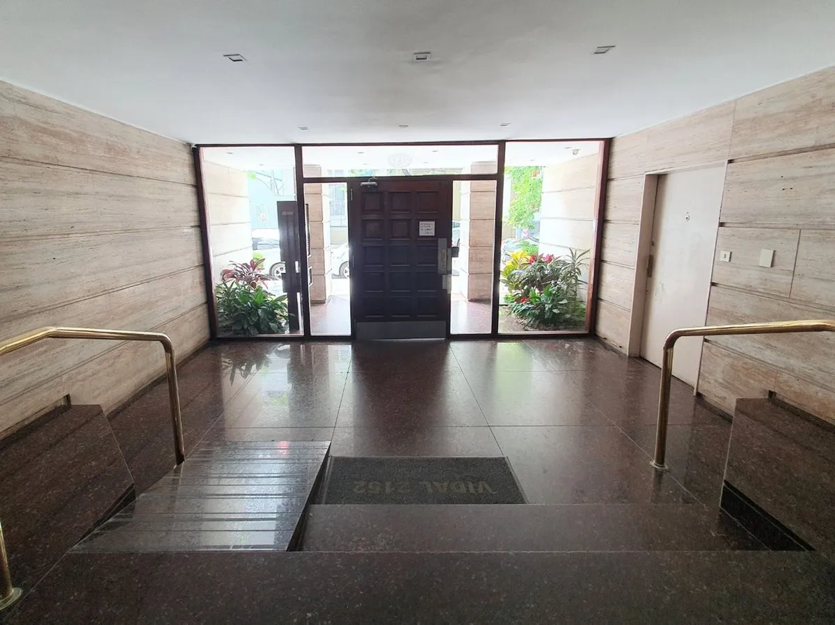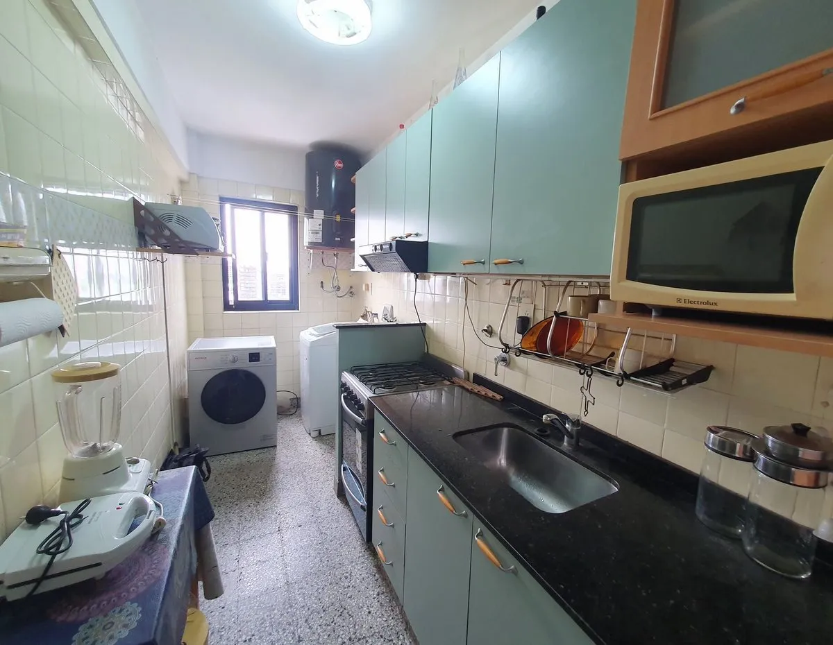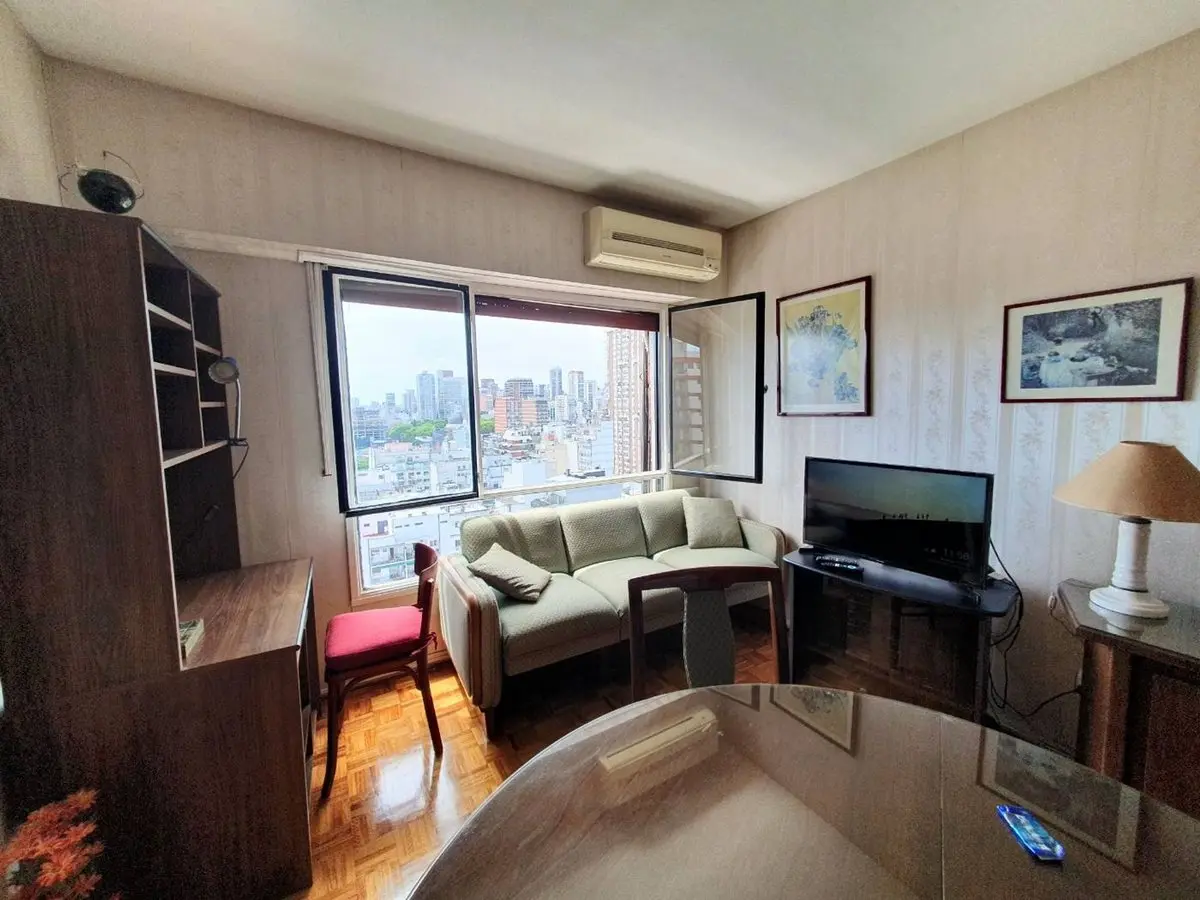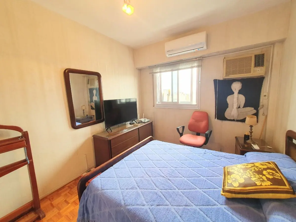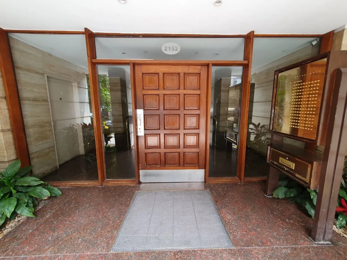 Apartamento mobiliado em Belgrano, 15º andar, com vista aberta para o nordeste e lateral para o norte. Possui sala de estar e jantar com ar-condicionado (frio e quente) e TV HD, 2 dormitórios com ar-condicionado (frio e quente), sendo o principal com cama de casal e o segundo com duas camas; ambos têm armários. Cozinha separada com área de serviço embutida, equipada com eletrodomésticos, máquina de lavar e secar, além de louça; banheiro completo. O prédio tem 2 elevadores e há possibilidade de a