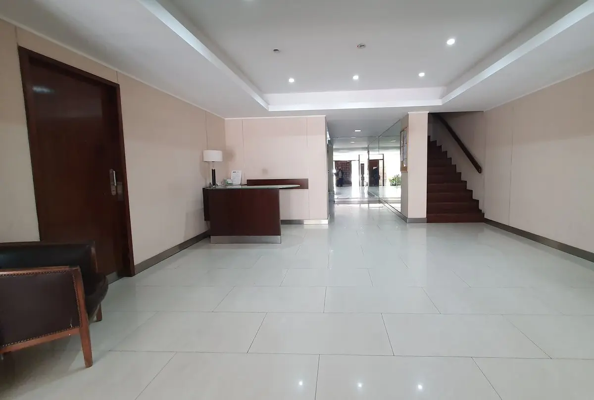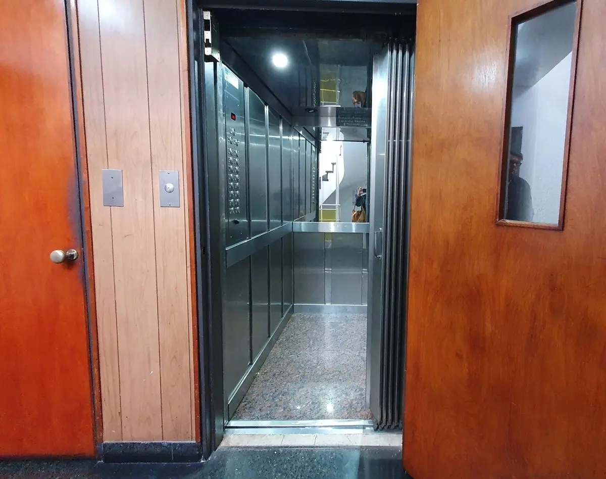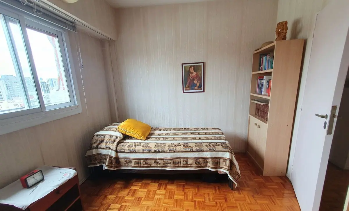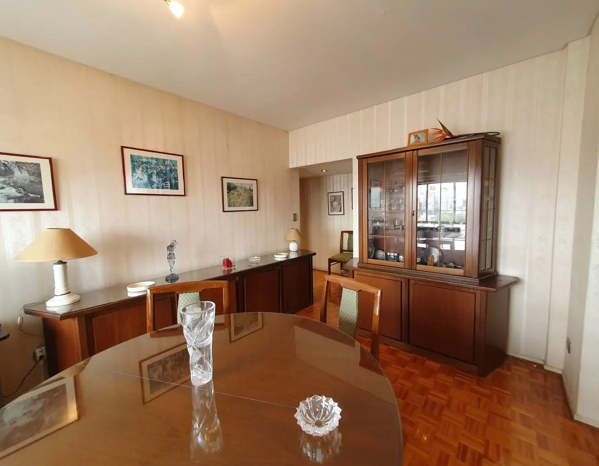 Apartamento mobiliado em Belgrano, 15º andar, com vista aberta para o nordeste e lateral para o norte. Possui sala de estar e jantar com ar-condicionado (frio e quente) e TV HD, 2 dormitórios com ar-condicionado (frio e quente), sendo o principal com cama de casal e o segundo com duas camas; ambos têm armários. Cozinha separada com área de serviço embutida, equipada com eletrodomésticos, máquina de lavar e secar, além de louça; banheiro completo. O prédio tem 2 elevadores e há possibilidade de a