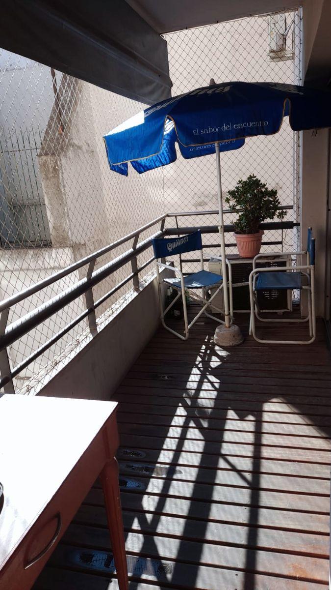 Apartamento de três ambientes com sala de estar e jantar, 2 dormitórios, 1 banheiro completo e 1 lavabo. Varanda tipo terraço de frente para os fundos. Próximo ao Subte “A”.