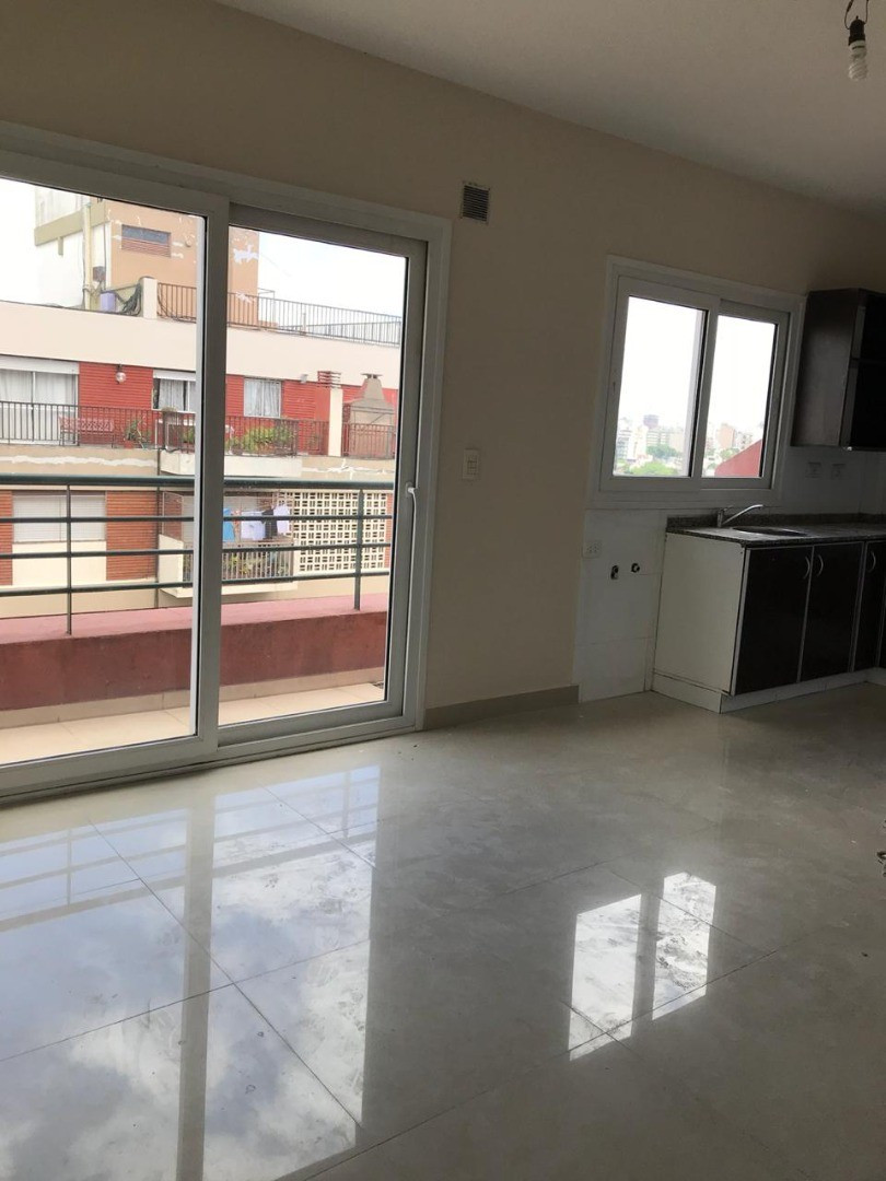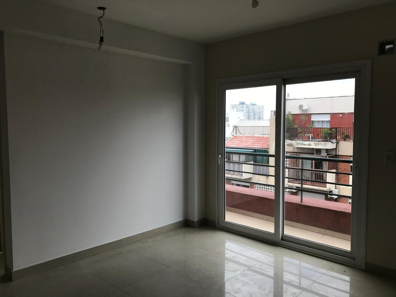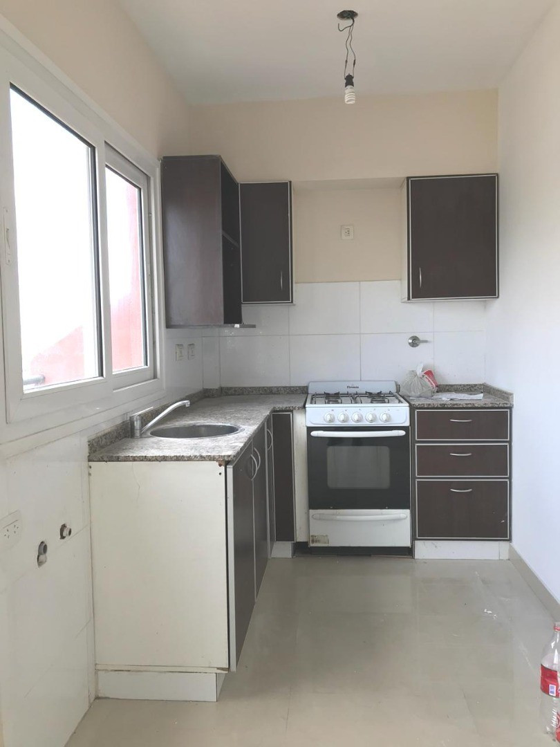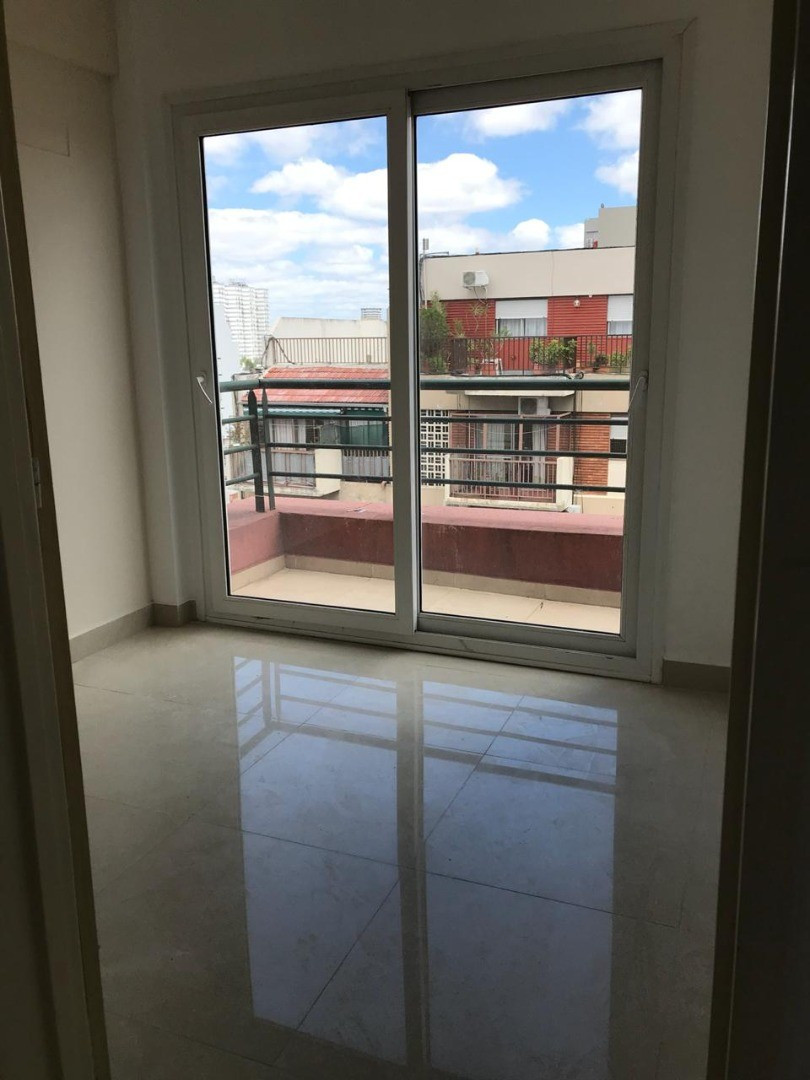 Apartamento de 3 ambientes com 2 quartos com armários, banheiro completo e varanda de frente para a rua. A cozinha fica integrada à área de refeições e conta com móveis planejados. O aluguel é por 2 anos, com reajuste trimestral pelo IPC. É necessário apresentar comprovante de renda que atenda a exigência de triplicar o valor do imóvel e garantia própria de CABA; o depósito é de 1 mês e meio em pesos. Pagamento de ABL incluso.