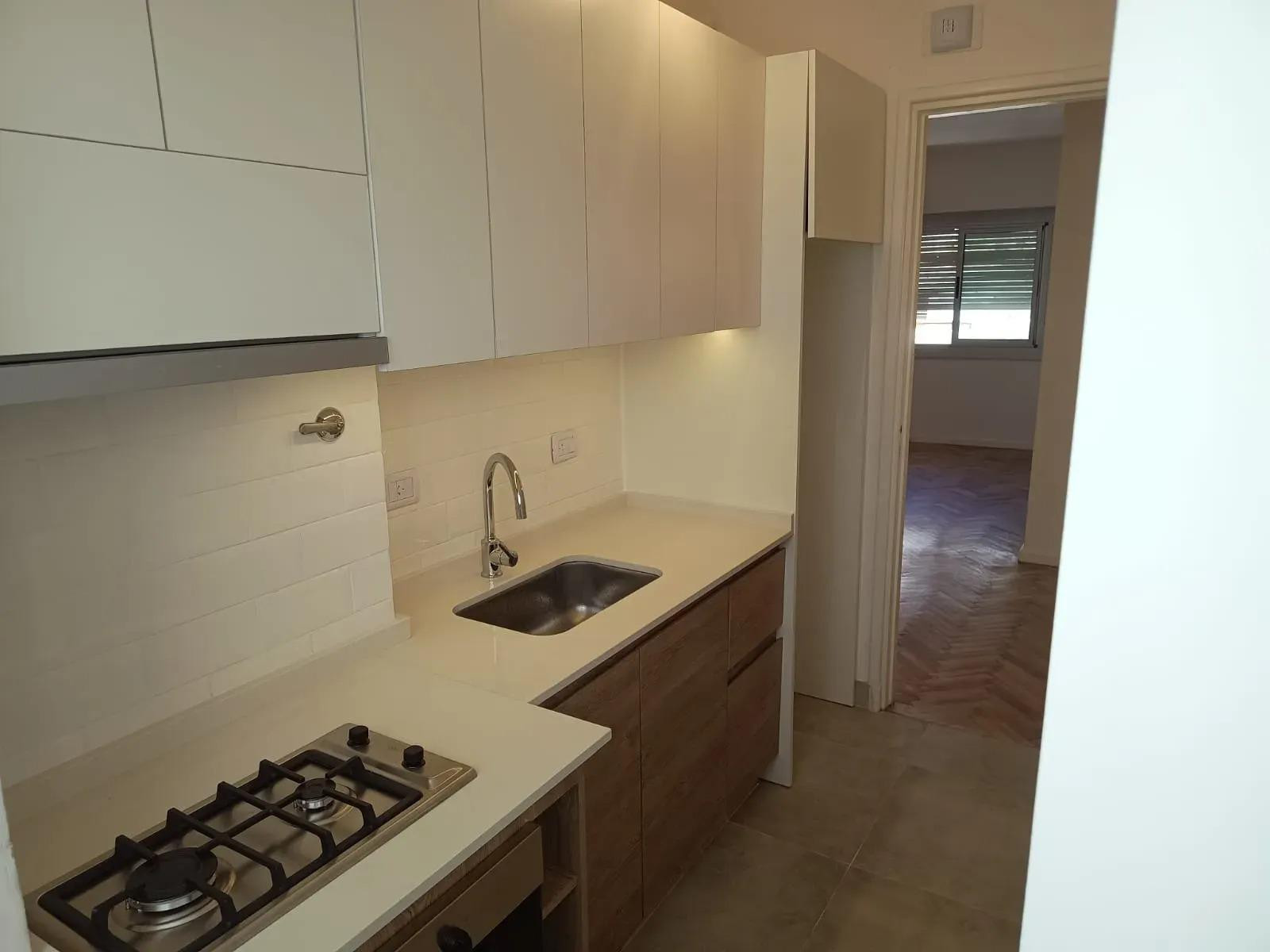 Apartamento de 2 dormitórios para alugar em Caballito, em rua Doctor Nicolás Repetto entre Yerbal e Av. Rivadavia. Fica no 3º andar, com orientação ao norte e disposição para os fundos. Tem cerca de 60 m² totais, cozinha equipada com armários superiores e inferiores, sala de estar e jantar, 2 dormitórios com armários embutidos e 1 banheiro completo.