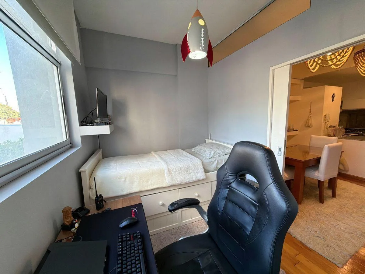 Apartamento mobiliado em bom estado, pronto para ocupação. O edifício tem vigilância e segurança e permite animais de estimação e crianças. O imóvel está em um local descrito como tranquilo.