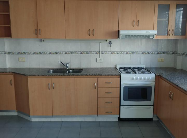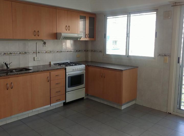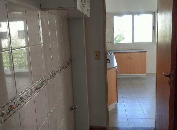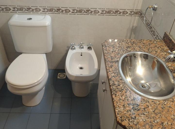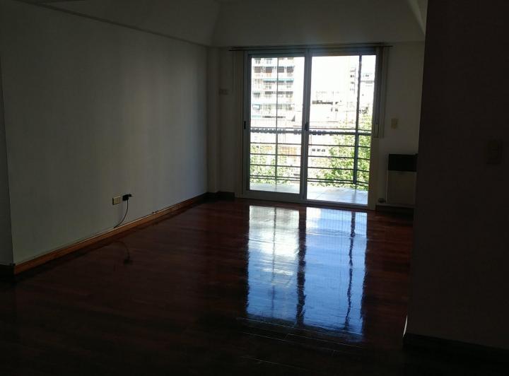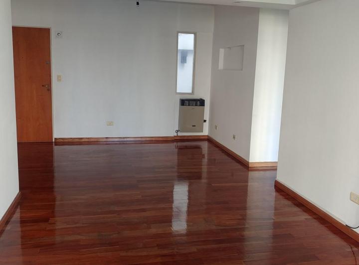 Apartamento de 3 ambientes de frente para a rua, recentemente pintado. Possui cozinha integrada à área de refeições com móveis planejados em alto e baixo, saída para varanda corrida, lavadero independente, living e sala de jantar com pisos de madeira recém-revestidos e escritório ou 3º quarto. Há 2 dormitórios, ambos com placard, sendo o dormitório principal em suíte, além de 1 banheiro completo com banheira. Inclui aquecimento por tiro balanceado. Fica a alguns metros da Av. Rivadavia, com aces