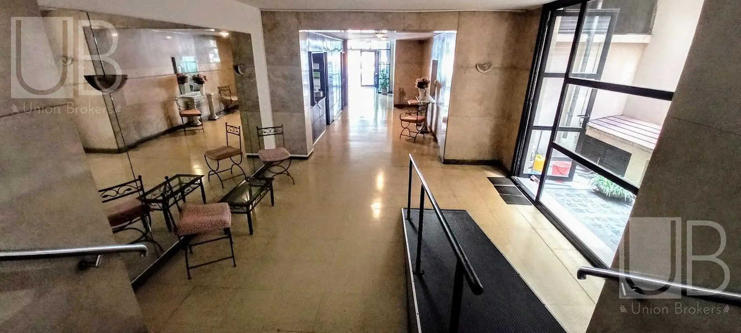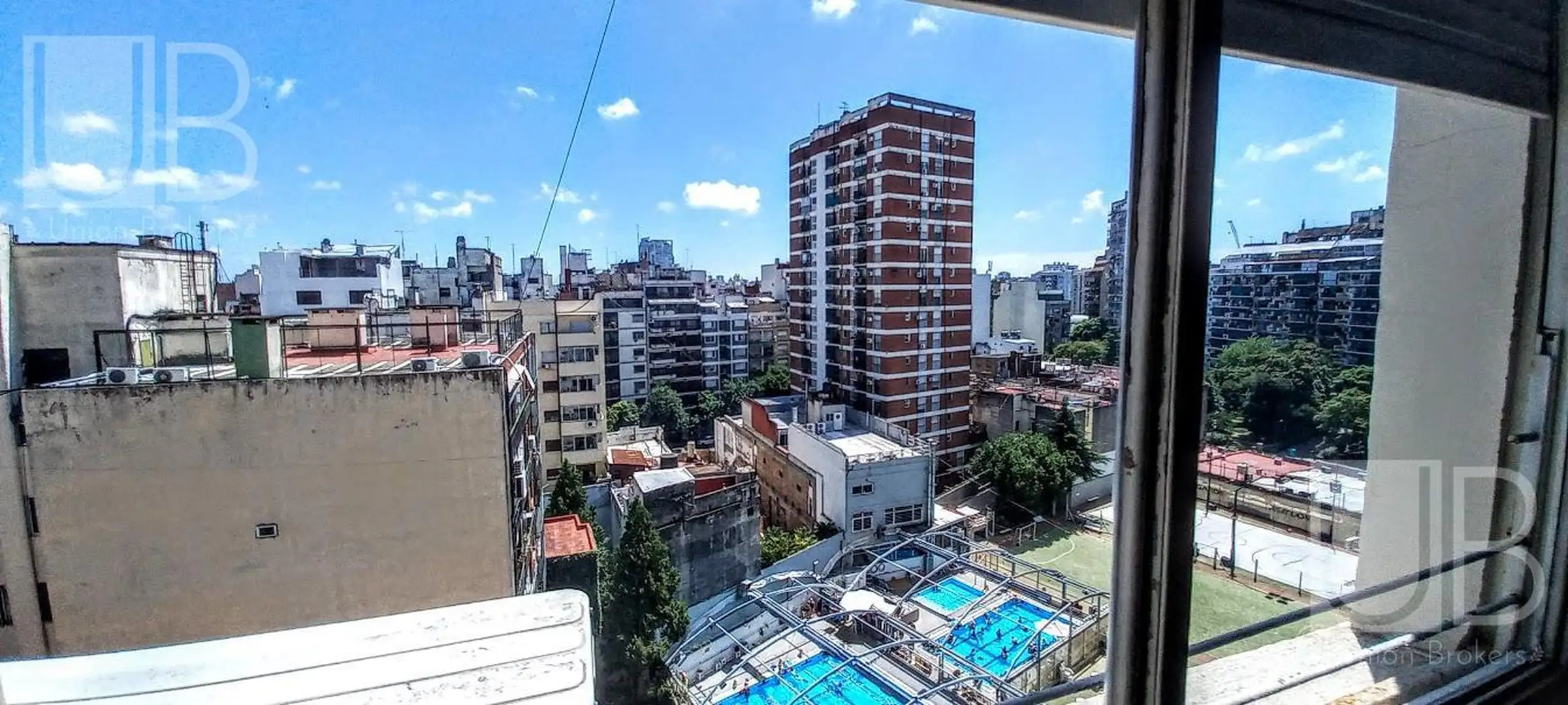 Apartamento de 3 ambientes com 2 quartos e escritório em Caballito, de frente para os fundos (contrafrente), em andar alto, silencioso. Cozinha ampla, lavanderia separada e 1 banheiro completo, 1 lavabo com chuveiro e 1 banheiro de serviço. Living com piso de parquet e ar-condicionado, 1 quarto com piso de parquet e placard, 2ª quarto com placard embutido e orientação nordeste, com aquecimento central e serviços centrais.