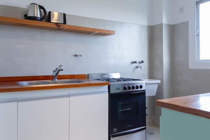 Apartamento em Colegiales, em rua residencial. São 3 ambientes, com 2 quartos grandes, 1 banheiro completo e sala de estar e jantar. Cozinha separada com espaço para refeições do dia a dia.