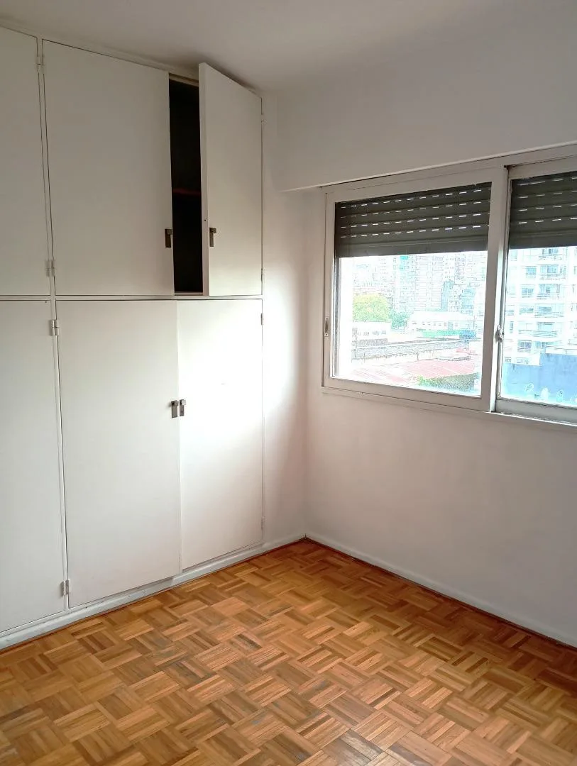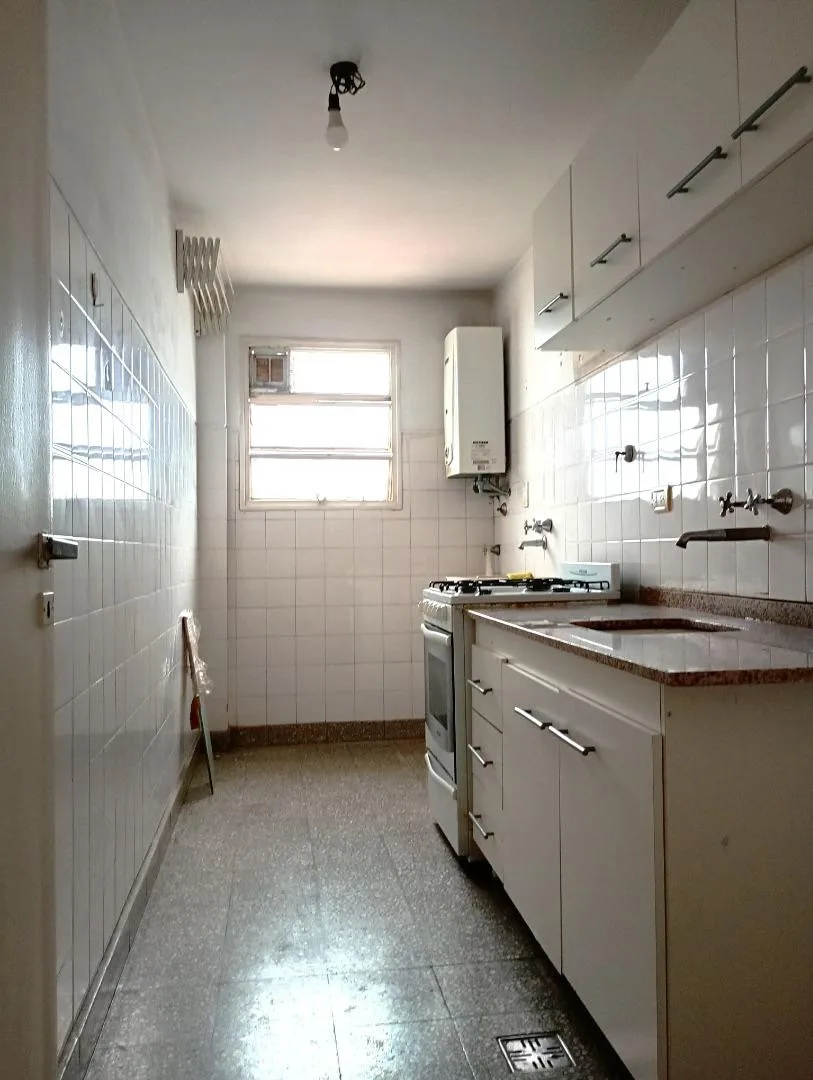 Apartamento de 3 ambientes de frente, com 2 quartos, em bom estado. Possui sala de estar e jantar com piso de parquet e ar-condicionado, hall de distribuição, dormitórios com armários e piso de parquet, banheiro completo e cozinha com área de serviço integrada. O prédio tem aquecimento central e encarregado permanente. Não é permitido ter animais de estimação. A garantia é feita com garantia proprietária de C.A.B.A ou seguro-fiança, mediante comprovação de renda e exigência de 1 mês de adiantame