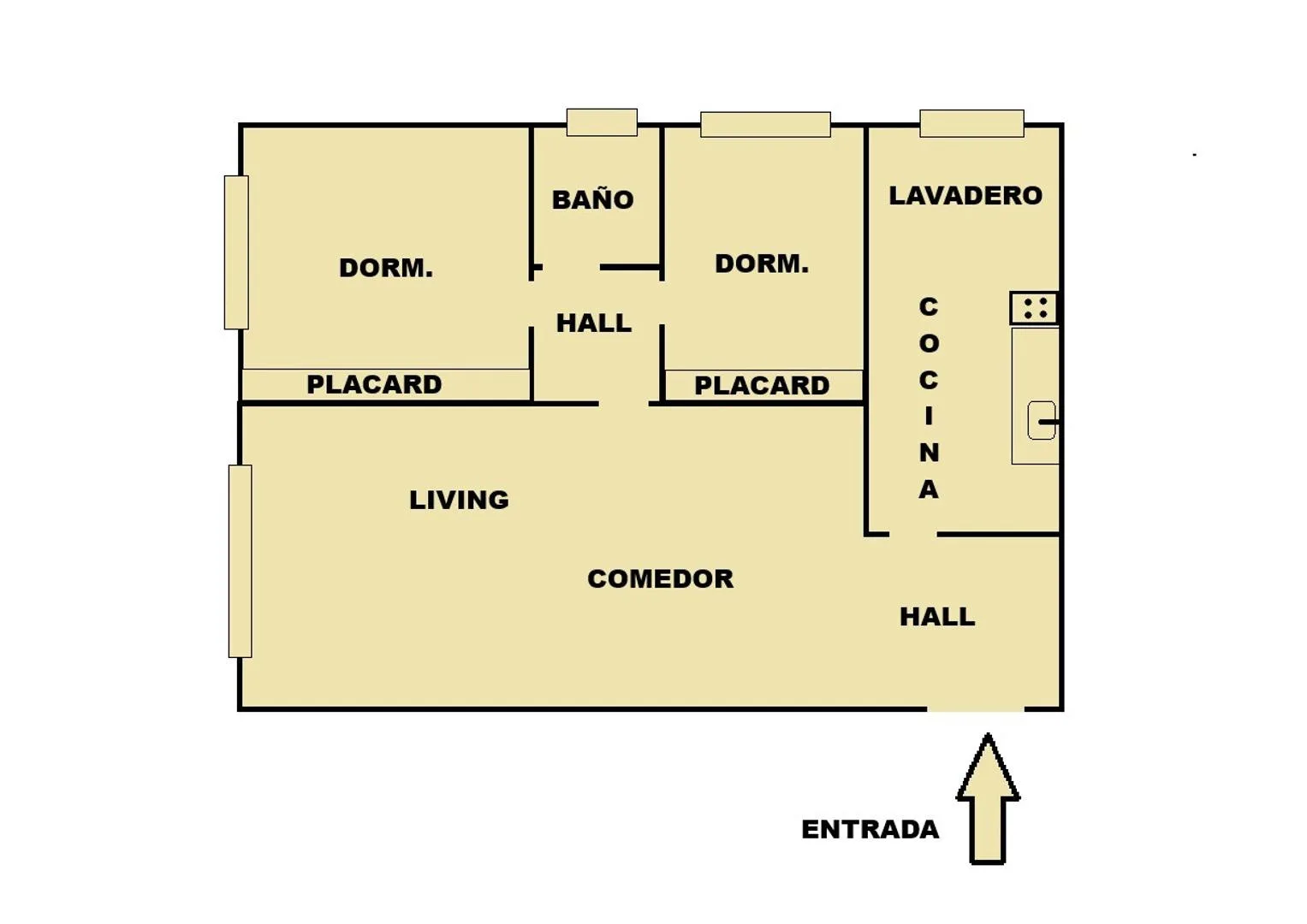 Apartamento de três ambientes de frente com 2 quartos em Colegiales