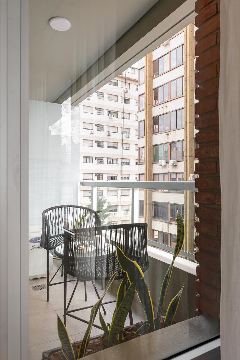Apartamento para aluguel temporário em San Telmo, com 2 dormitórios, terraço privativo e acesso à piscina do prédio. Conta com área de serviço (lavadero) e banheiro. Inclui cozinha completa e WiFi, com serviços de luz, água e ABL. Condomínio não incluído.