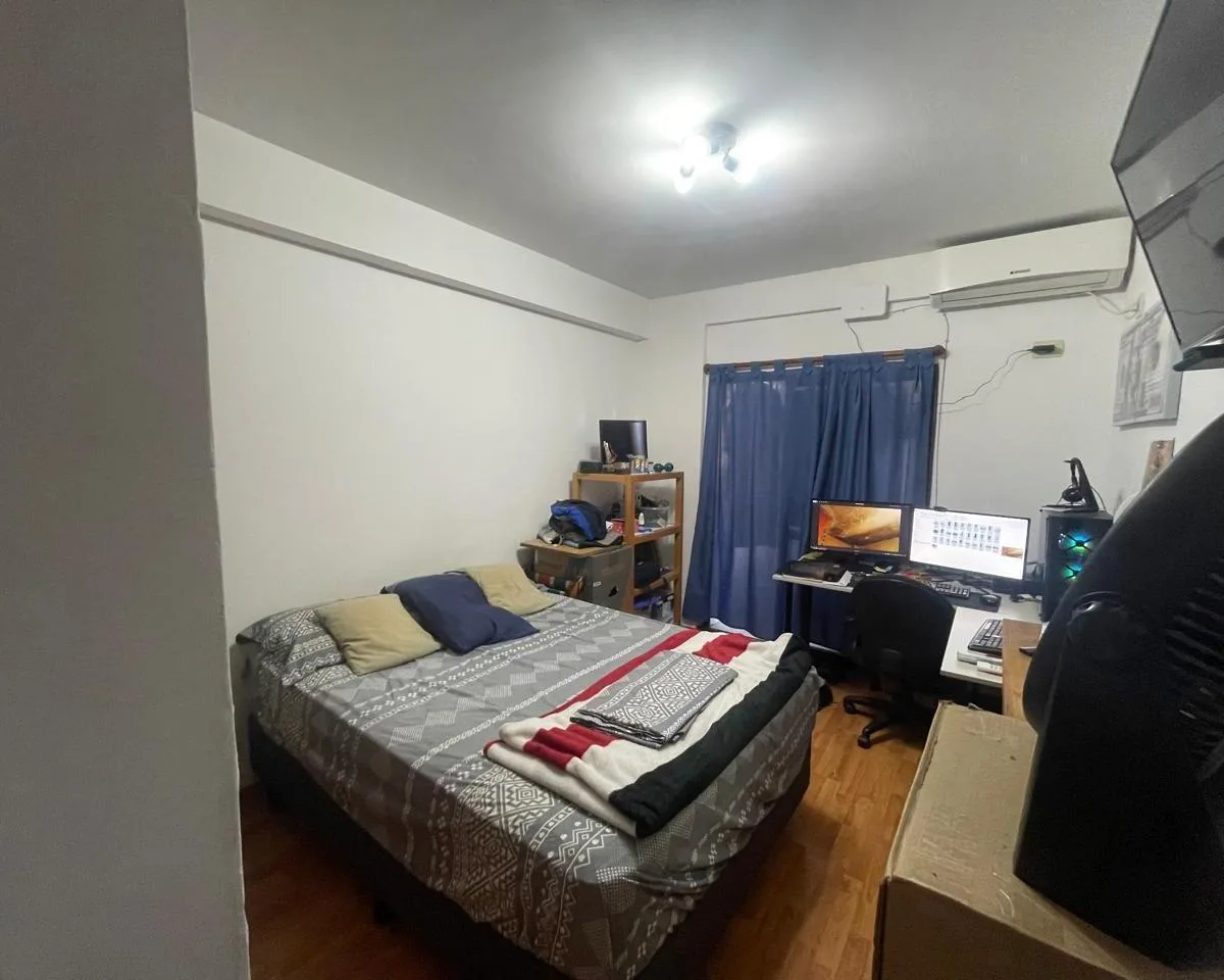 Apartamento de 3 ambientes com 2 dormitórios, em frente para a rua, com varanda com fechamento. Conta com living e comedor, cozinha independente e 1 banheiro completo. Inclui vaga de garagem fixa, coberta, no subsolo, com acesso por monta-cargas (no edifício em frente). O aluguel inclui a opção com garagem; sem garagem custa $900.000. As despesas de ABL, AYSA, luz, gás e o condomínio ordinário ficam a cargo do inquilino. Exige depósito de U$S 900, com reajuste trimestral pelo IPC e prazo de 24 m